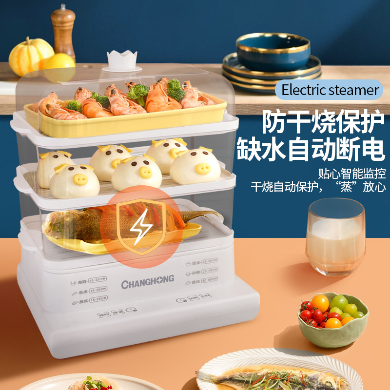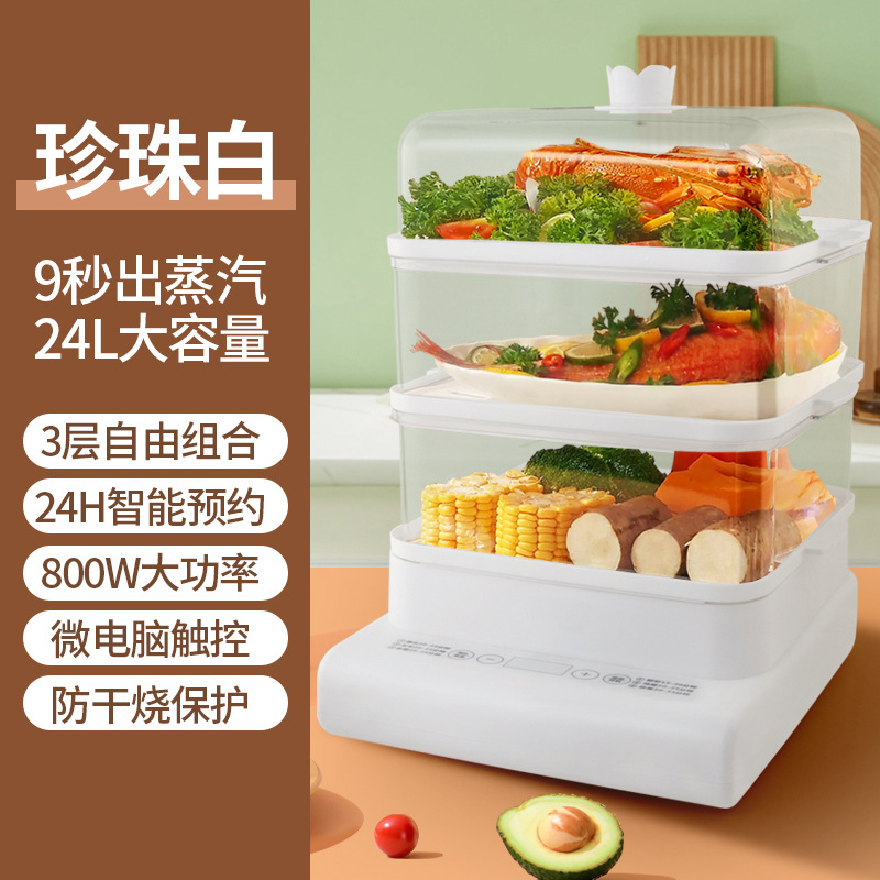 电蒸锅家用三层多功能预约定时自动断电蒸笼蒸煮锅大容量