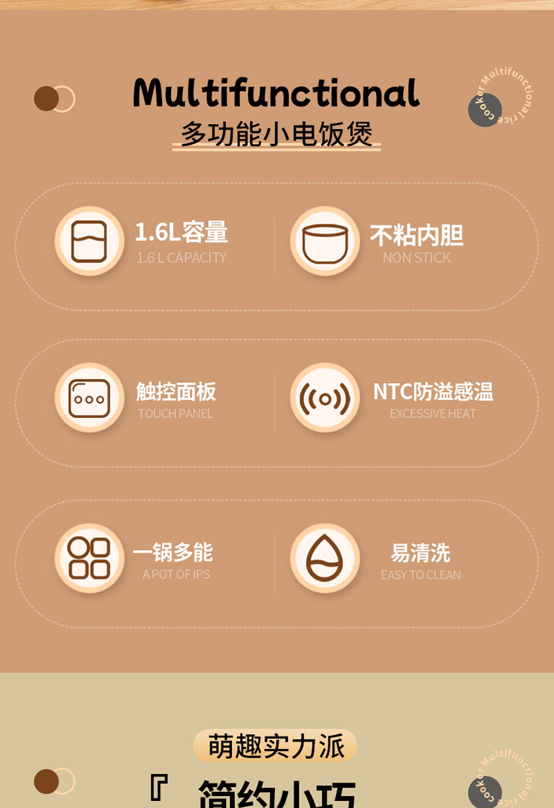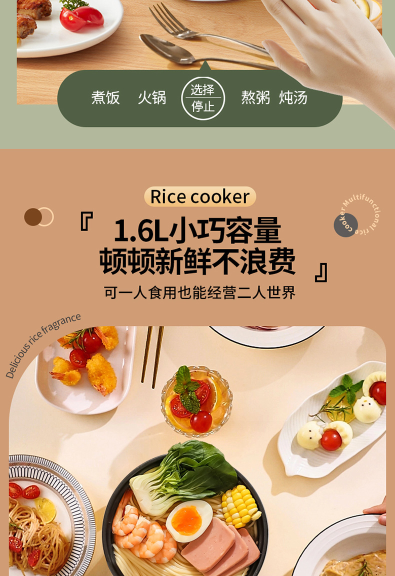 1.6L迷你电饭煲内胆玻璃透明盖宿舍家用电饭煲