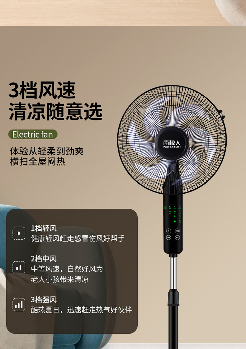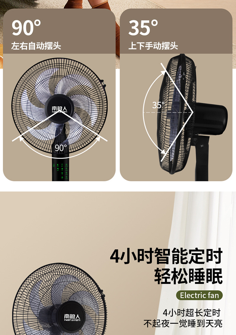 南极人夏季智能定时家用电风扇 静音办公室宿舍省电立式摇头落地