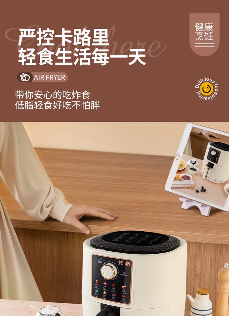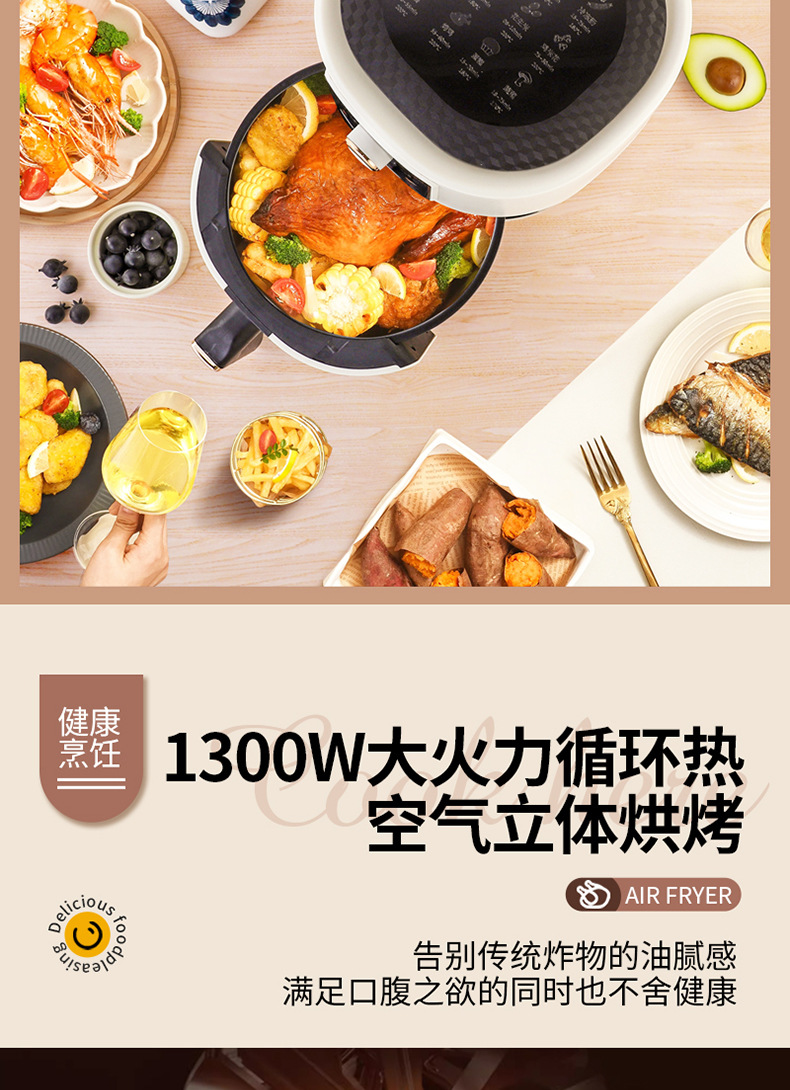 空气炸锅炸薯条机 全自动触屏6L 大容量空气炸锅礼品批发