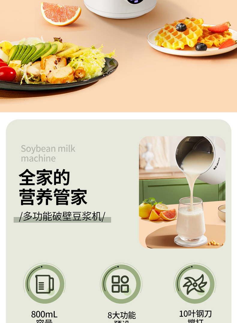家用豆浆机免过滤全自动智能加热现磨五谷豆浆机现货厂家直销批发