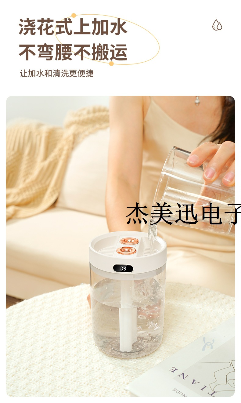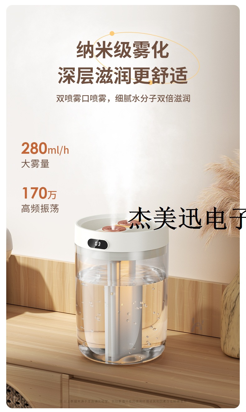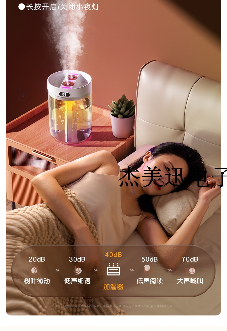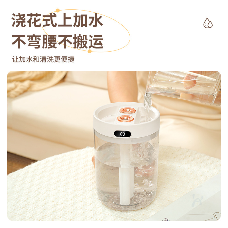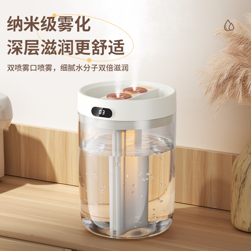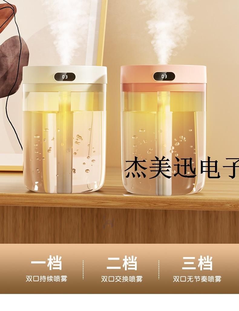 2024新款大容量双喷加湿器 usb家用卧室办公室静音炫彩数显加湿器