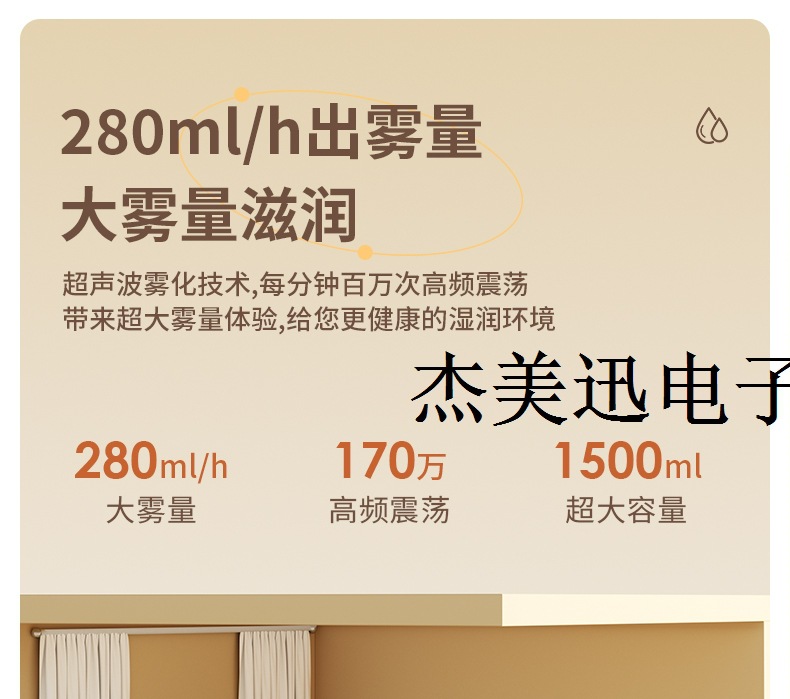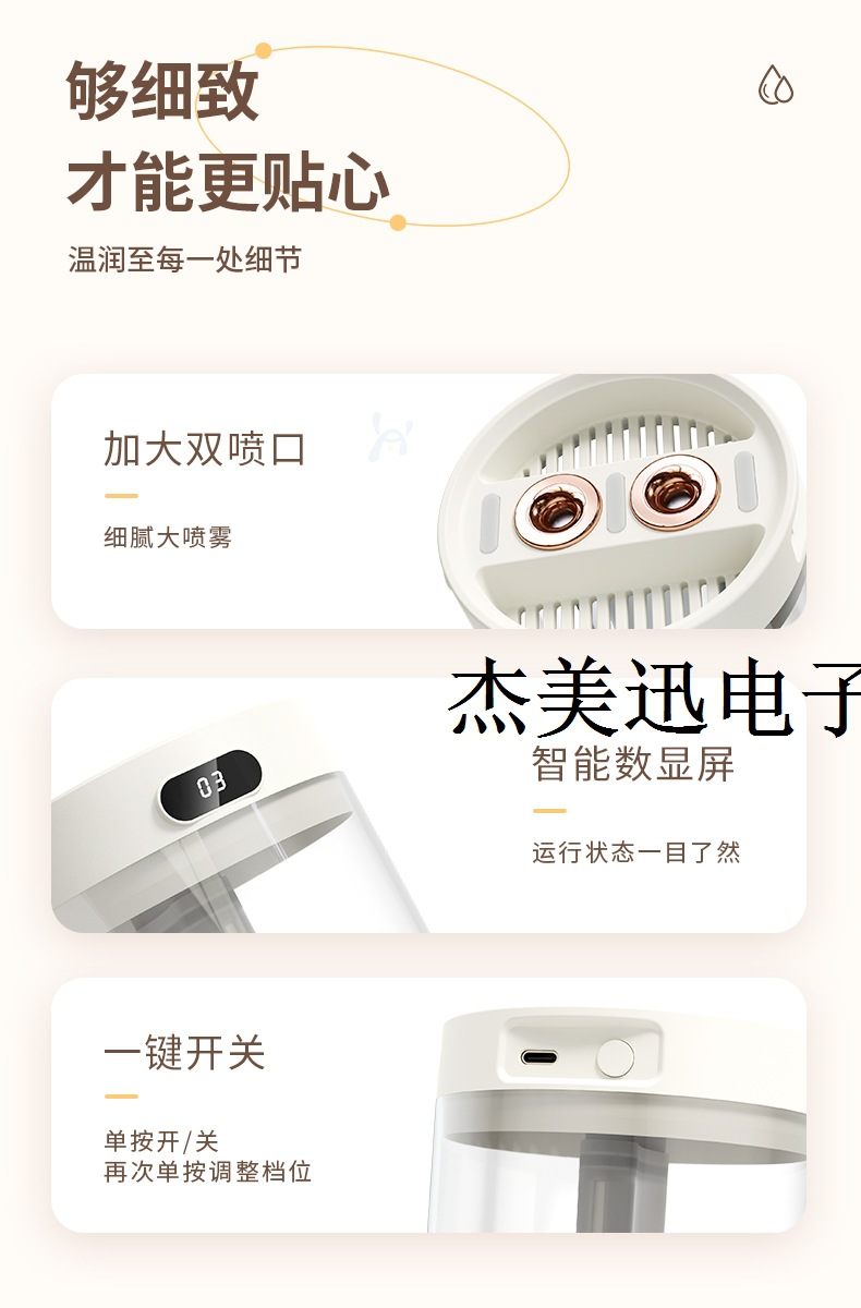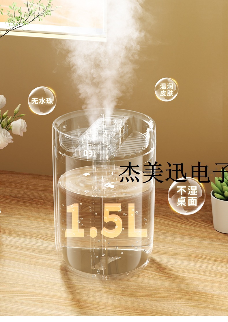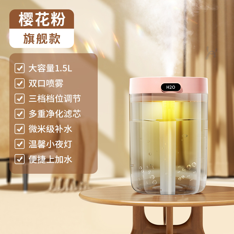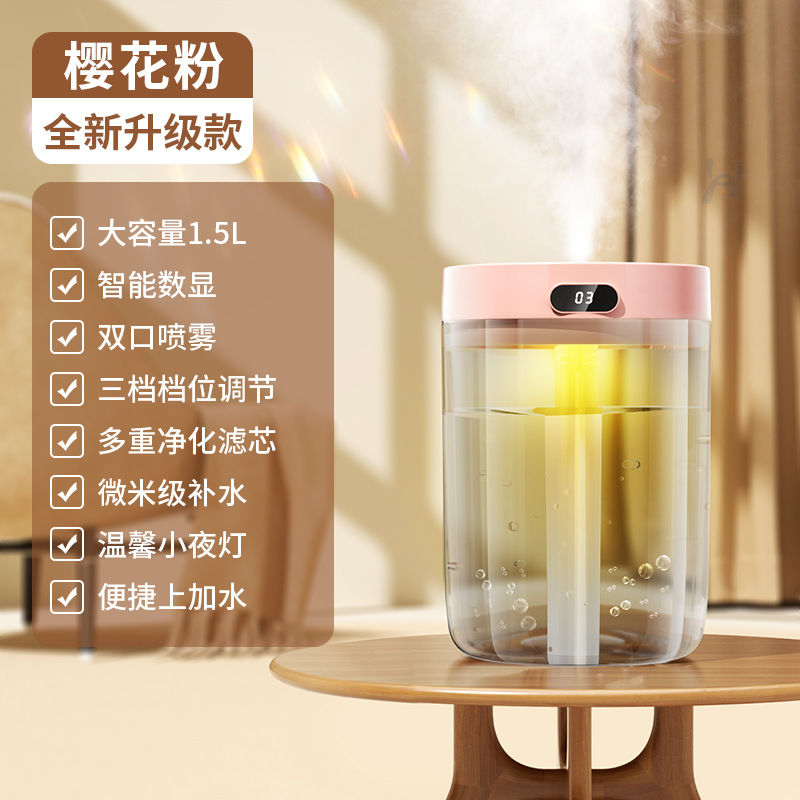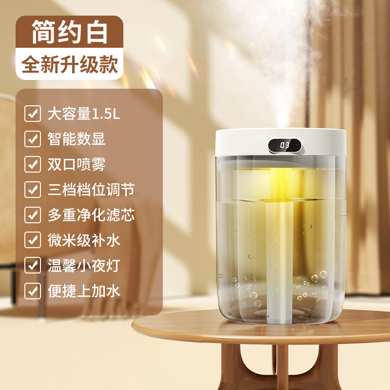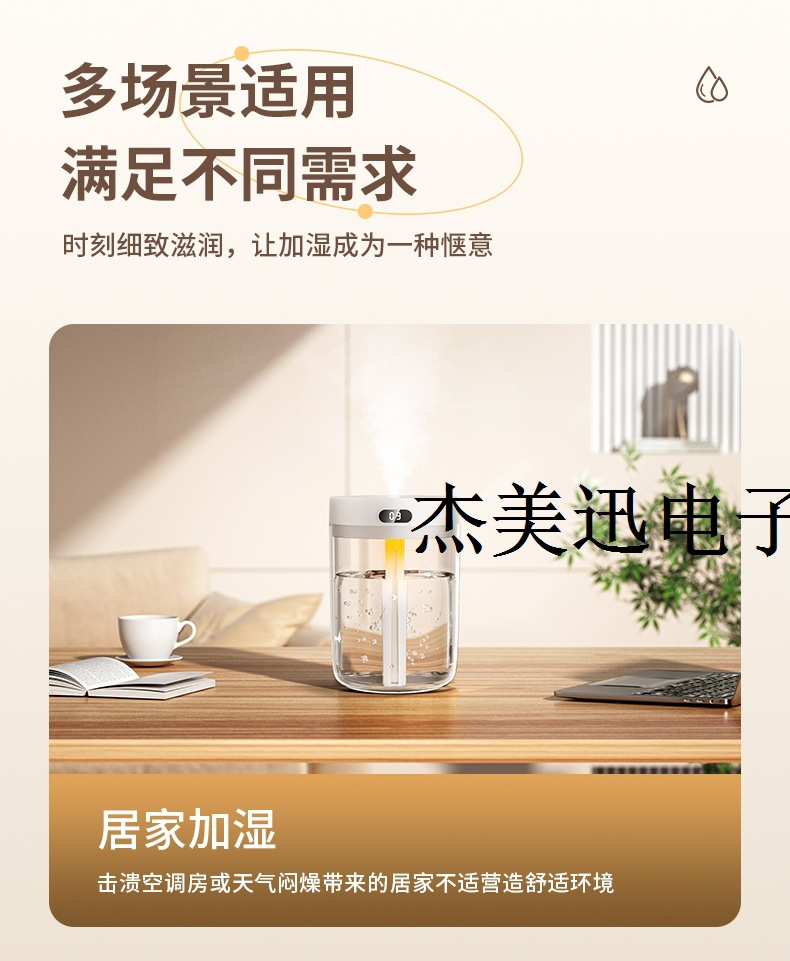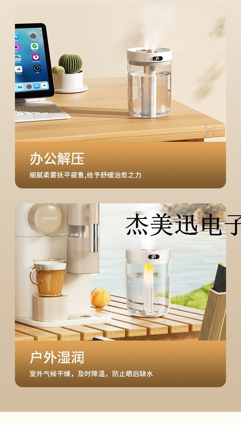 2024新款大容量双喷加湿器 usb家用卧室办公室静音炫彩数显加湿器