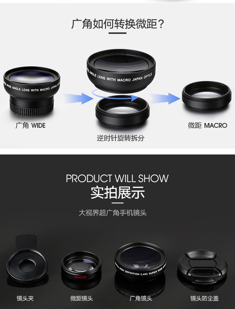 0.45通用手机镜头夹子37MM高清超级广角微距二合一增距外置摄像头