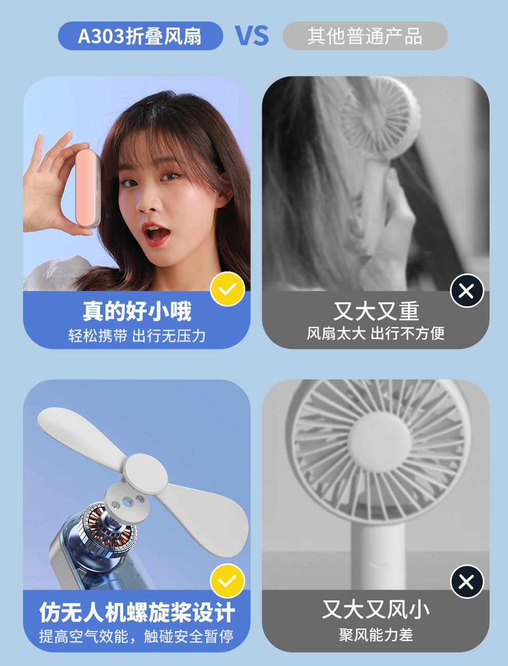 新款多功能便携小风扇学生手持风扇充电usb风扇礼品折叠迷你风扇