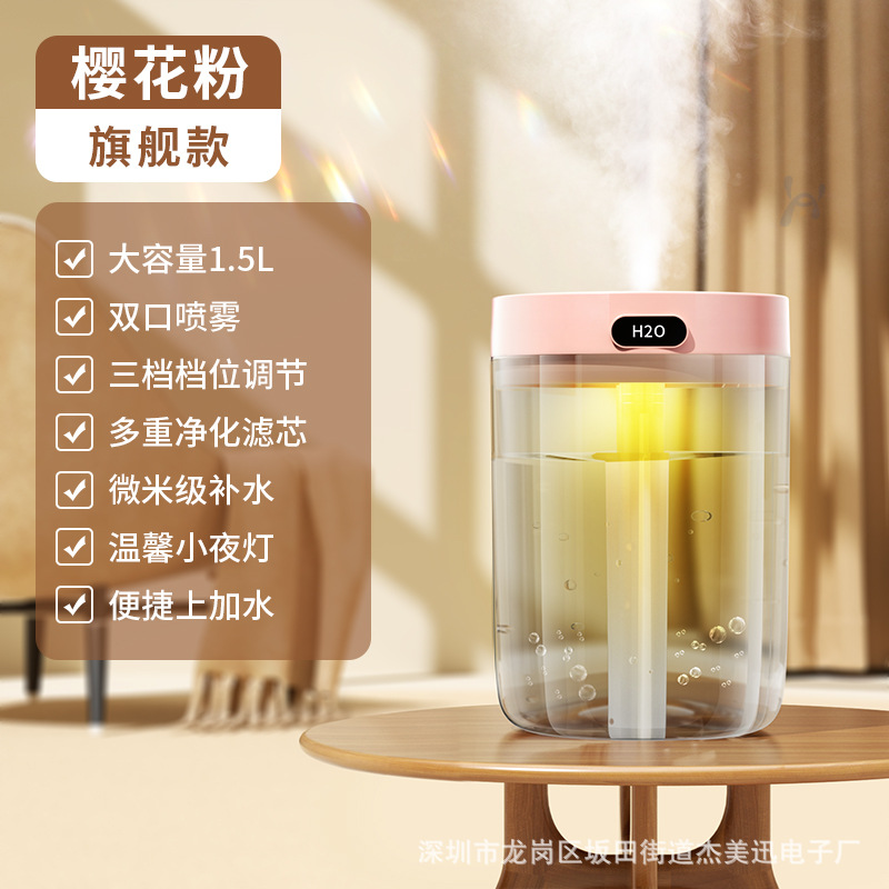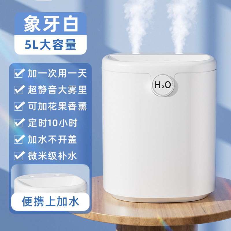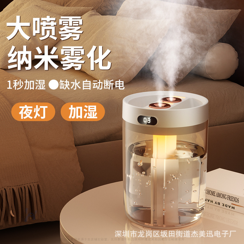 双喷加湿器家用办公桌面定制5L容量大雾量上加水炫彩数显加湿器