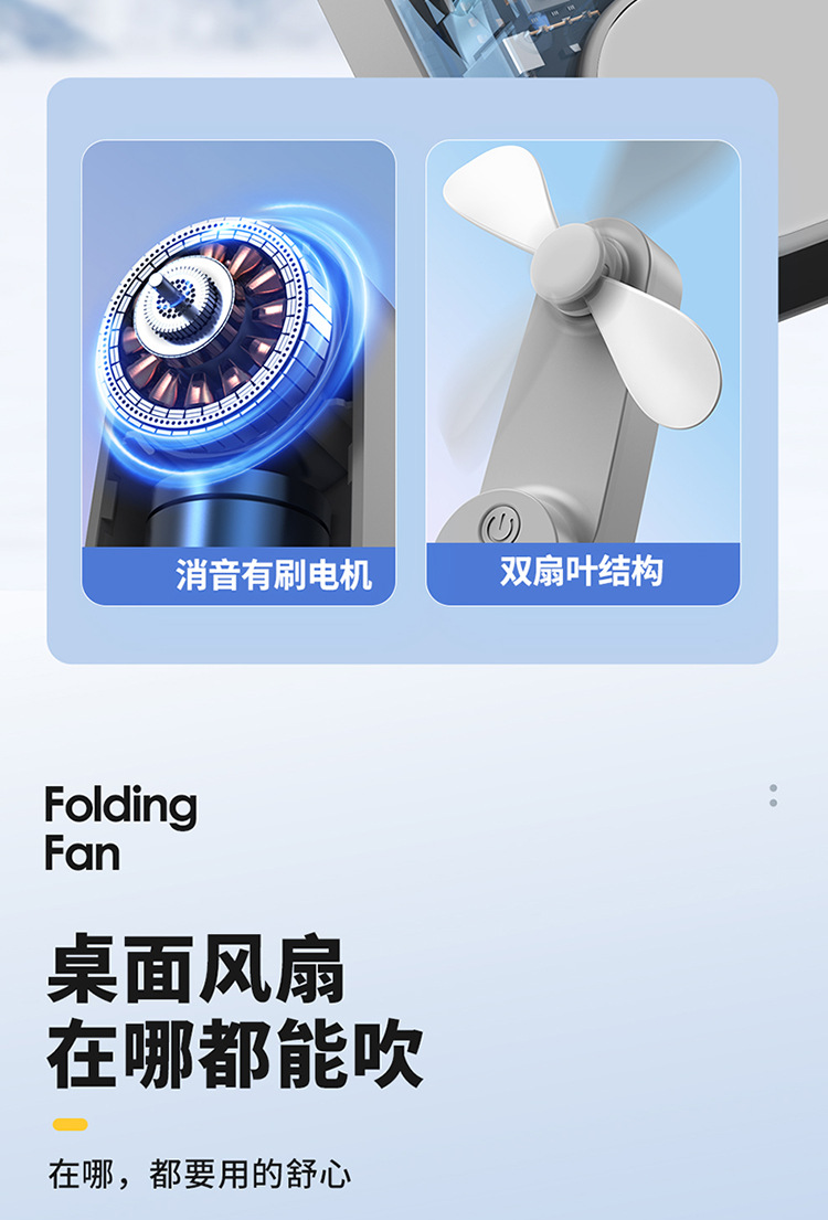 现货迷你usb手持折叠小风扇 便携静音小风扇多功能三合一创意礼品