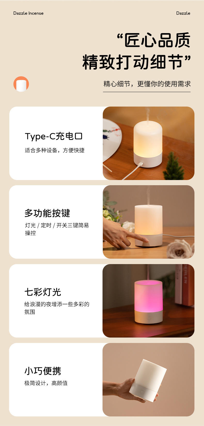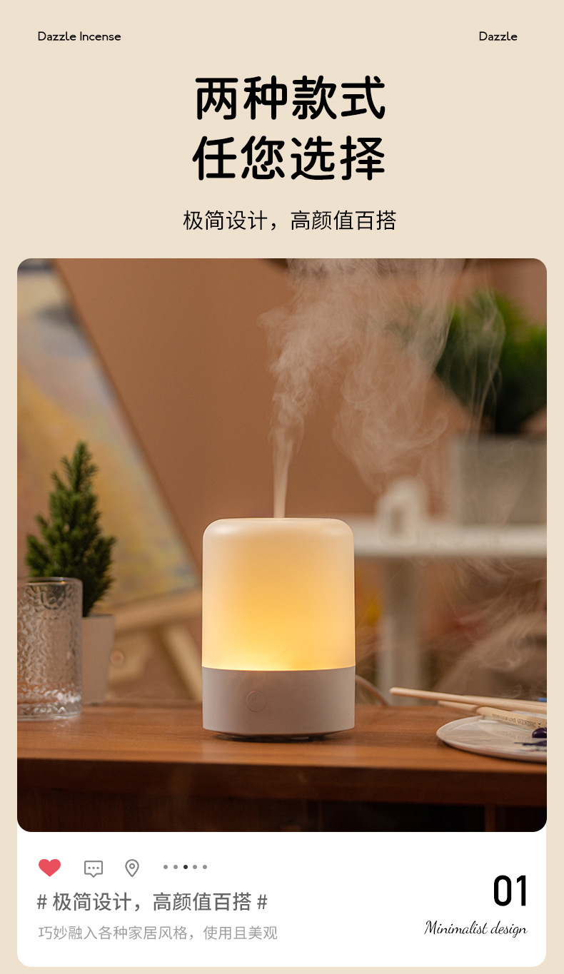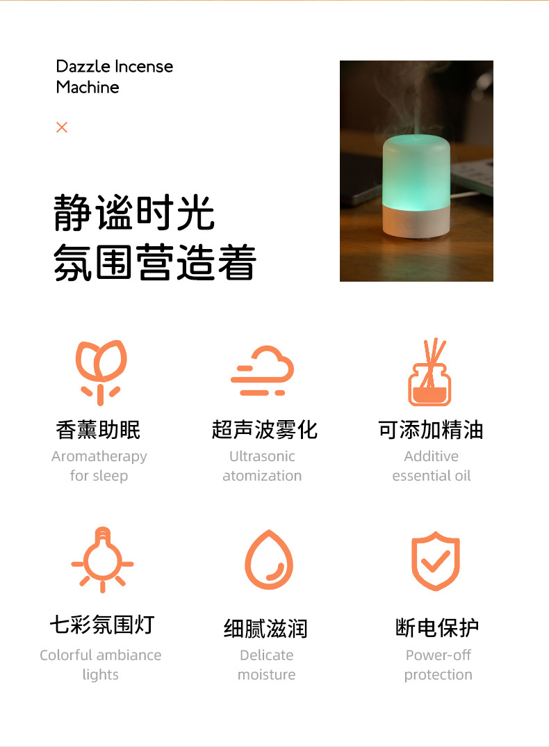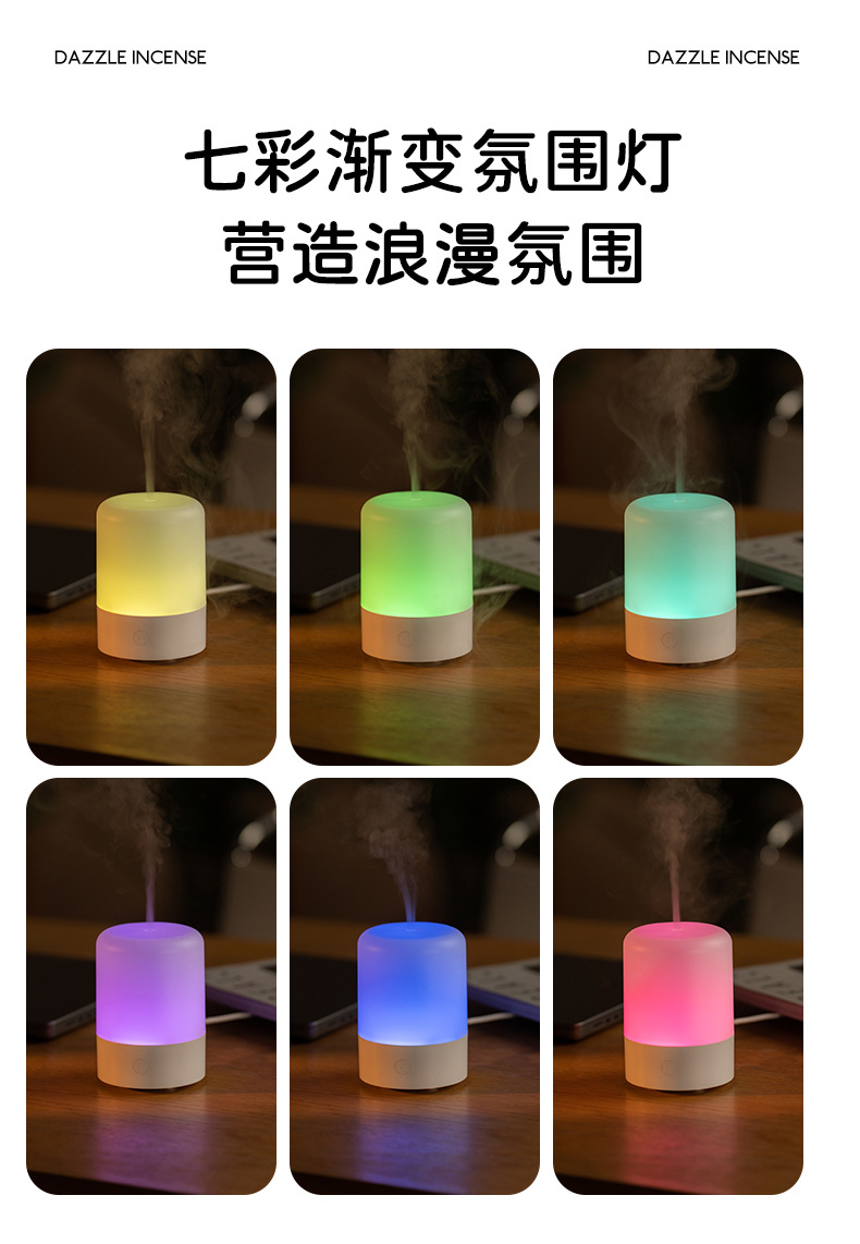 跨境新款七彩夜灯香薰机加湿器多用 USB桌面超声波雾化精油香氛机