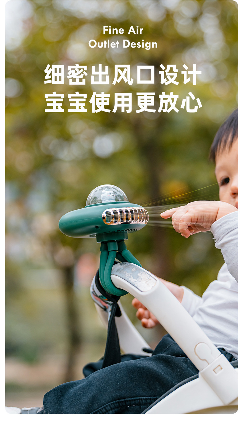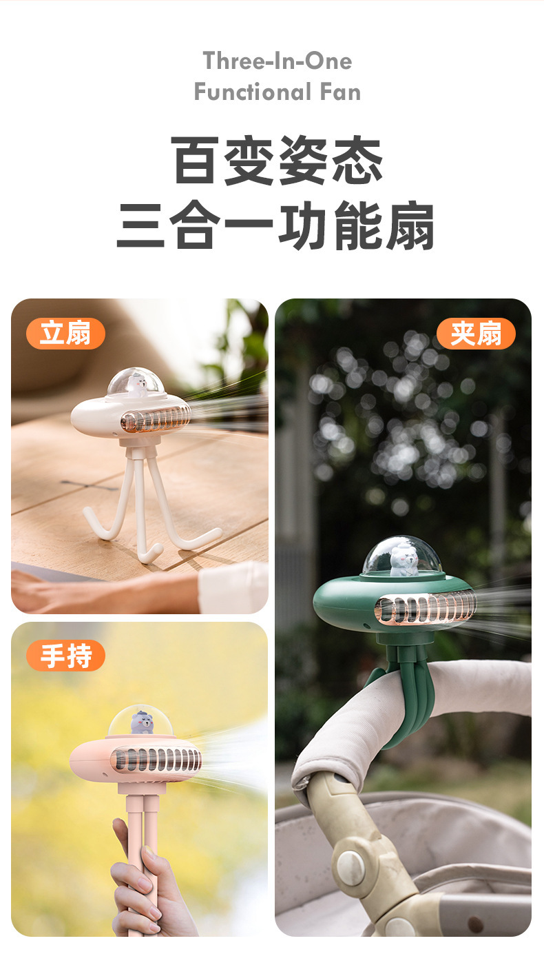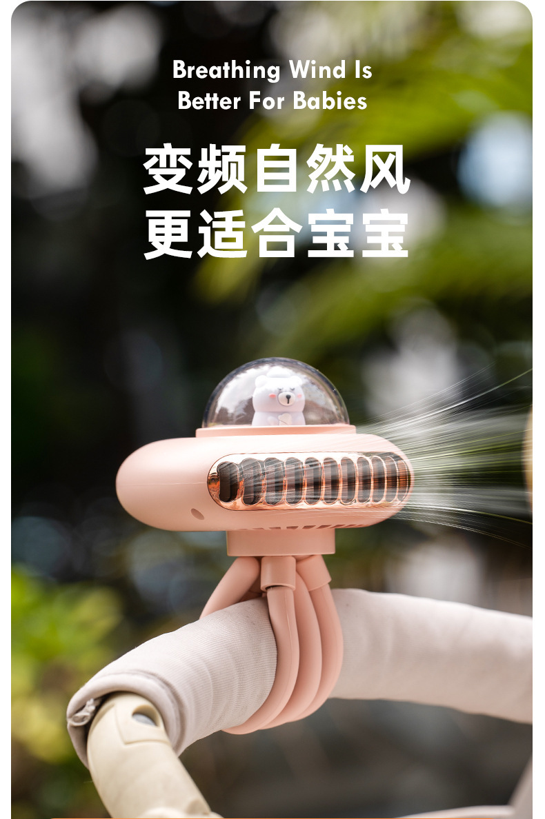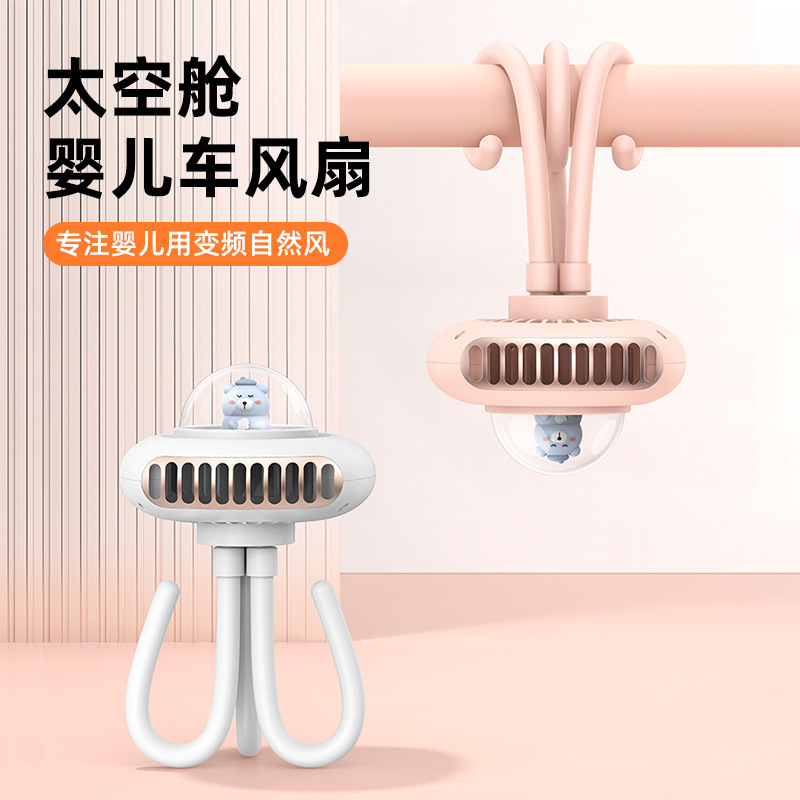 跨境2023新品太空舱婴儿车风扇 卡通可爱儿童八爪鱼迷你电风扇