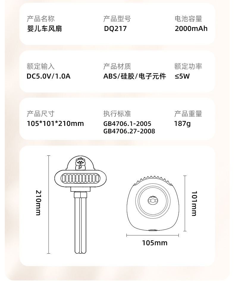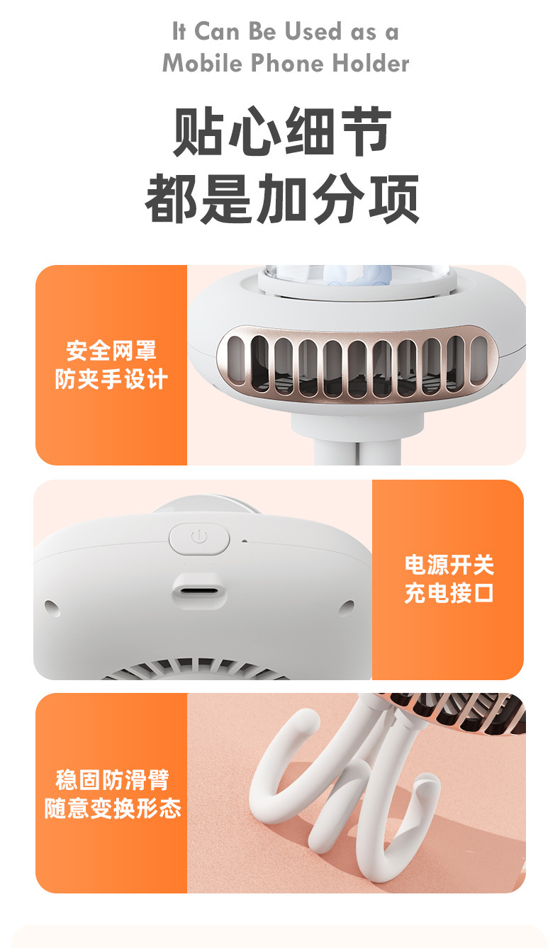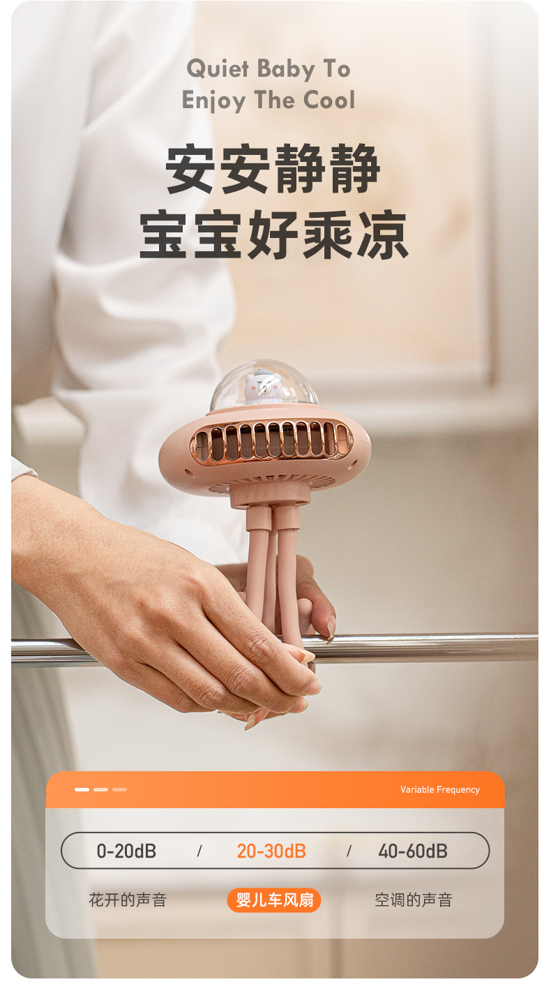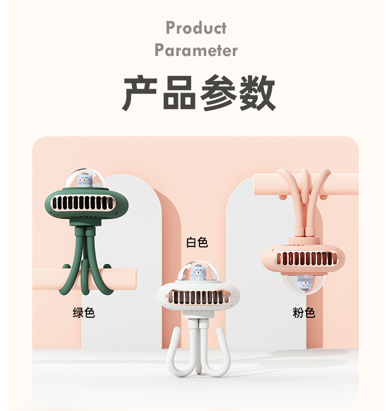 跨境2023新品太空舱婴儿车风扇 卡通可爱儿童八爪鱼迷你电风扇