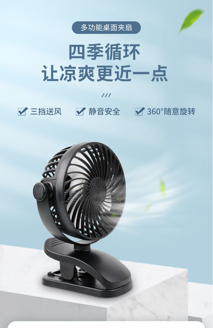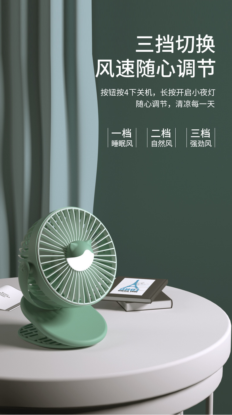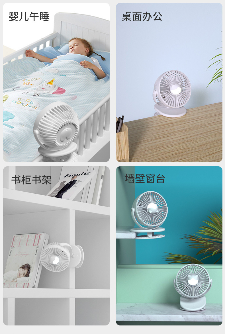 新款usb夹子小风扇 迷你电风扇宿舍桌面办公室婴儿车便携充电夜灯