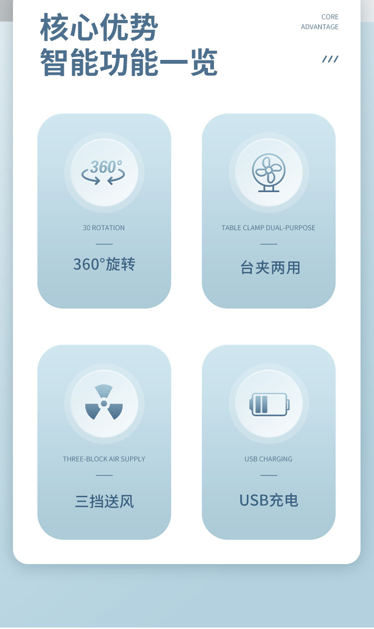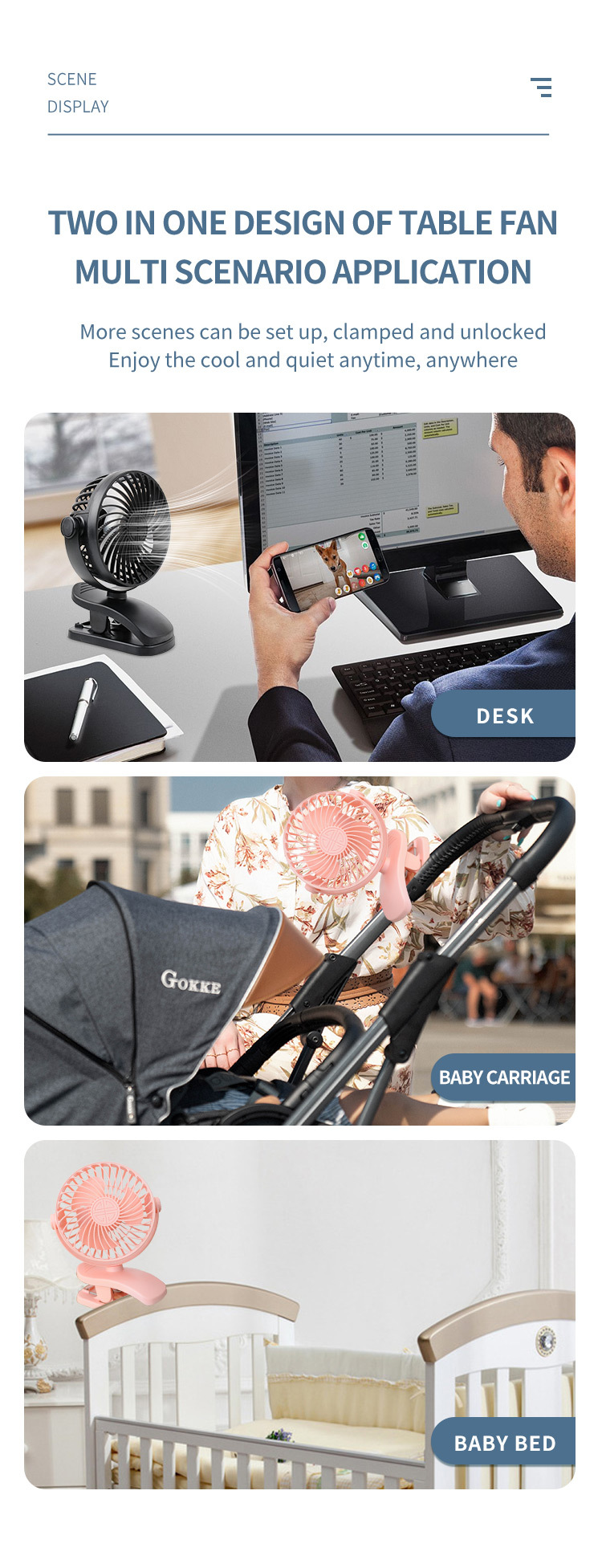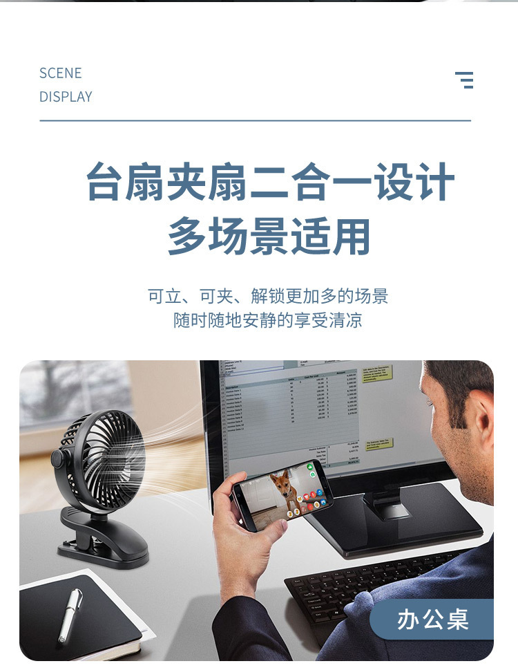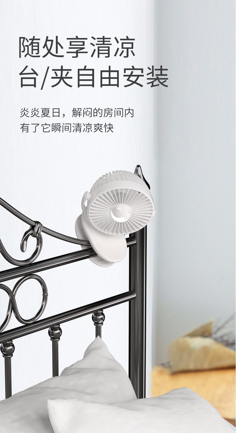 新款usb夹子小风扇 迷你电风扇宿舍桌面办公室婴儿车便携充电夜灯