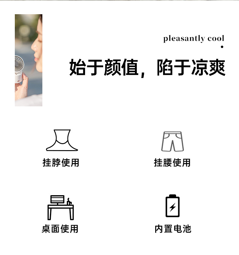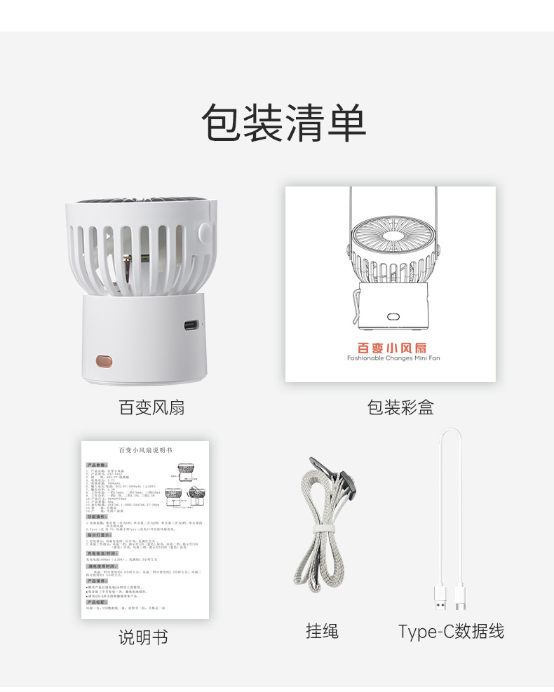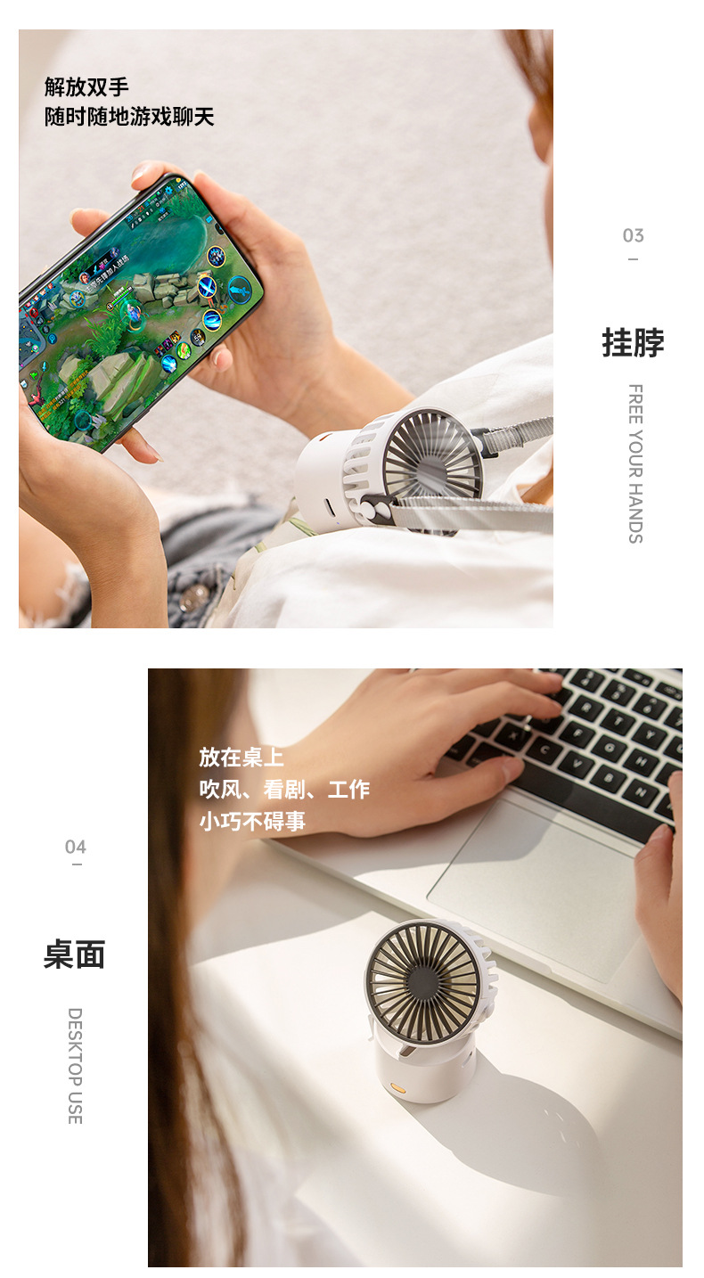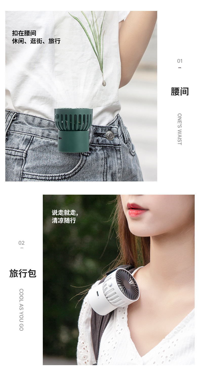 工厂直销手持百变小风扇 迷你挂脖挂腰桌面便携充电 学生风扇跨境