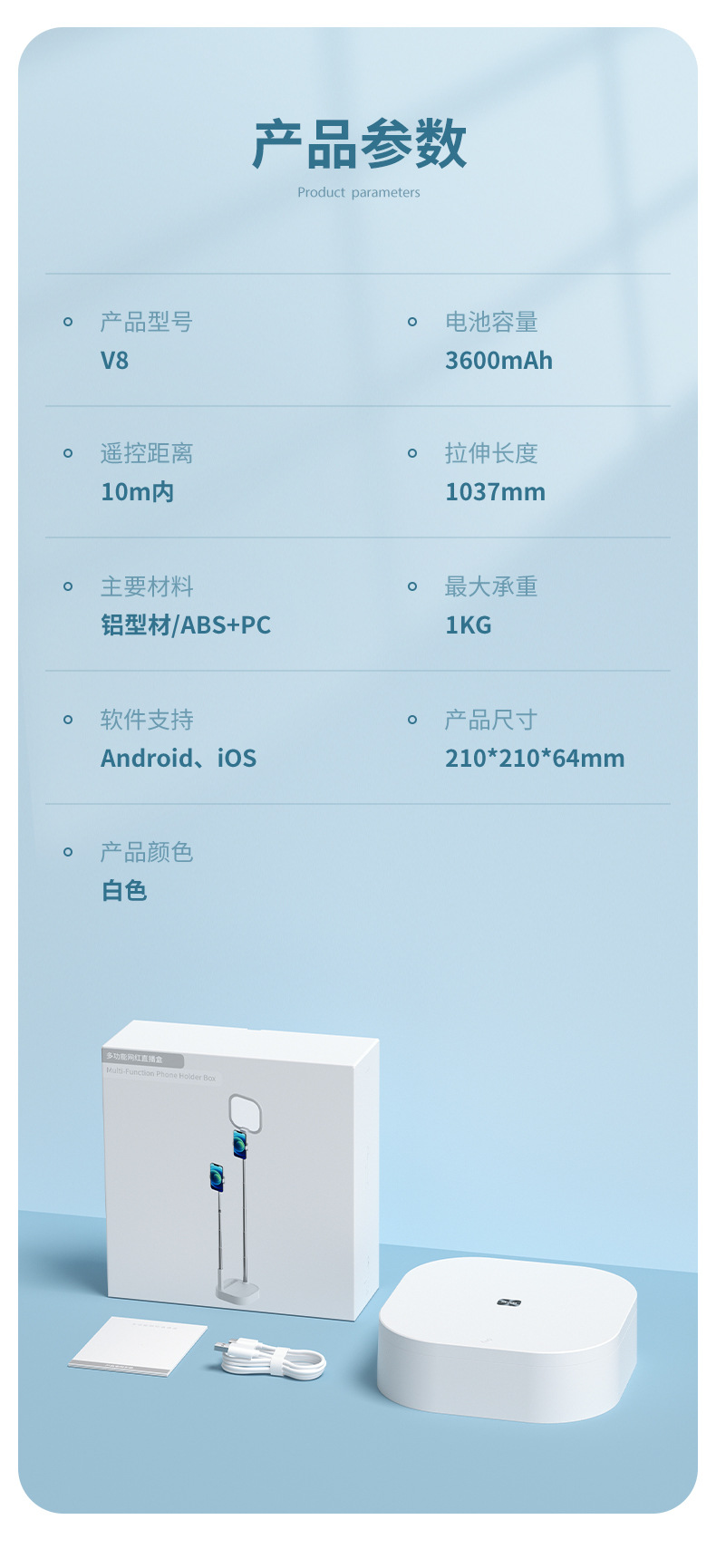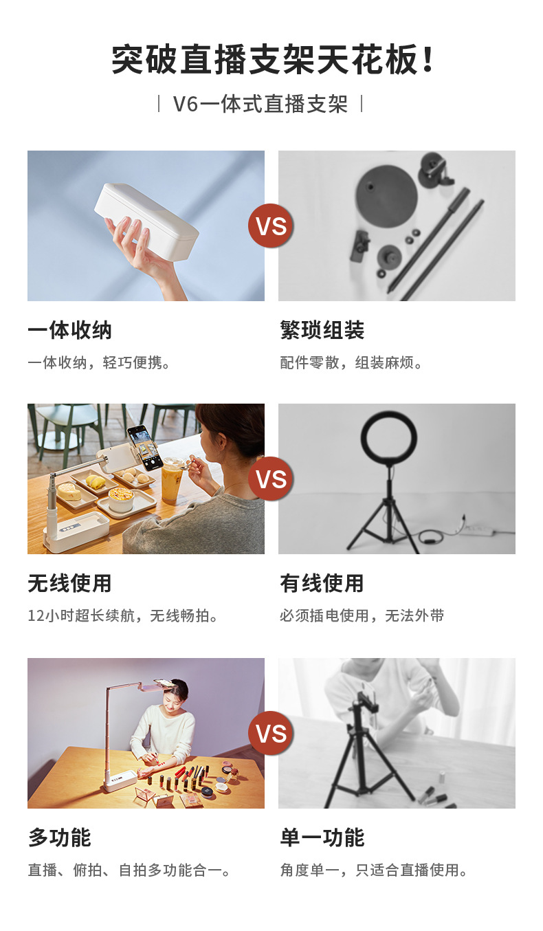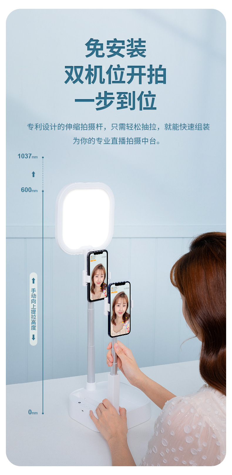V6多功能网红手机直播落地俯拍支架盒桌面伸缩折叠神器美颜补光灯