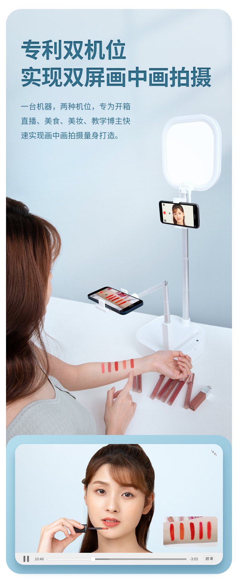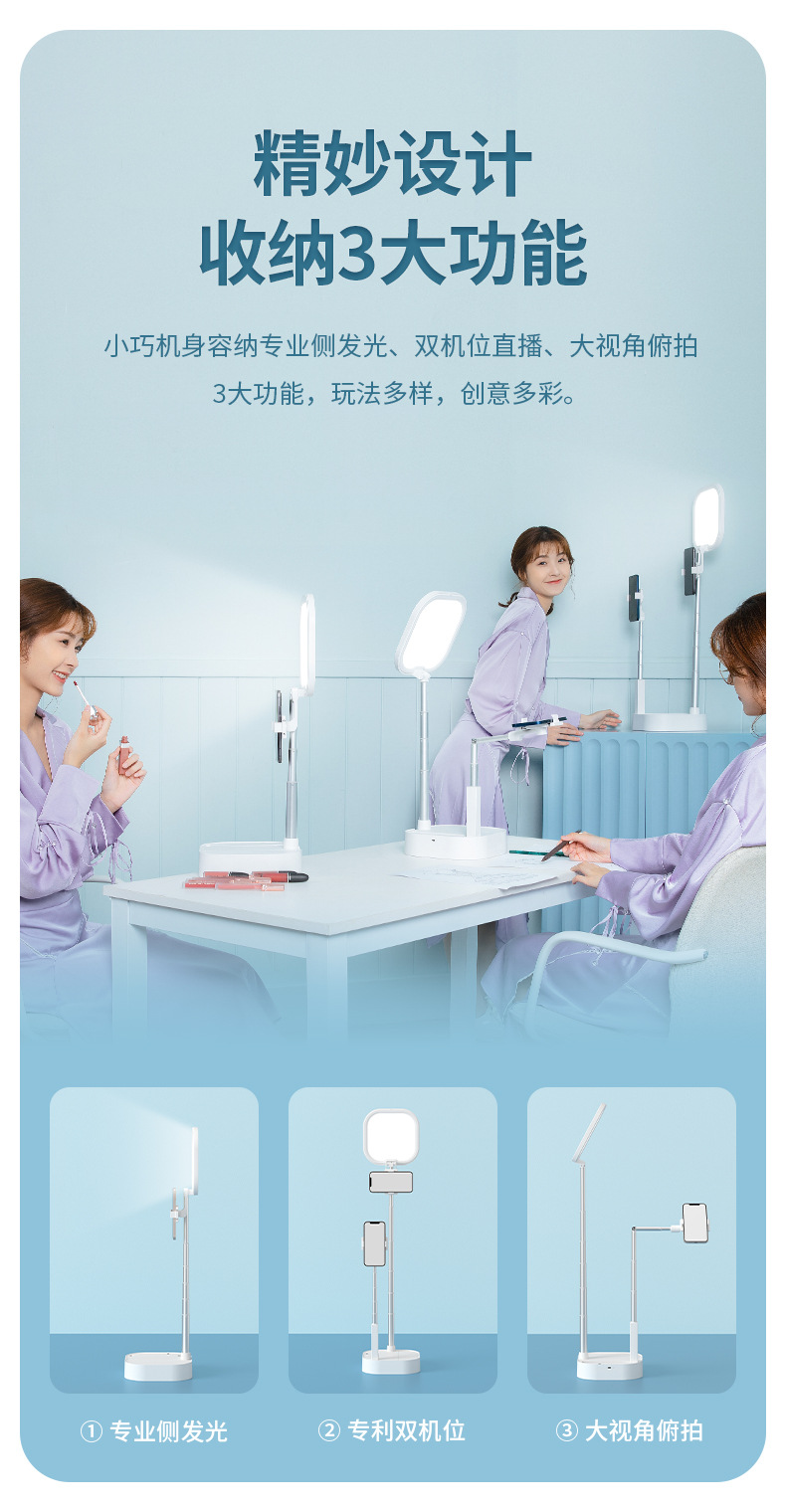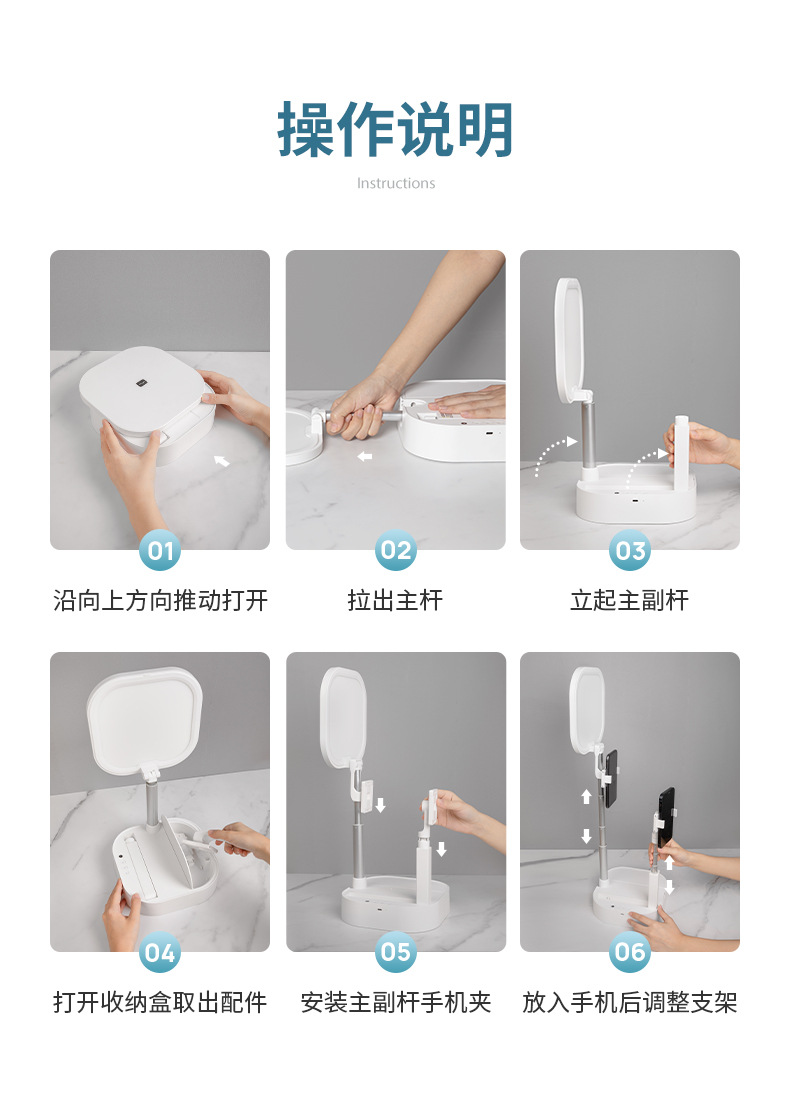 V6多功能网红手机直播落地俯拍支架盒桌面伸缩折叠神器美颜补光灯