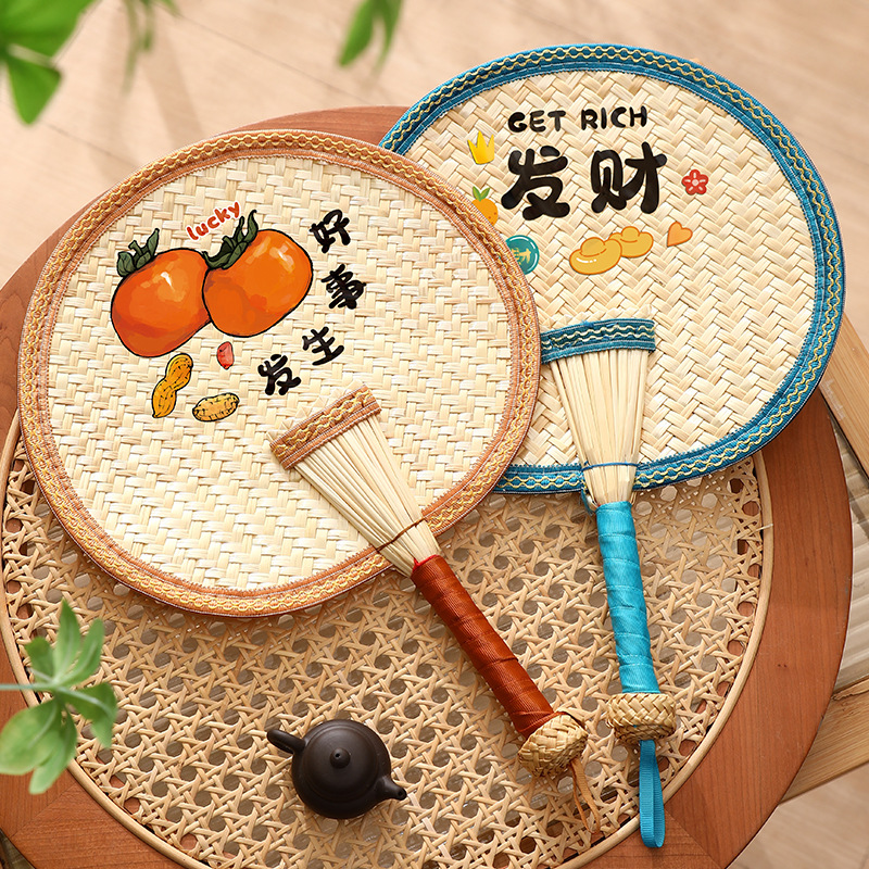 手工编织麦秆扇蒲扇随身便携夏天新款创意设计中国风麦秸扇草编扇