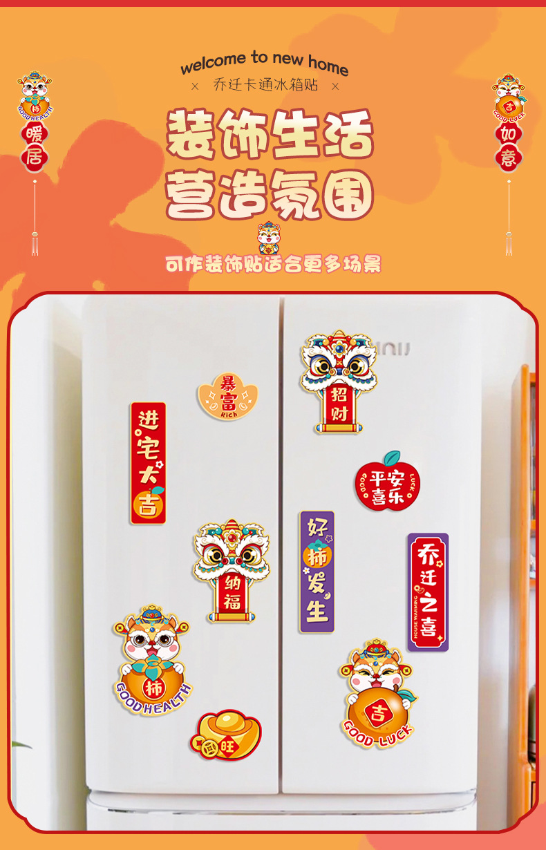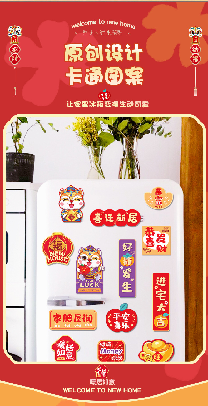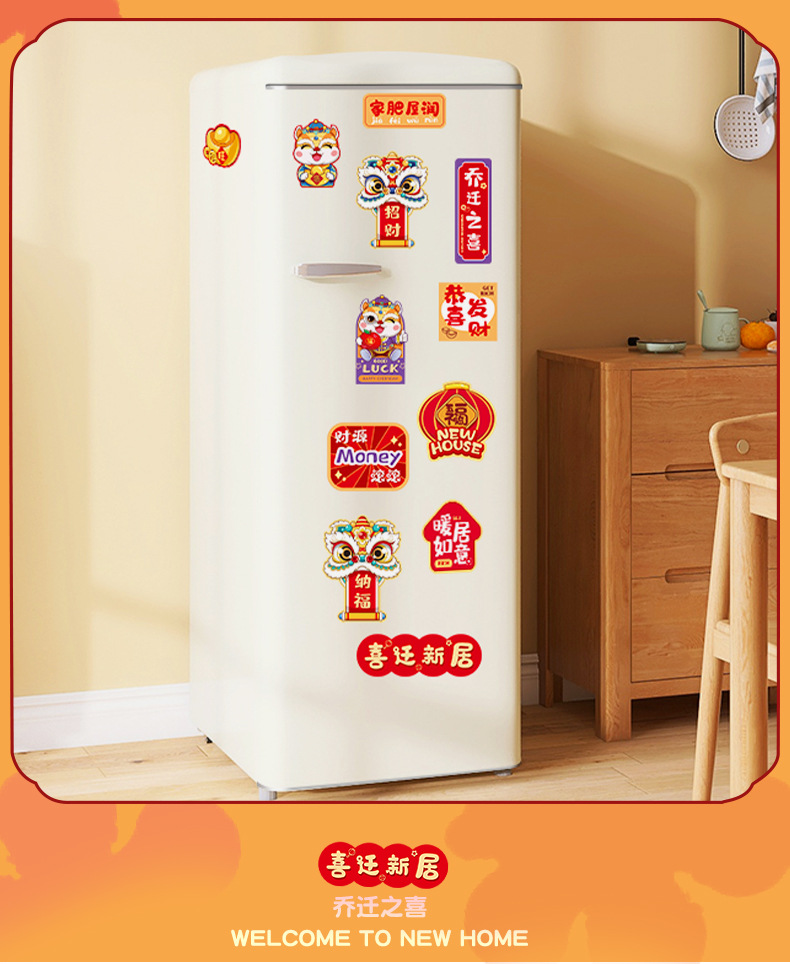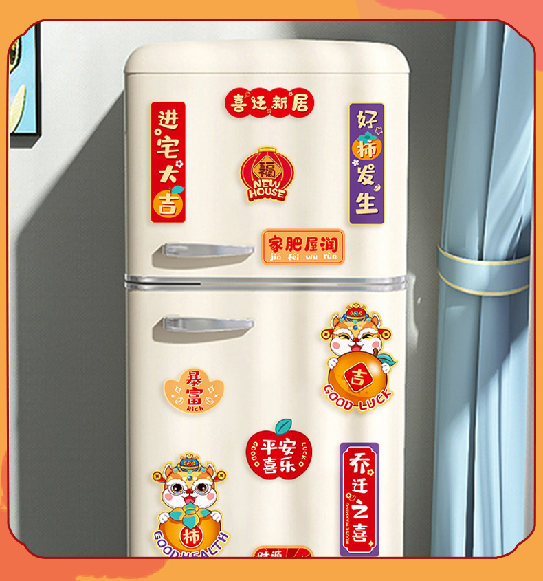 乔迁搬家冰箱贴磁贴个性创意装饰可爱好柿花生暴富乔迁喜庆贴侧面