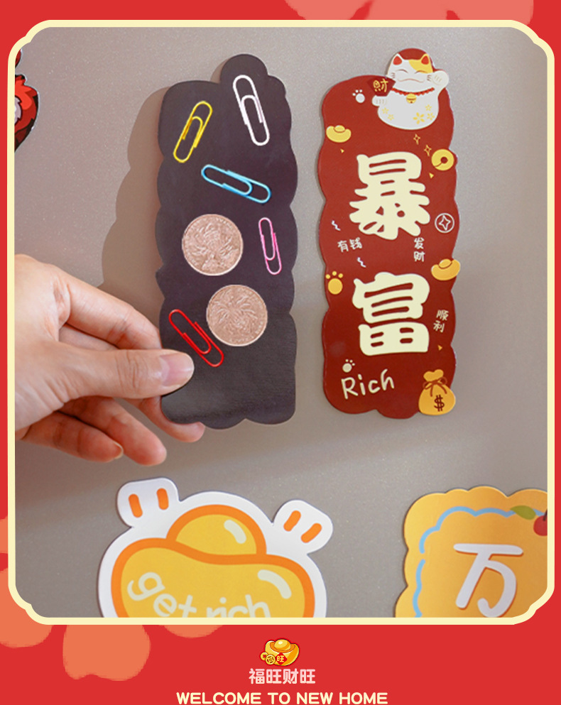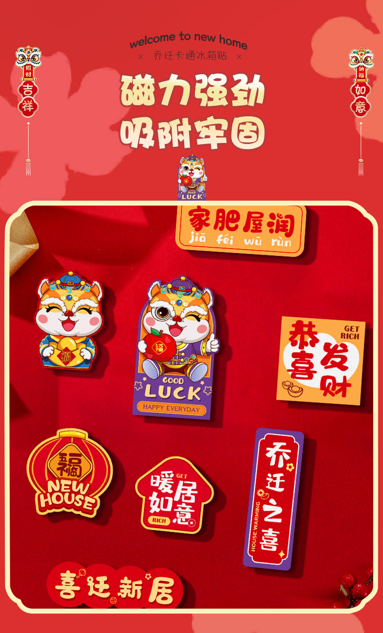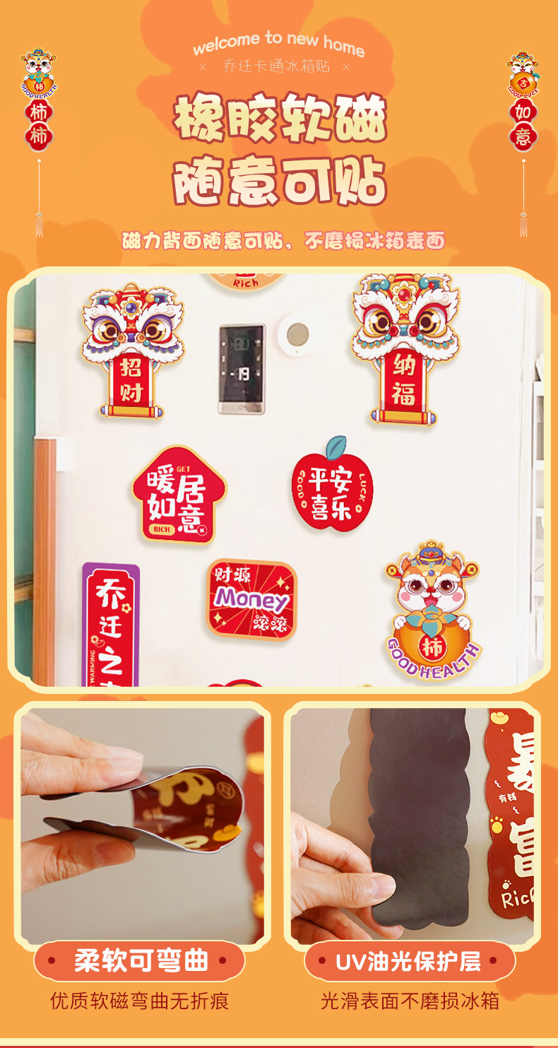乔迁搬家冰箱贴磁贴个性创意装饰可爱好柿花生暴富乔迁喜庆贴侧面
