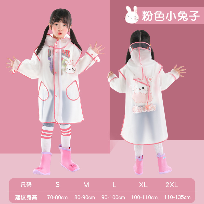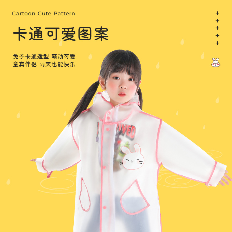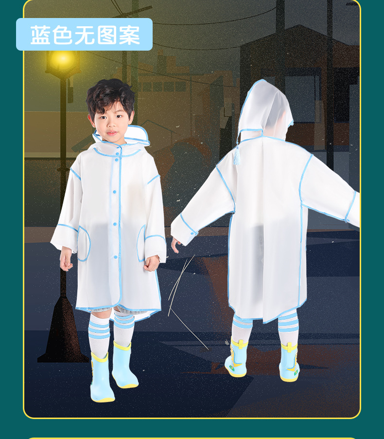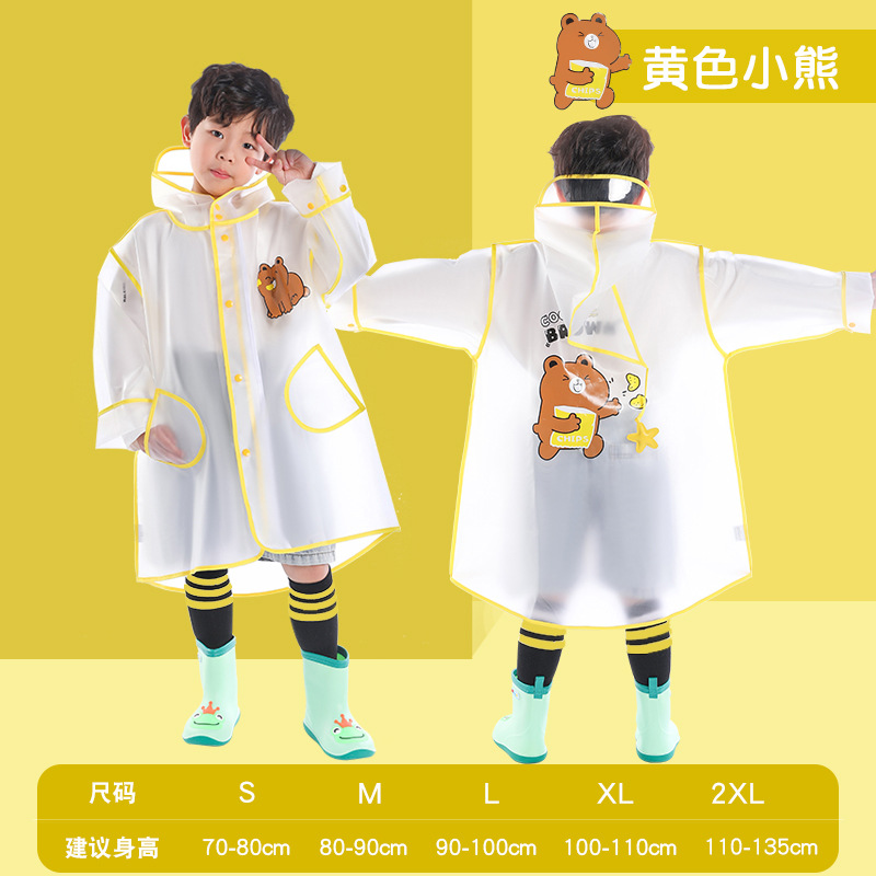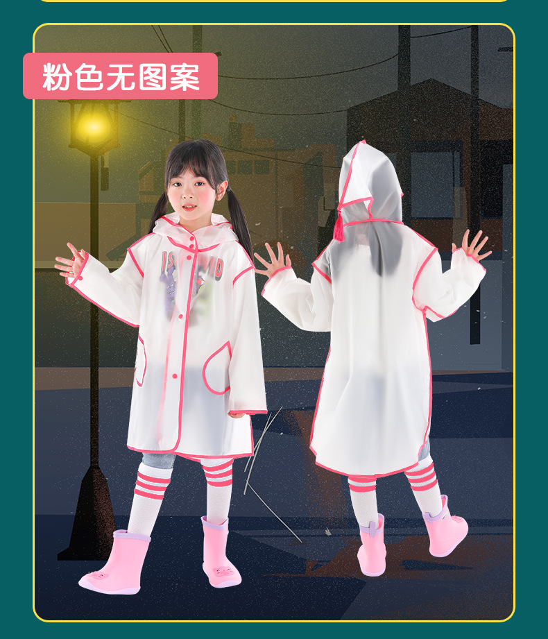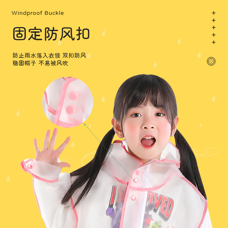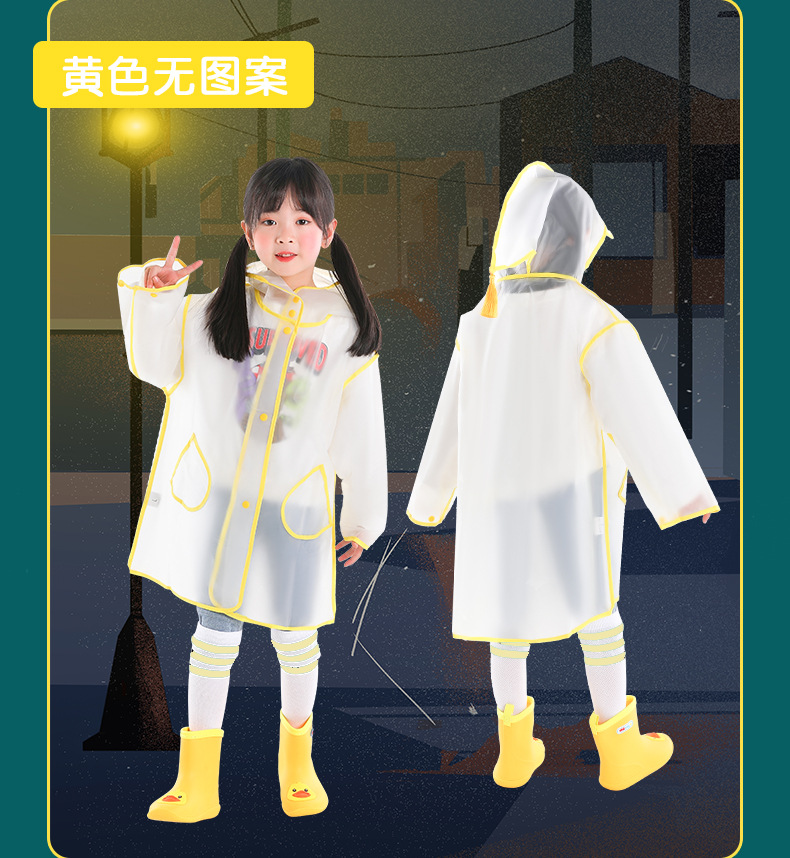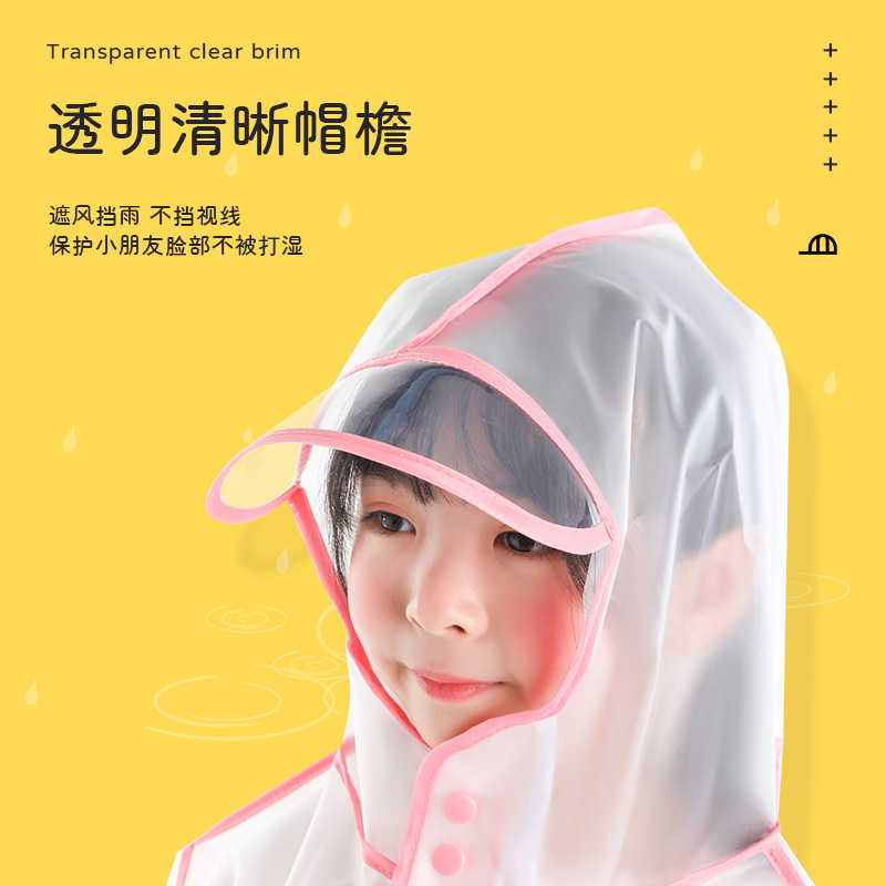 儿童连体雨衣透明简约可爱卡通防风防雨小学生幼儿园户外徒步雨披