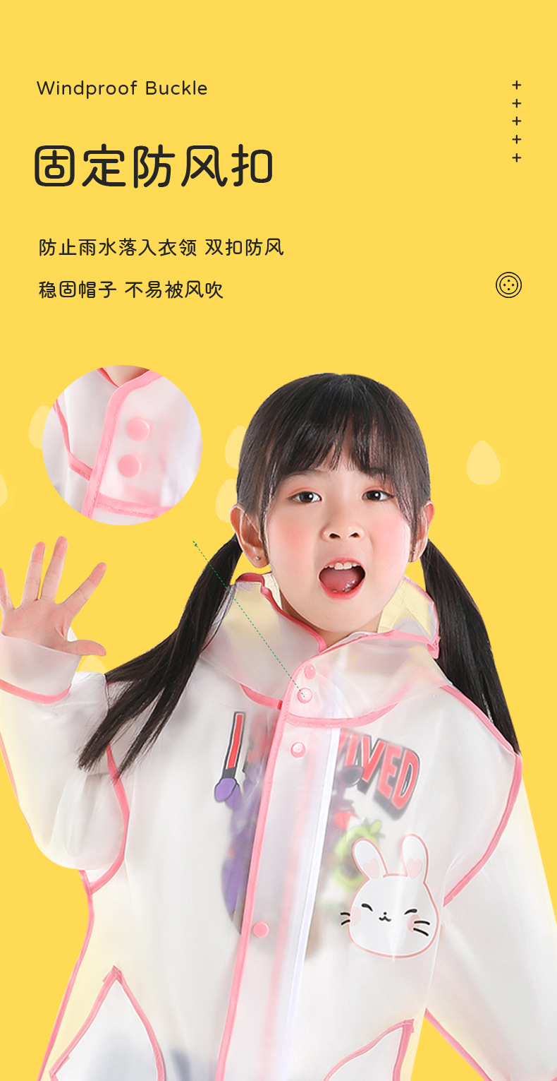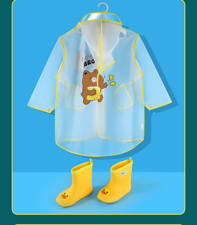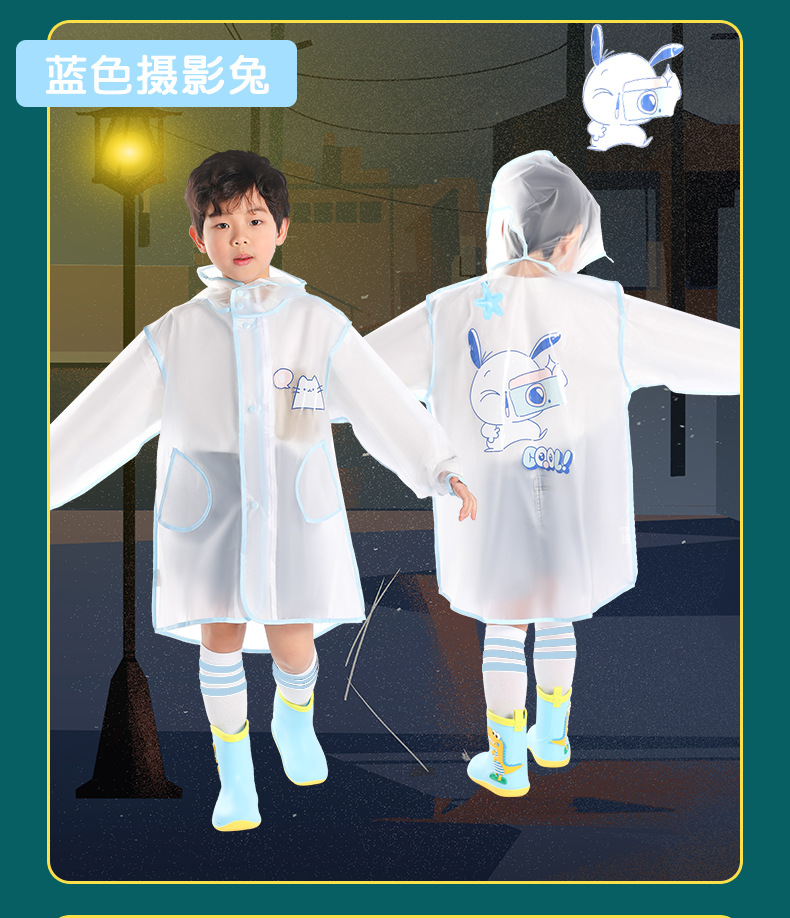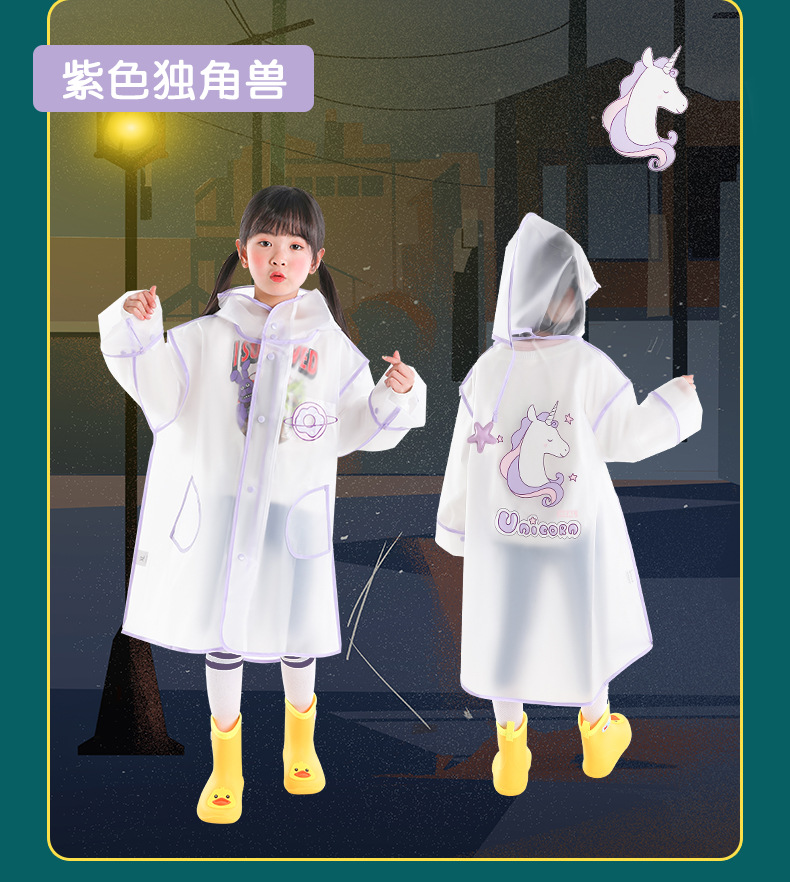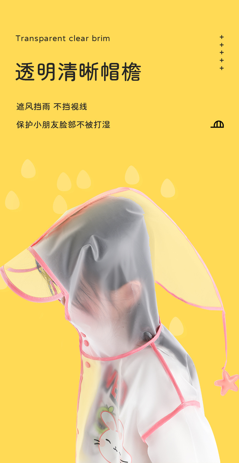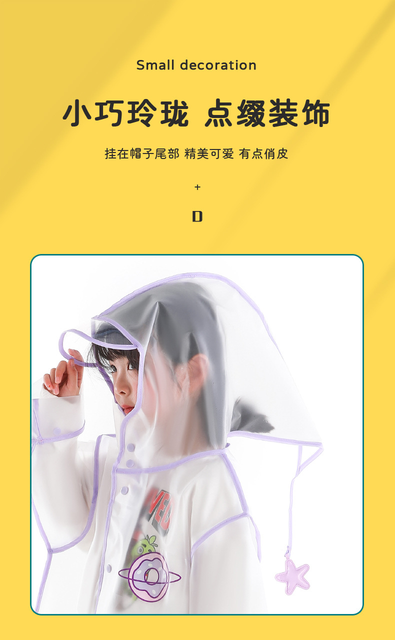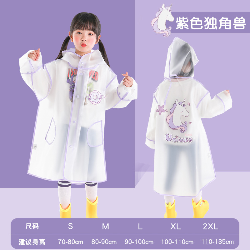 儿童连体雨衣透明简约可爱卡通防风防雨小学生幼儿园户外徒步雨披