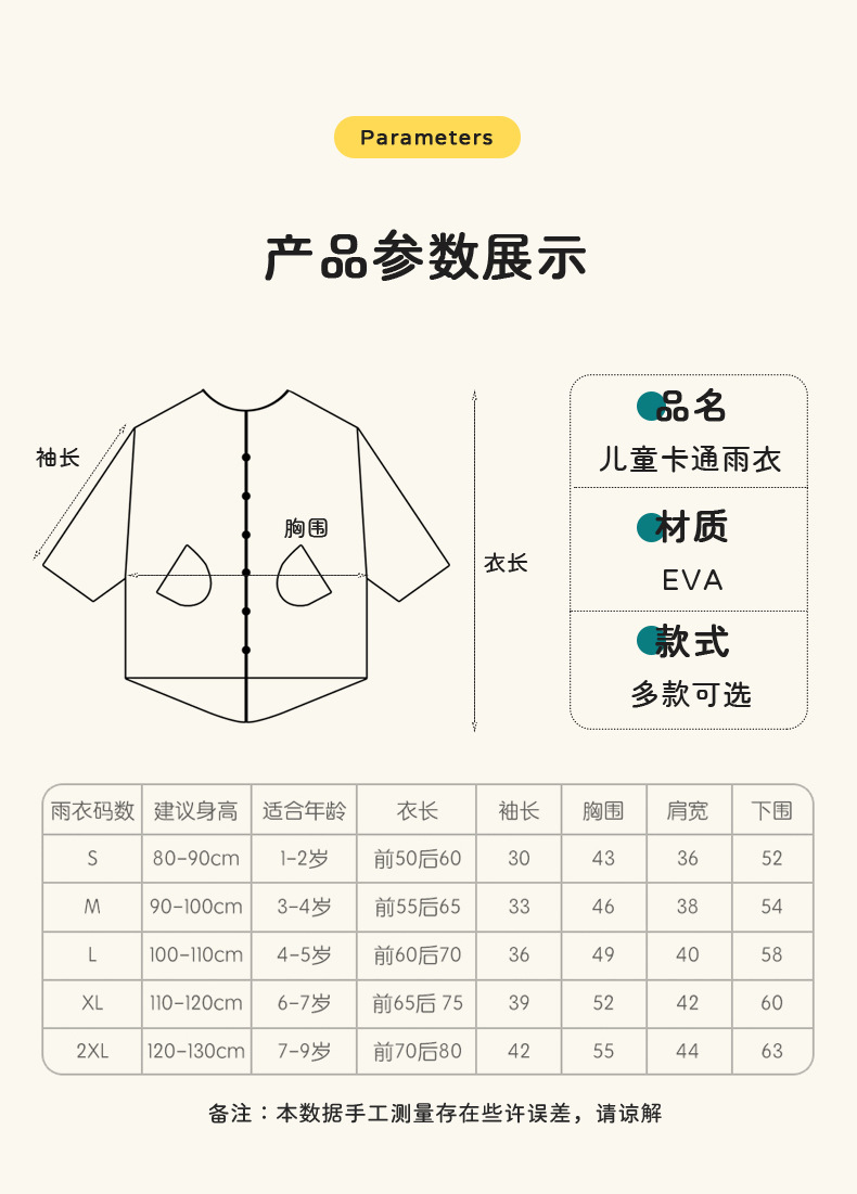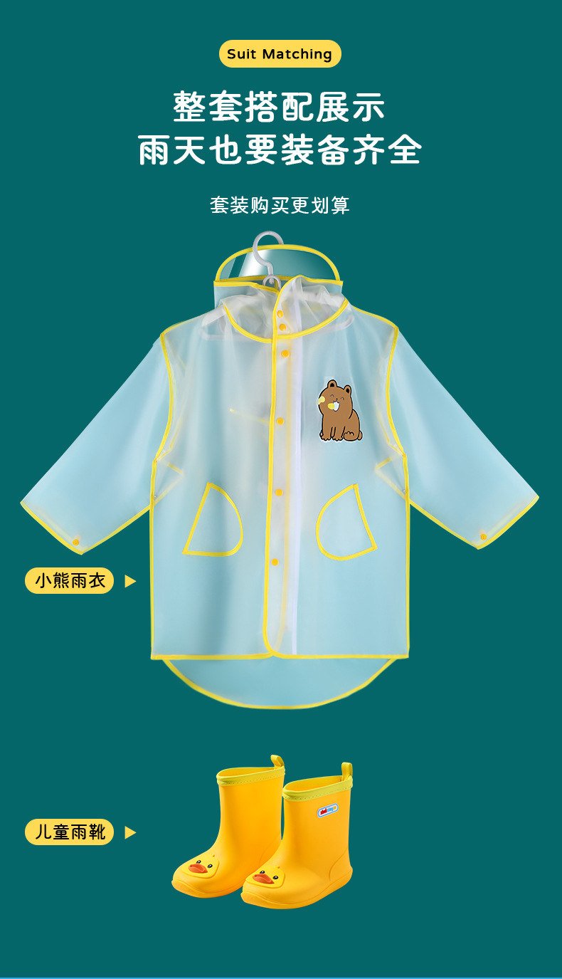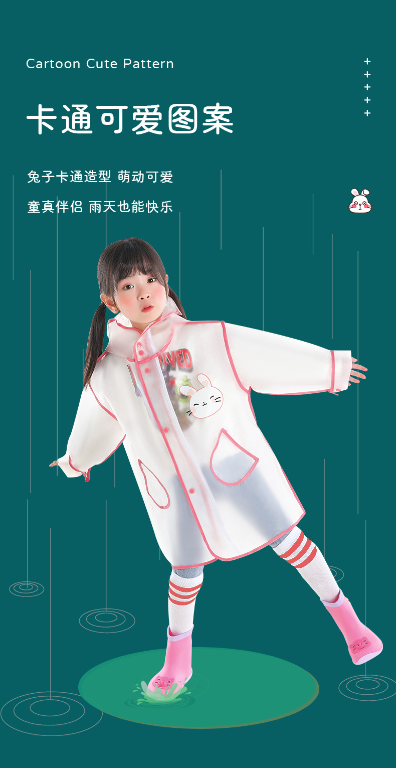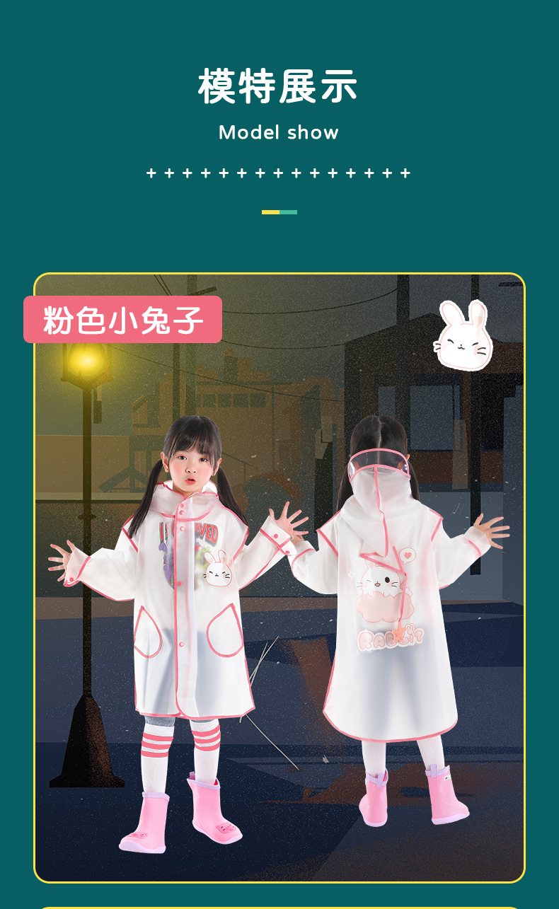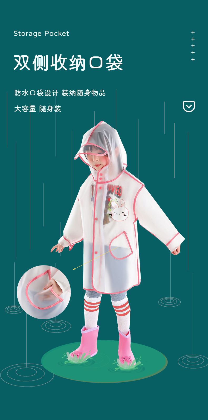 儿童连体雨衣透明简约可爱卡通防风防雨小学生幼儿园户外徒步雨披