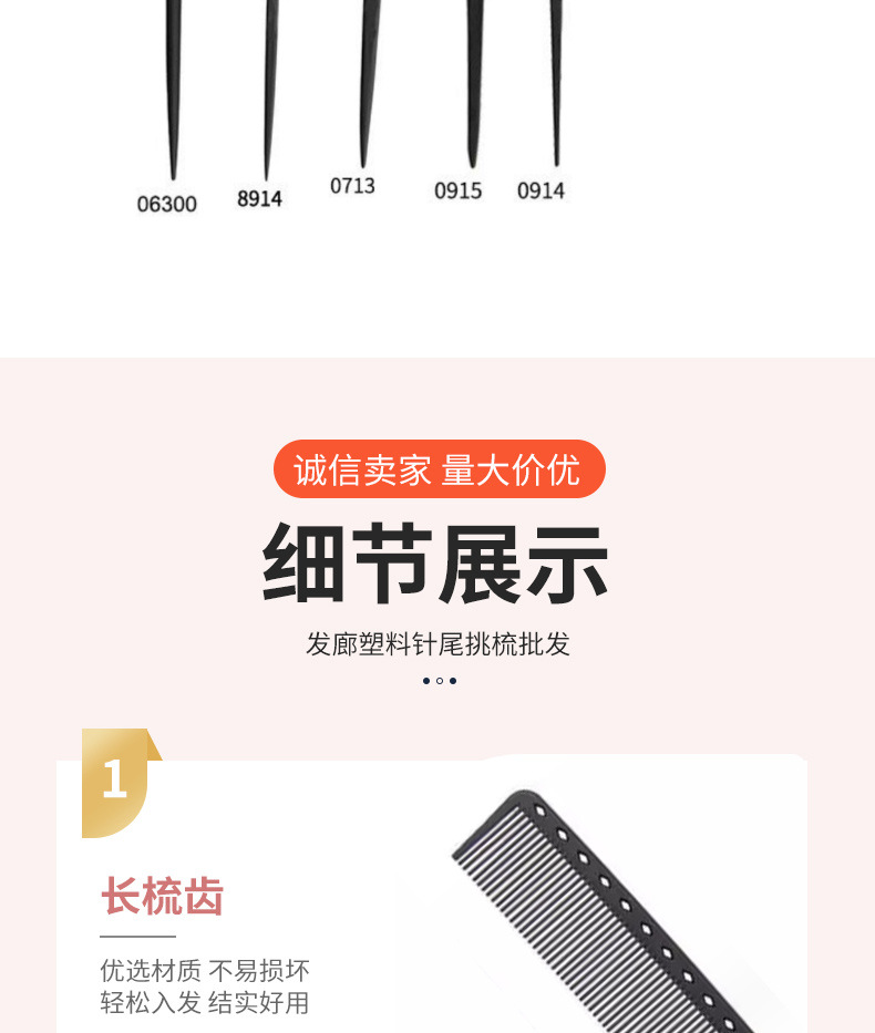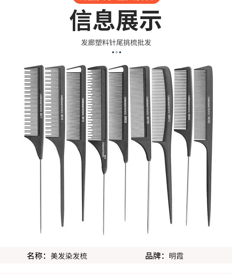 现货美发染发梳塑料剪发工具防静电理发梳子发廊塑料针尾挑梳批发