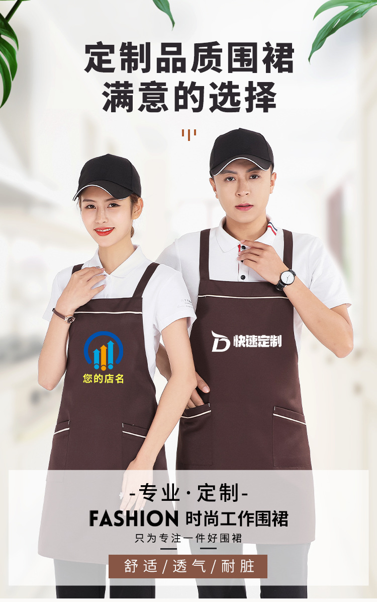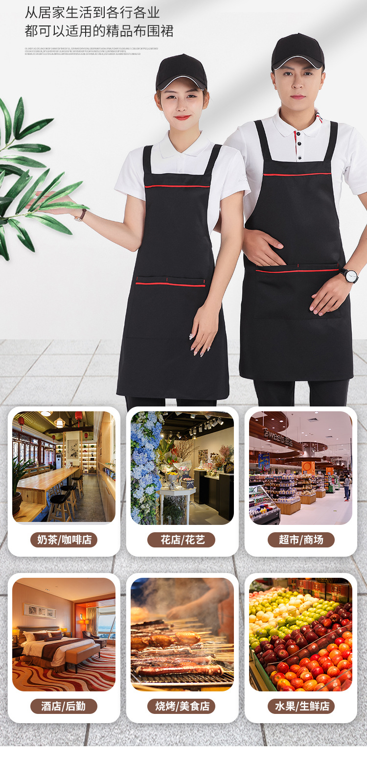 围裙餐饮专用可印logo印字烧烤火锅店交叉背带工作服女男时尚批发
