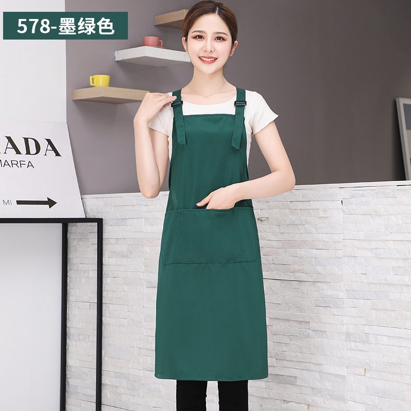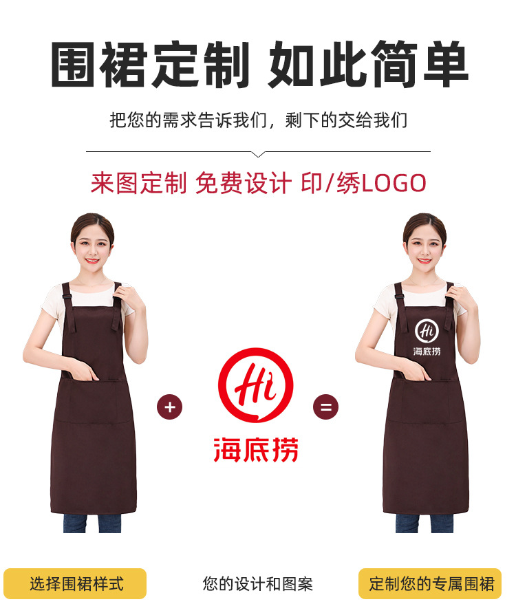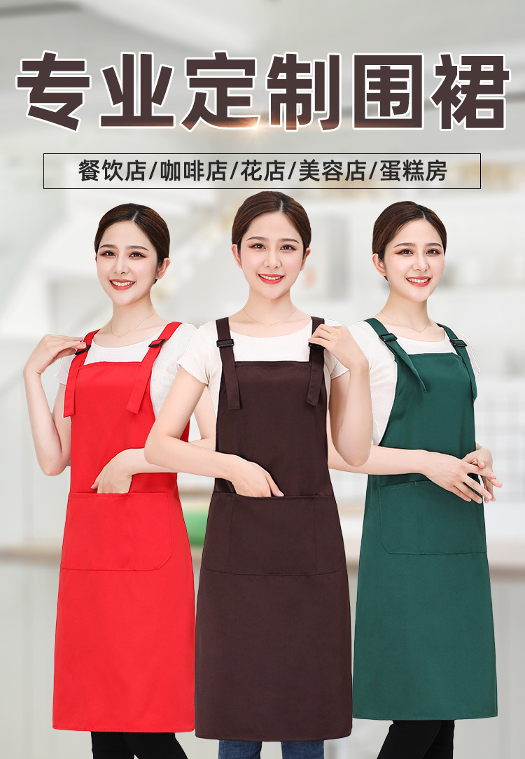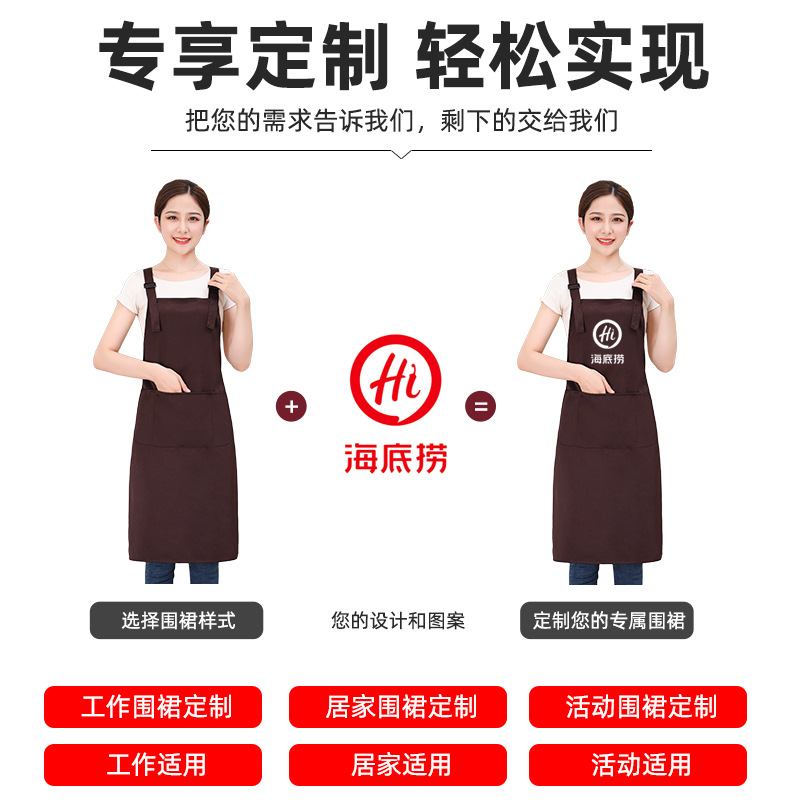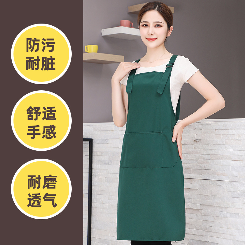 围裙定制logo工厂用防水工作服印字餐饮广告纯棉墨绿黑色围裙定做