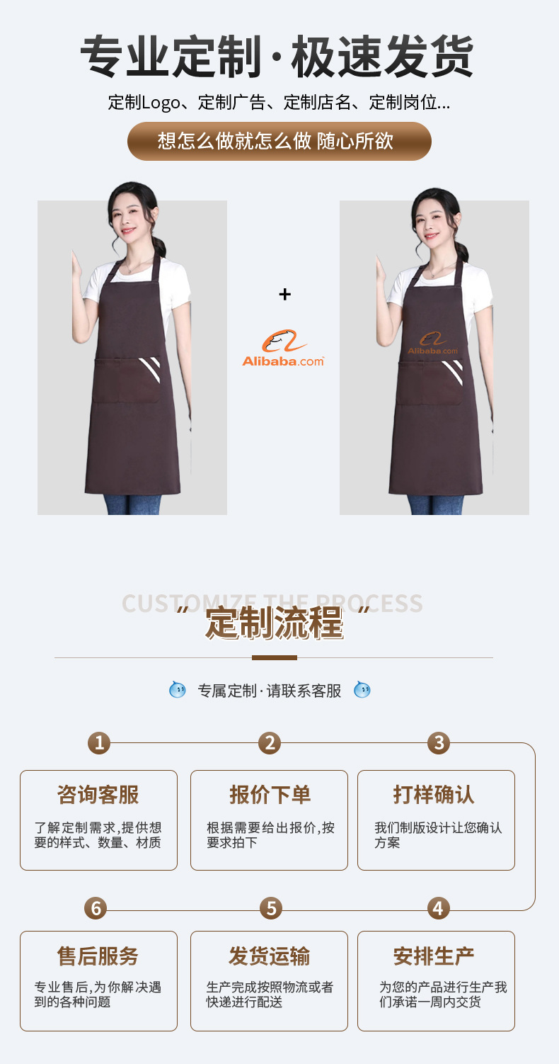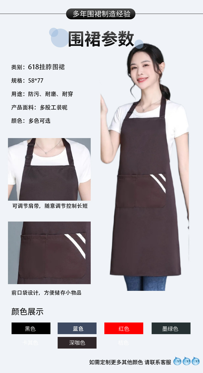 专用挂脖围裙防水防油工作印字厨房小批量广告围裙定logo工厂男女