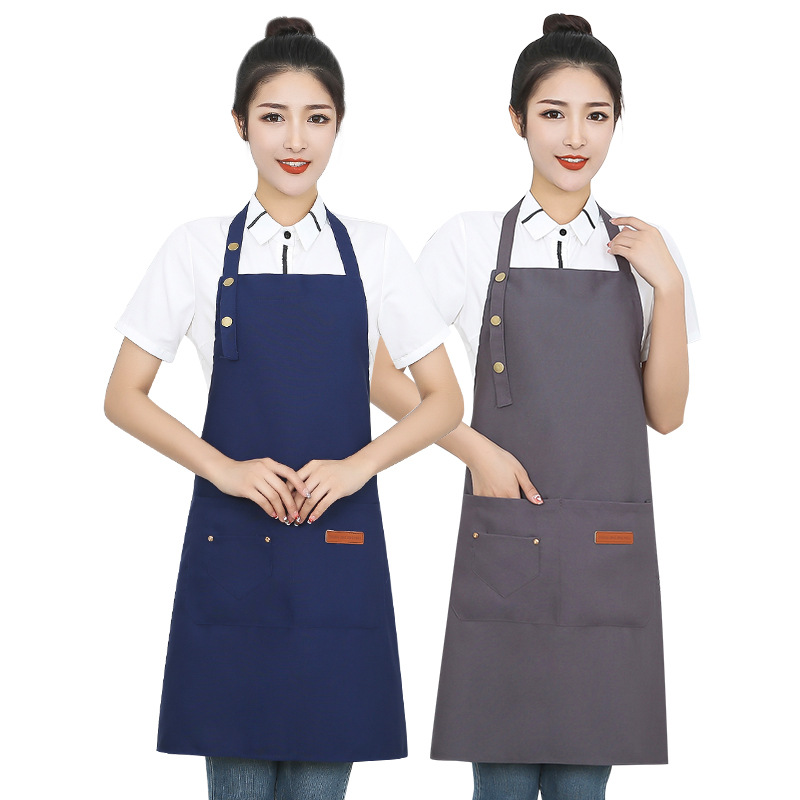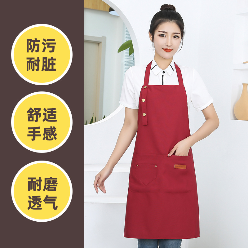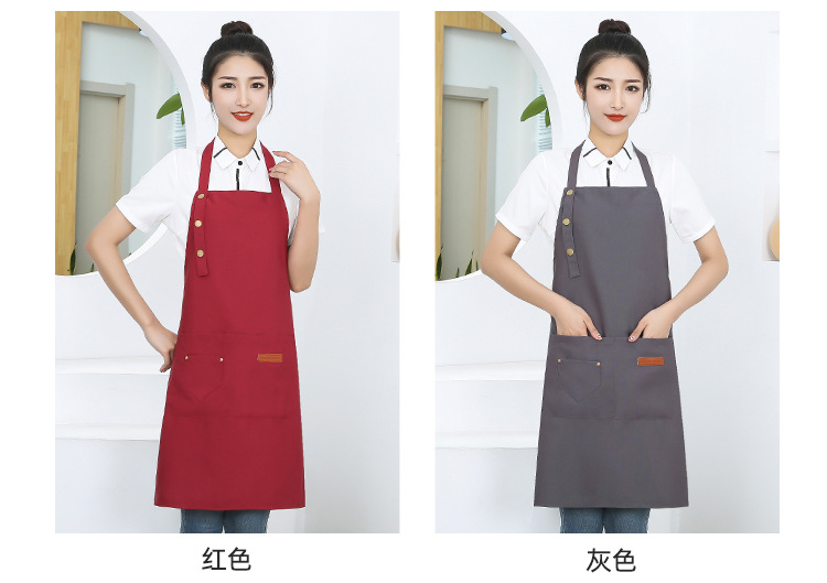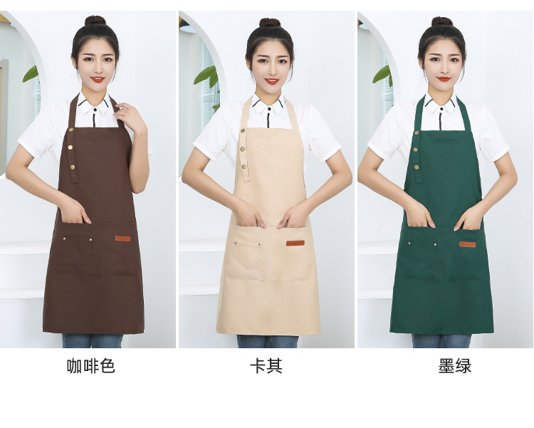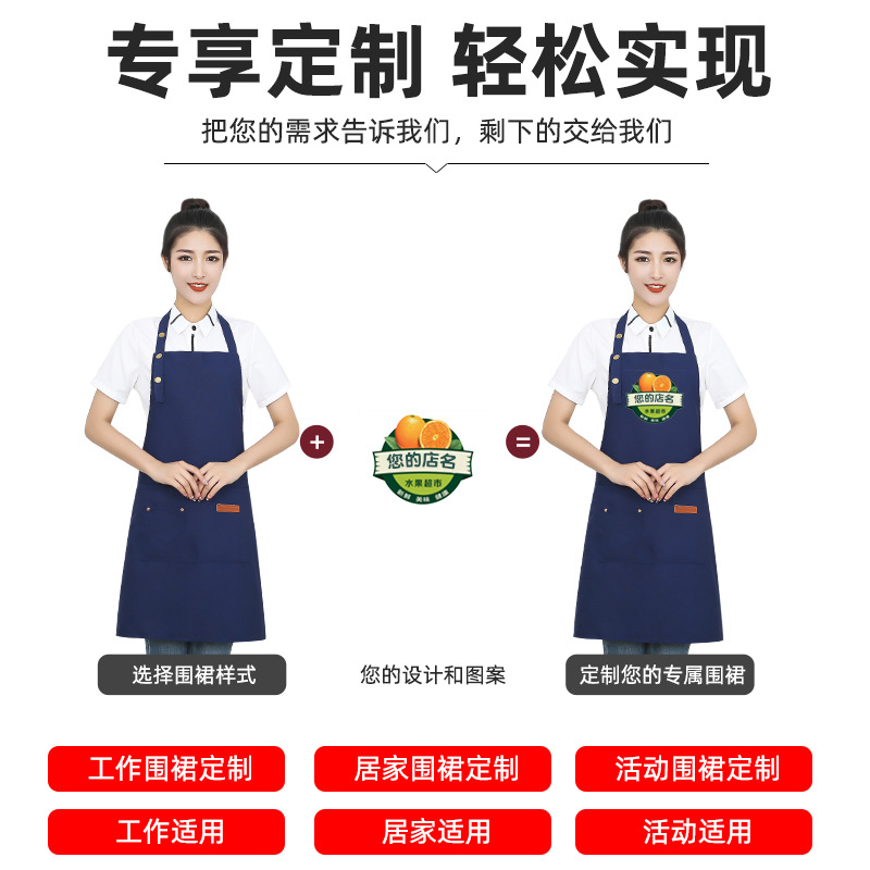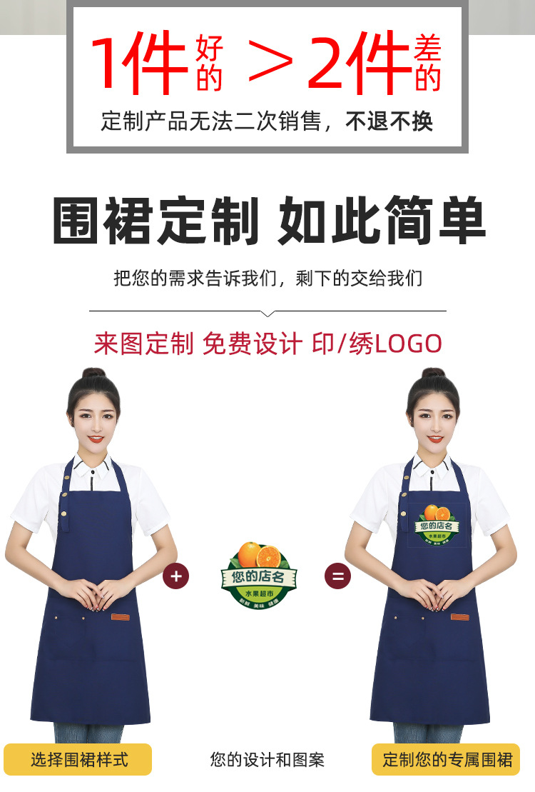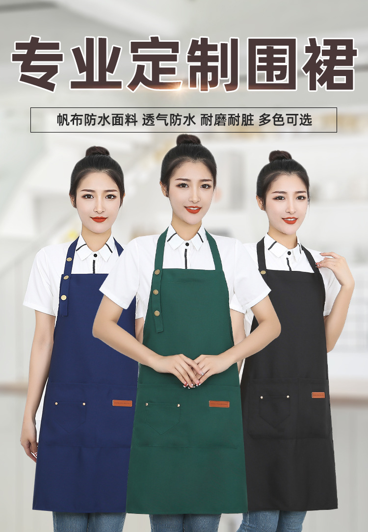 帆布新款防水围裙logo定制餐厅花店服务员可调节围裙工作服印字