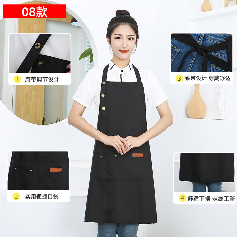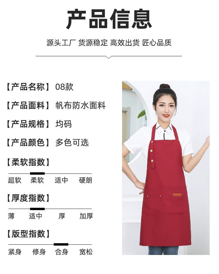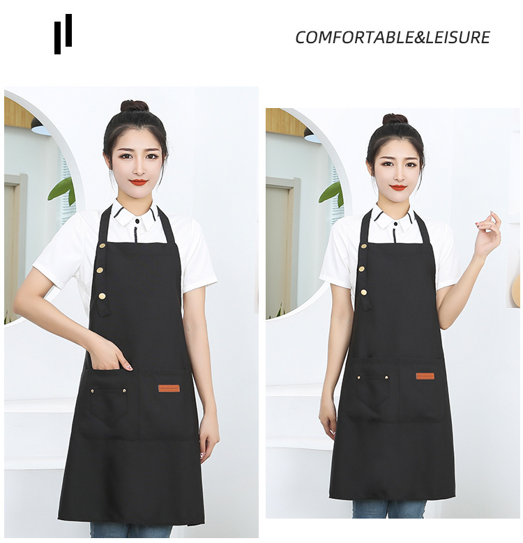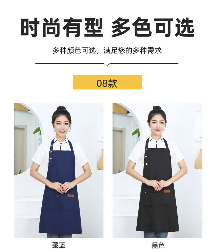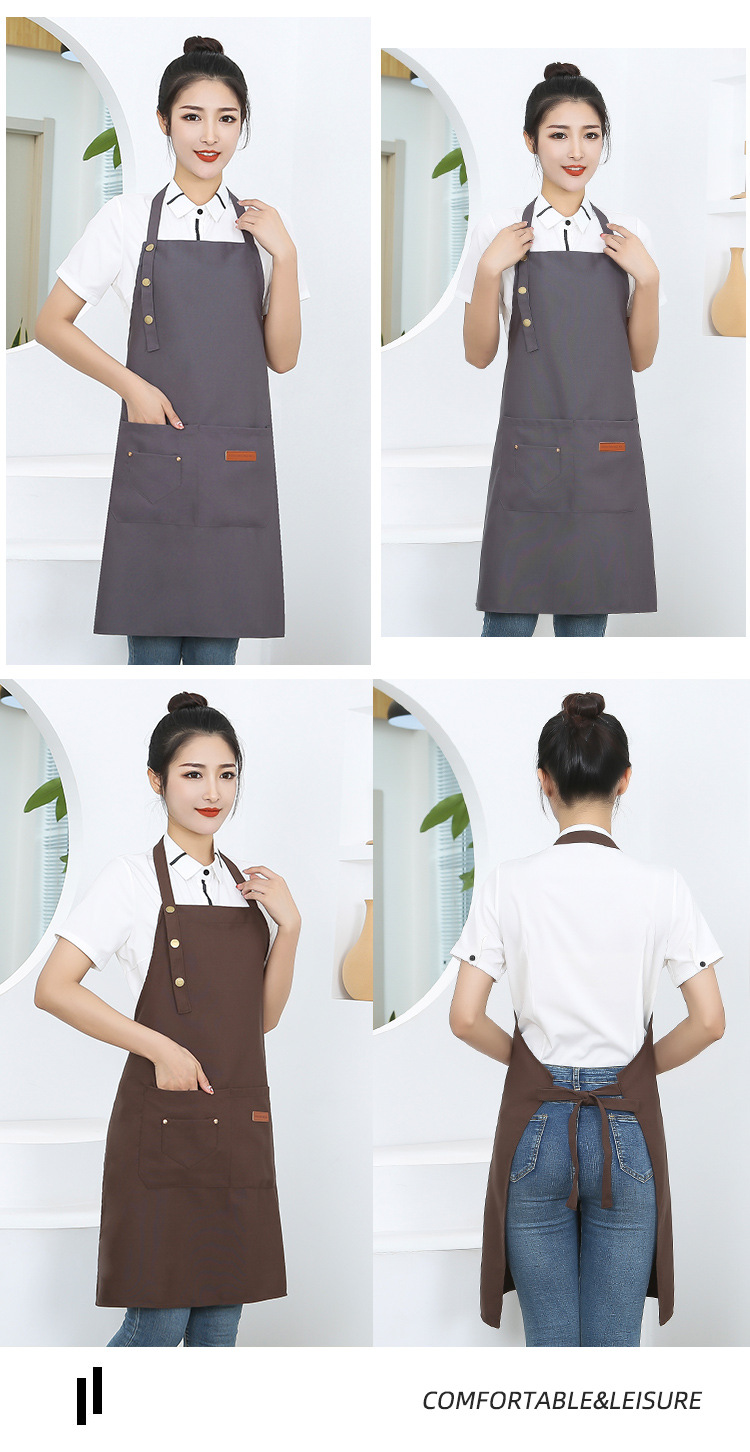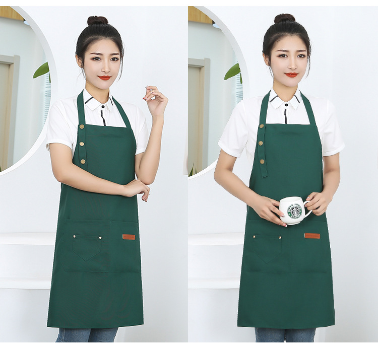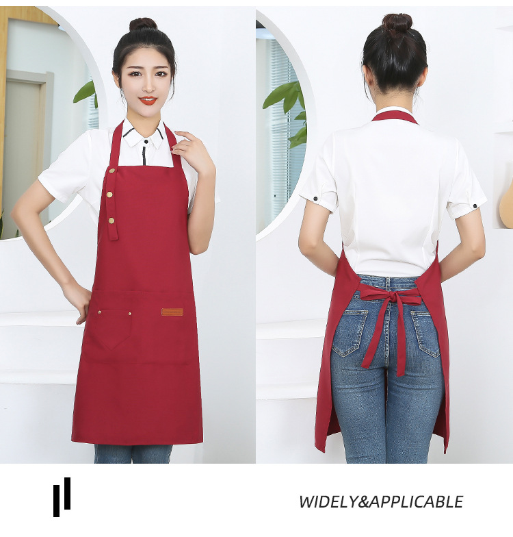 帆布新款防水围裙logo定制餐厅花店服务员可调节围裙工作服印字