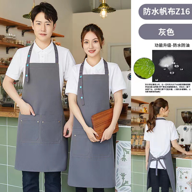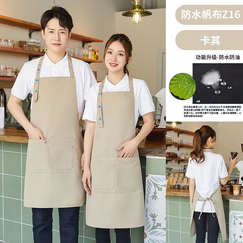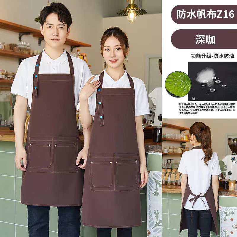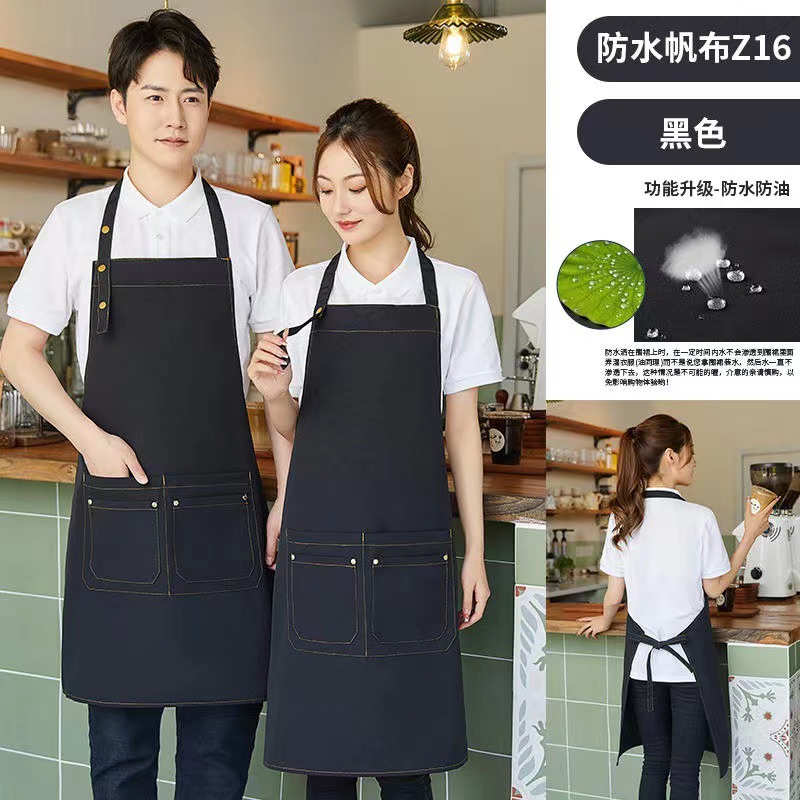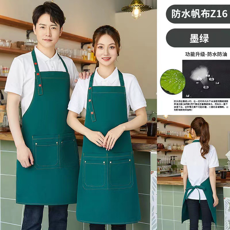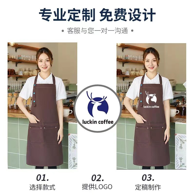 新款网红防水帆布围裙来图印字logo餐饮专用咖啡奶茶店花店工作服