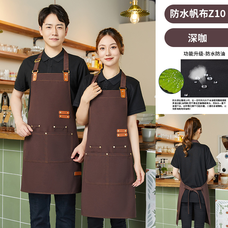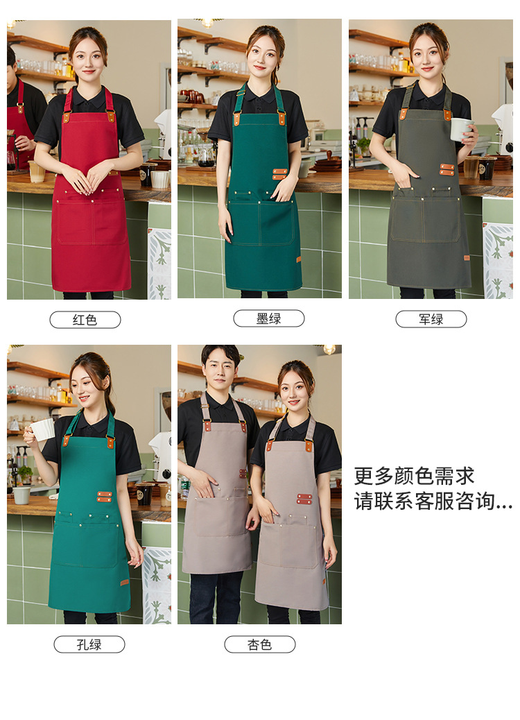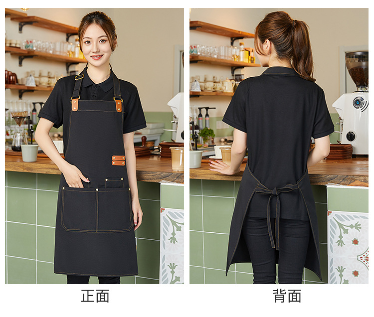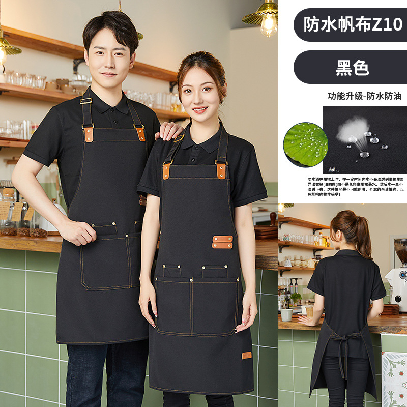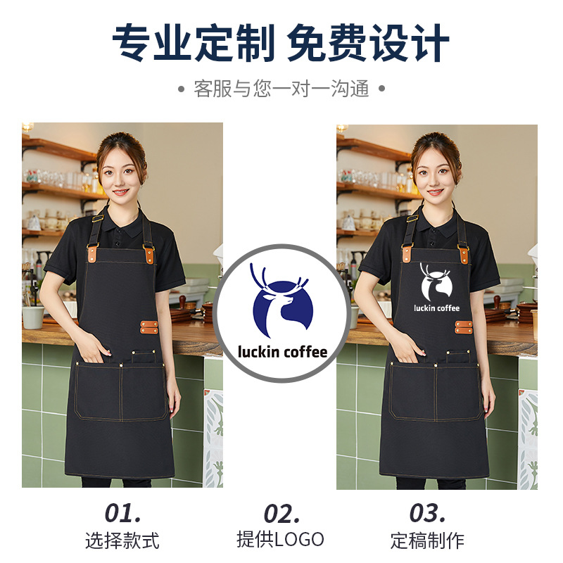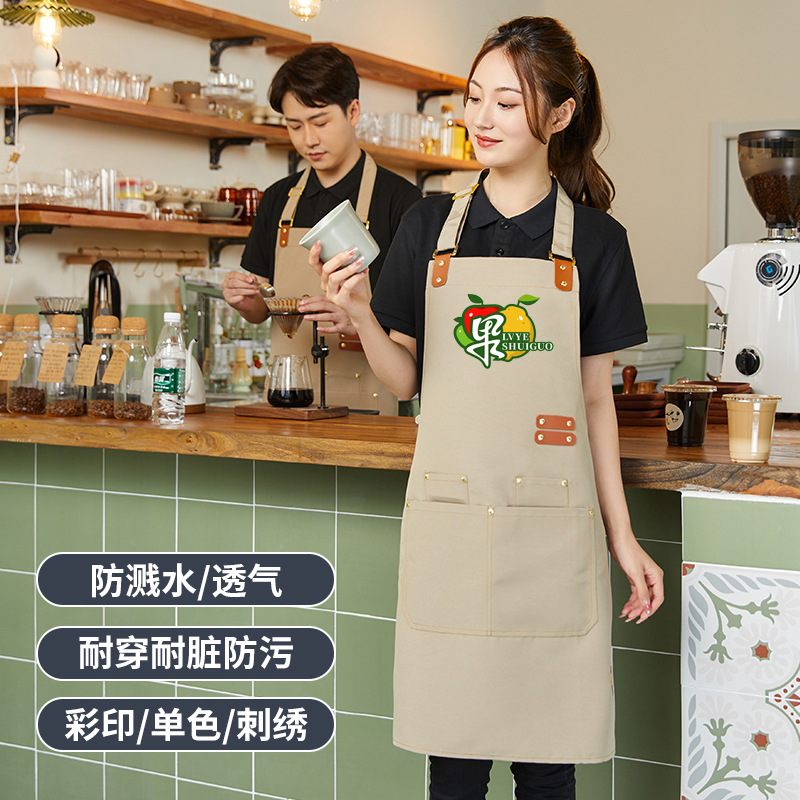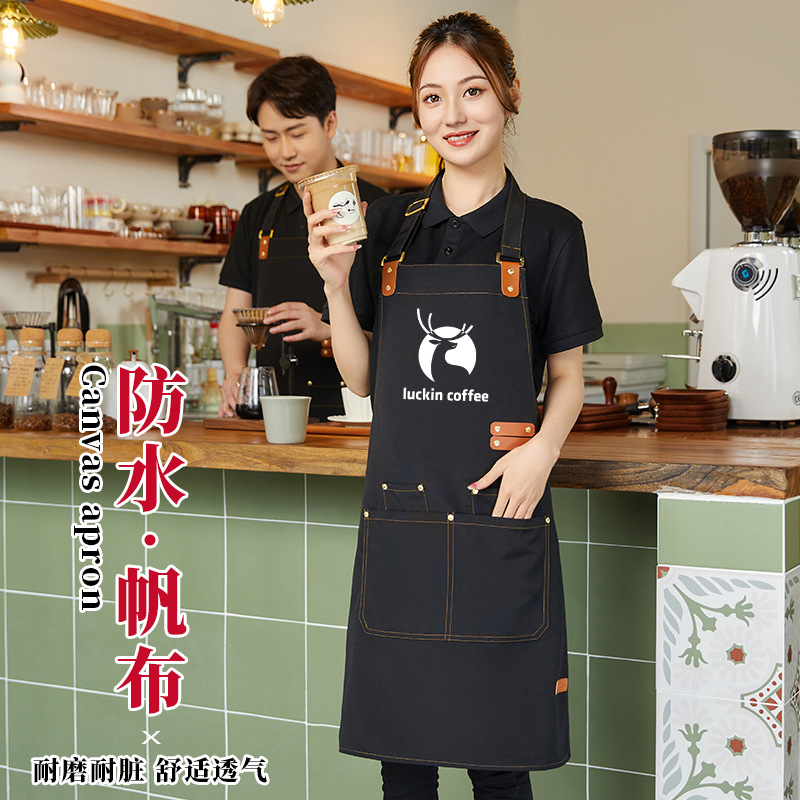 新款帆布围裙餐饮专用刺绣logo印字咖啡奶茶店服务员工作服女围腰