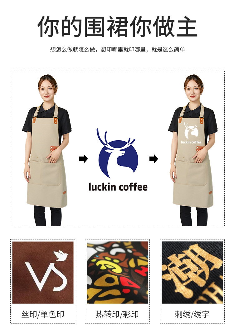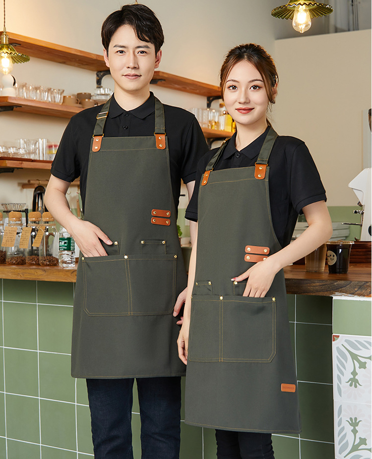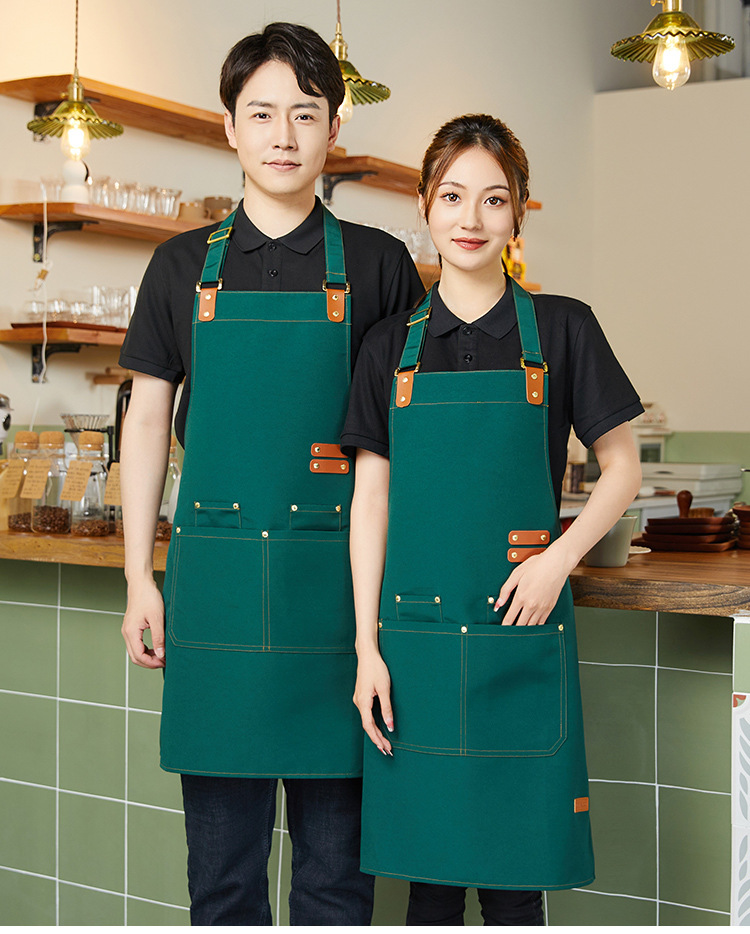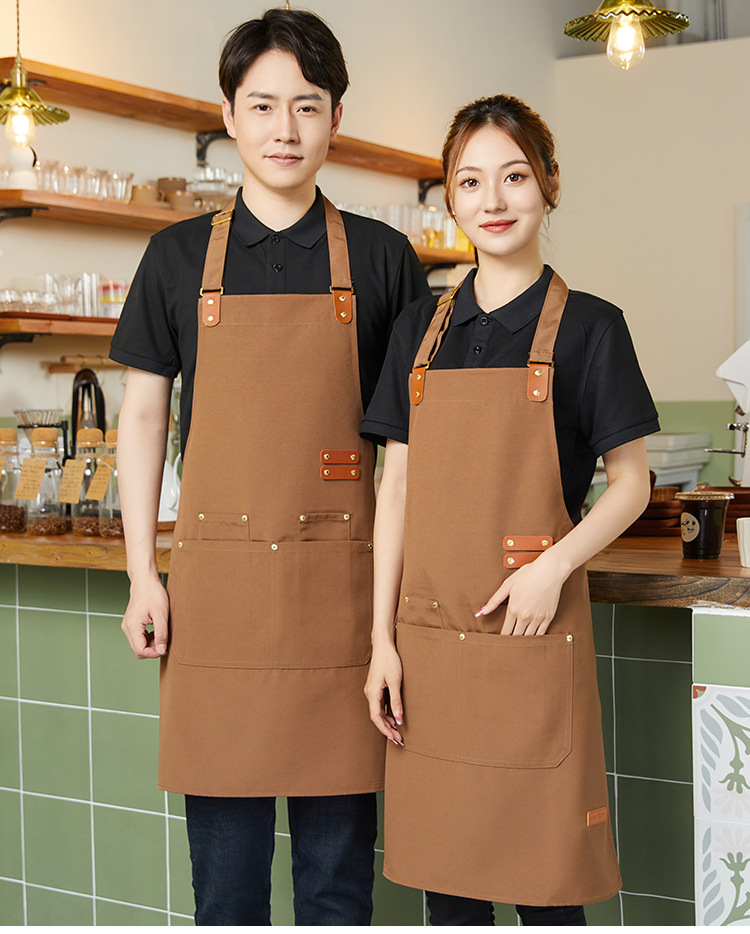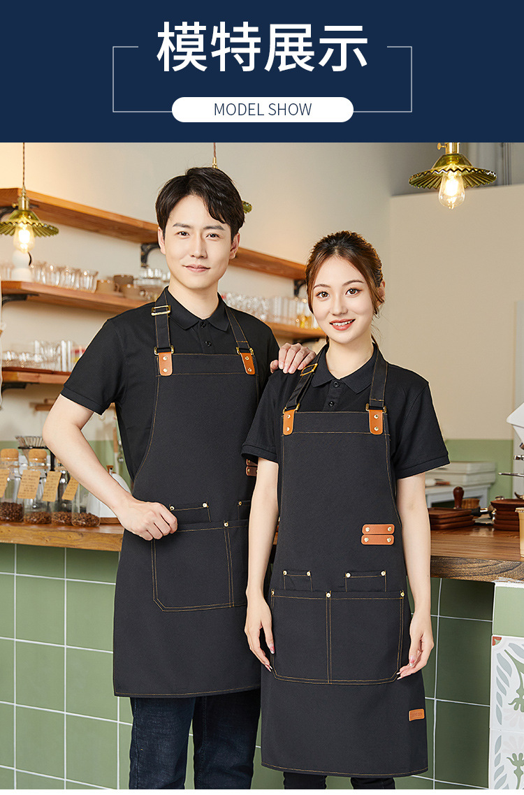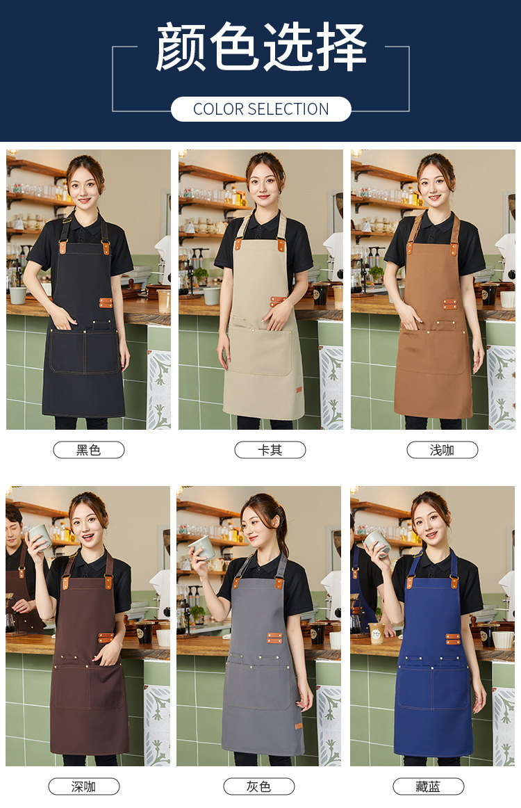 新款帆布围裙餐饮专用刺绣logo印字咖啡奶茶店服务员工作服女围腰