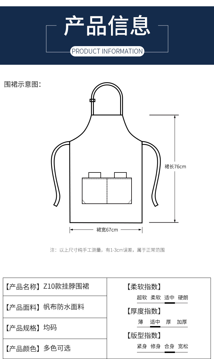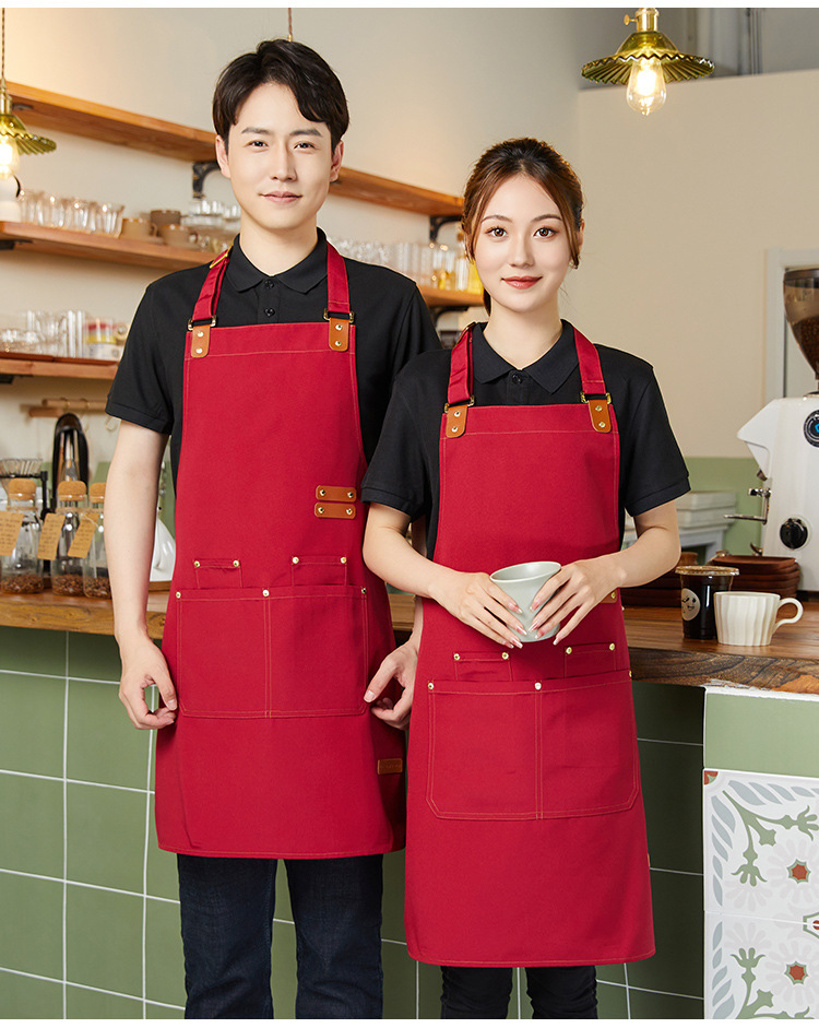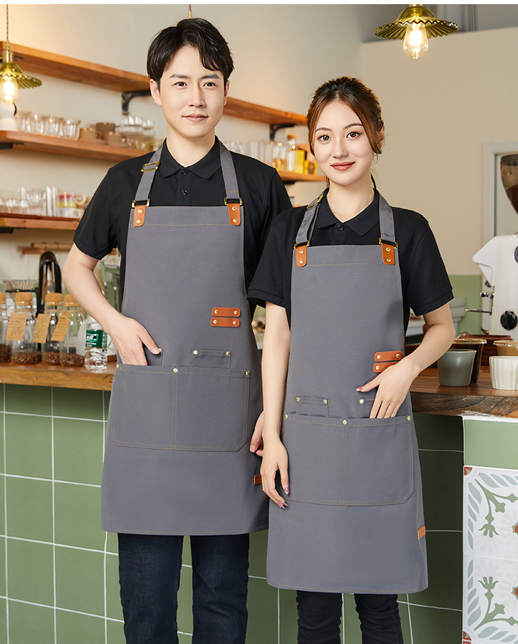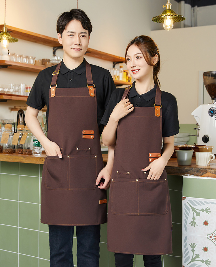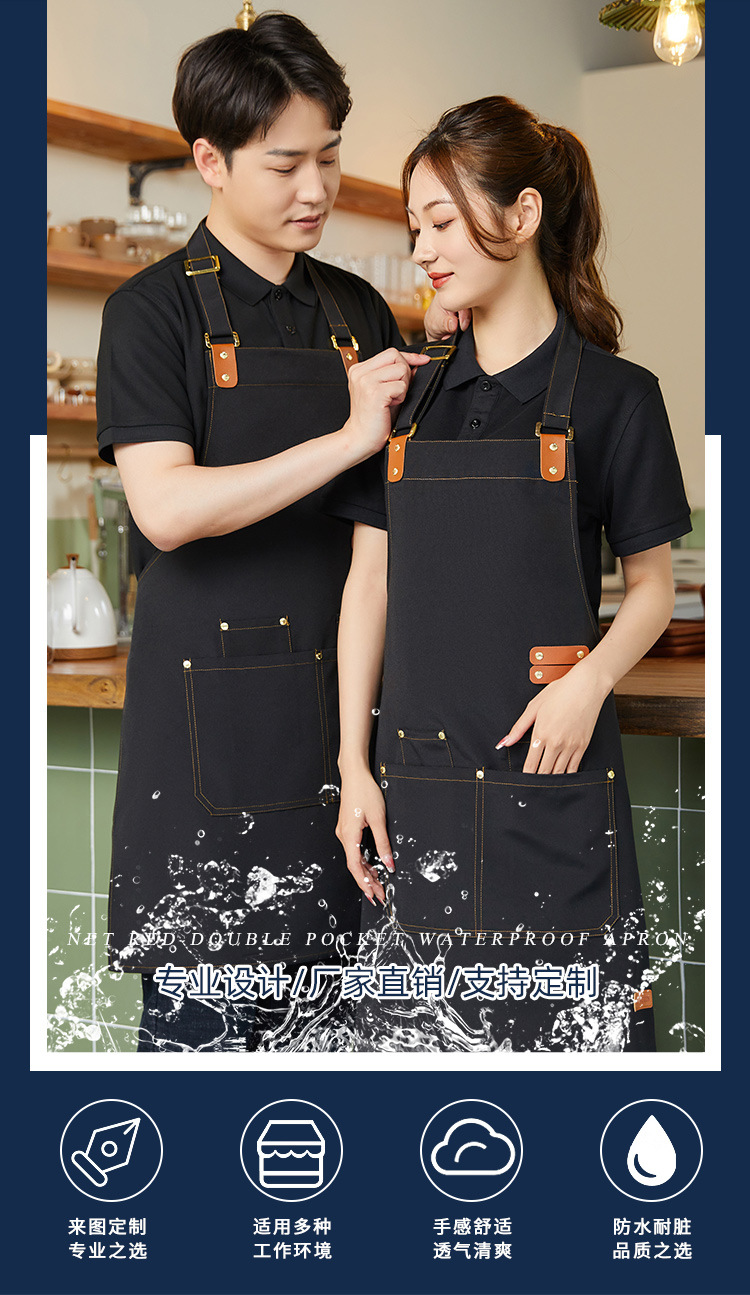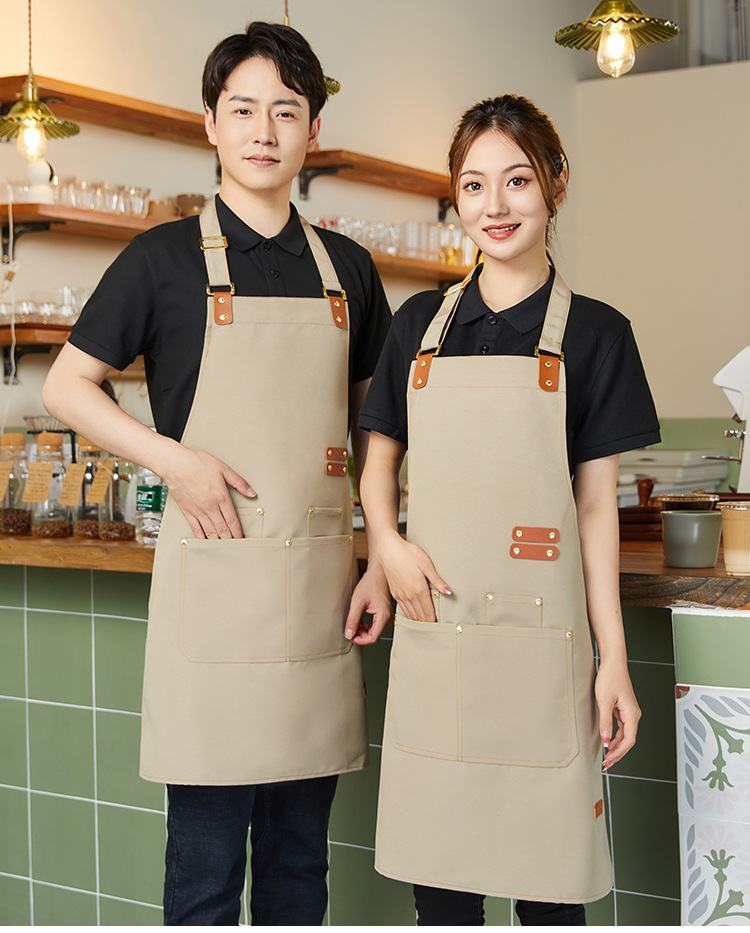 新款帆布围裙餐饮专用刺绣logo印字咖啡奶茶店服务员工作服女围腰