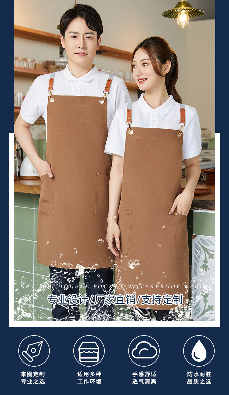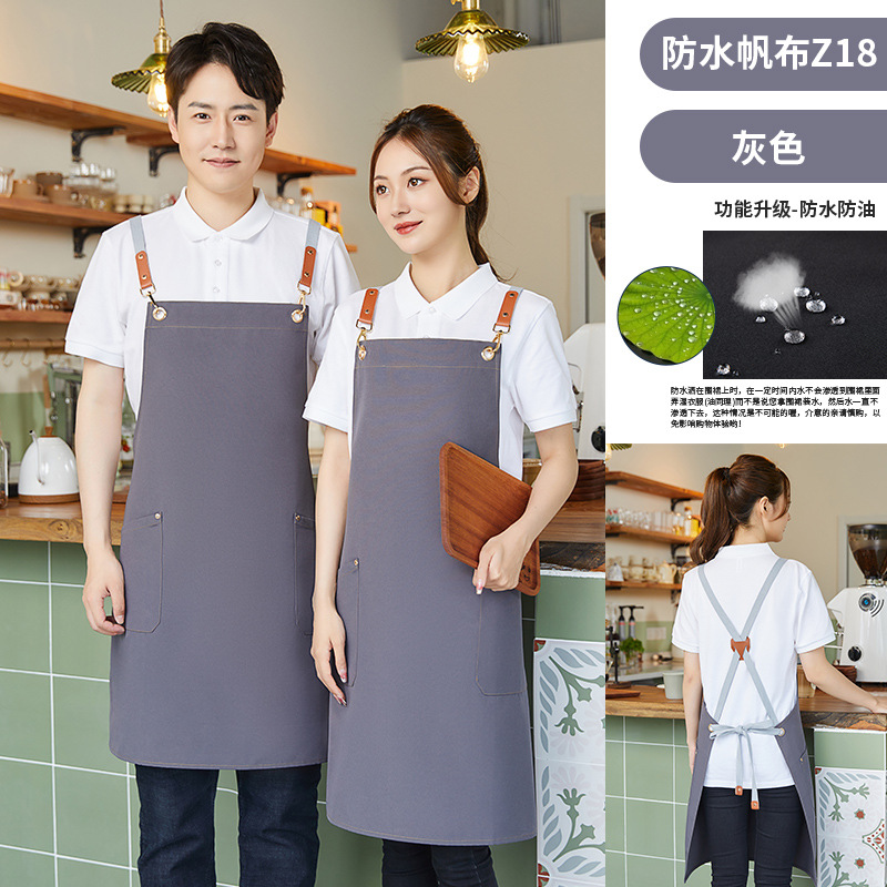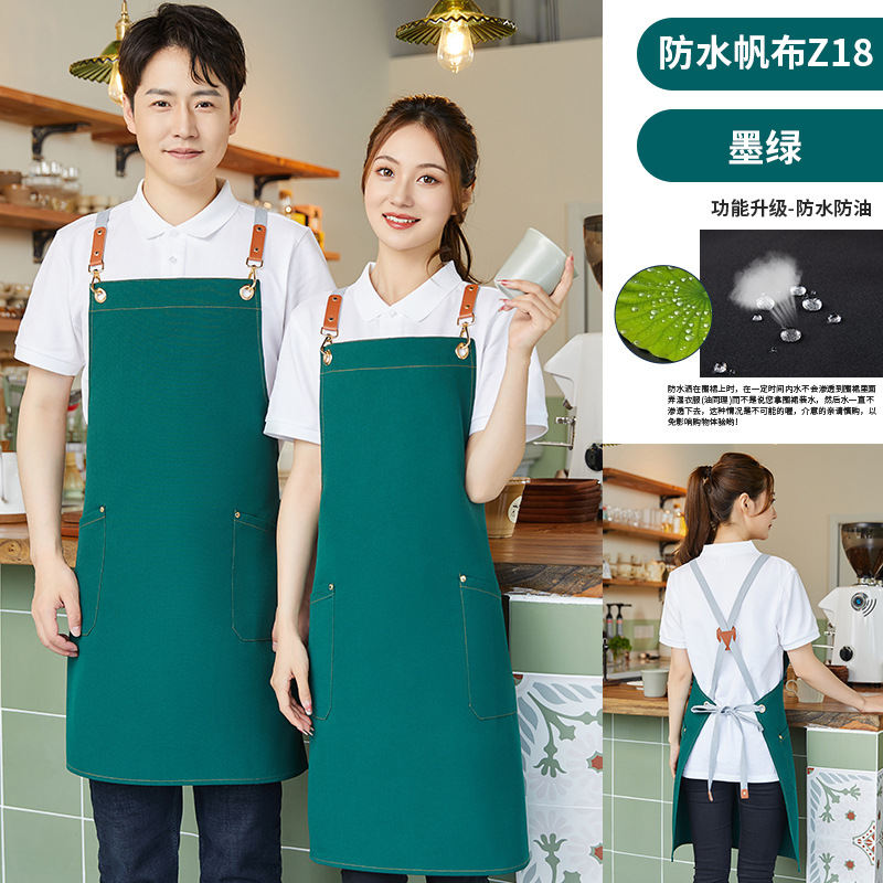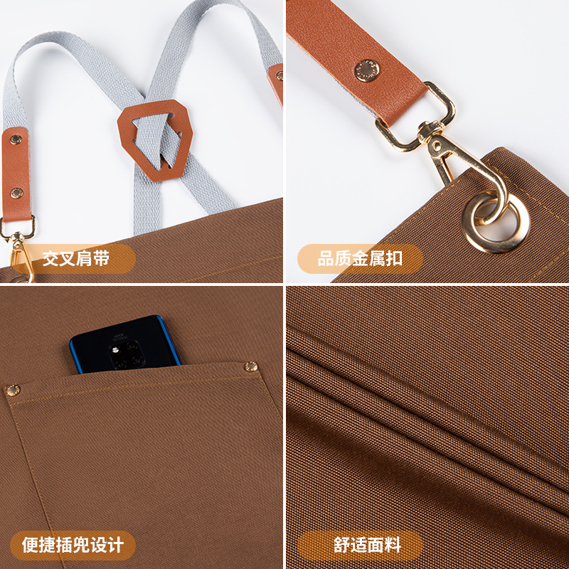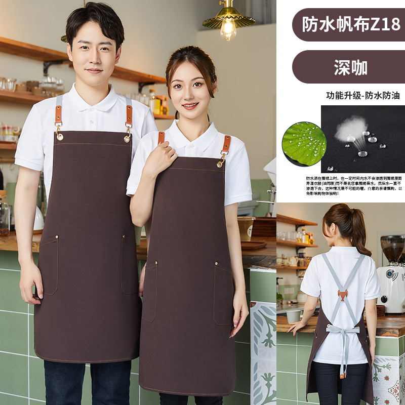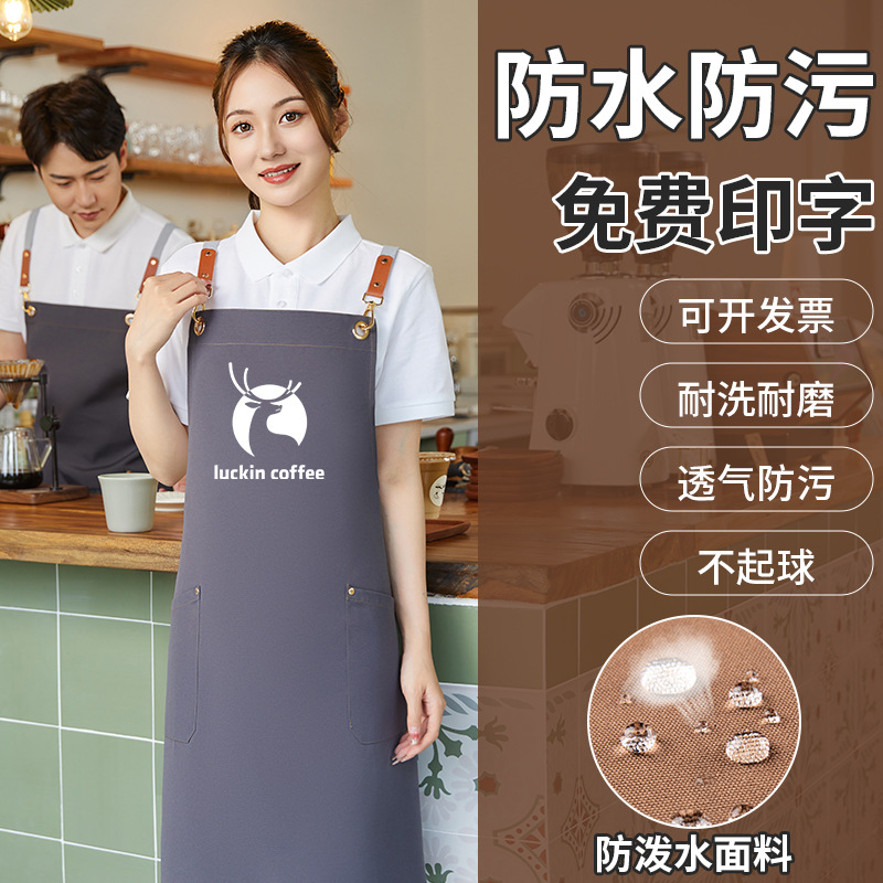 防水帆布围裙印LOGO咖啡店奶茶店咖啡师吧台咖啡师工作服印字绣字