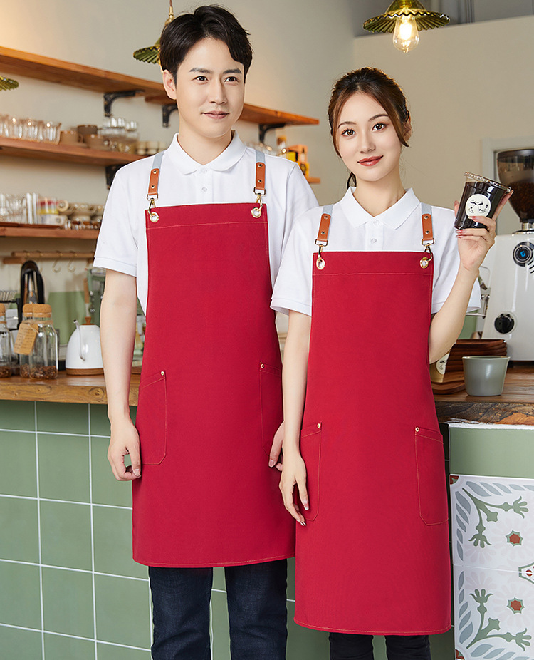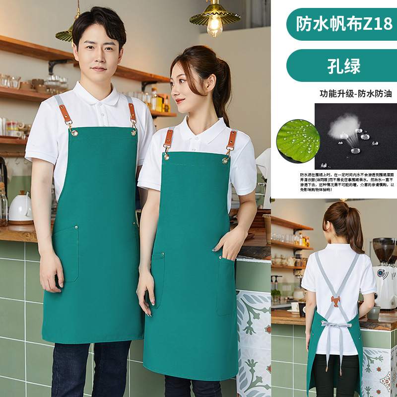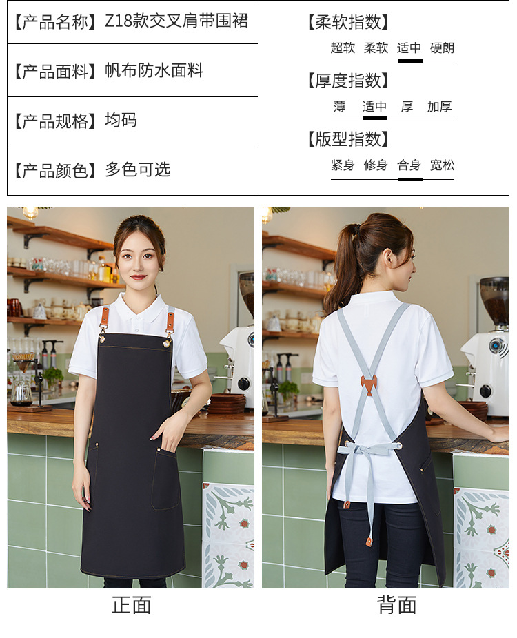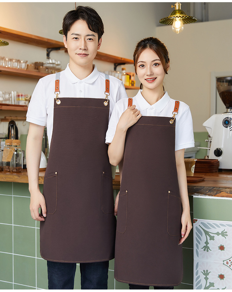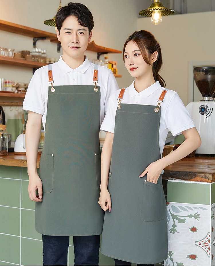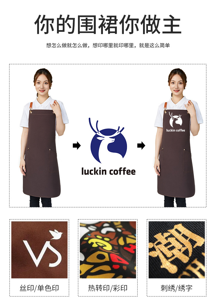 防水帆布围裙印LOGO咖啡店奶茶店咖啡师吧台咖啡师工作服印字绣字