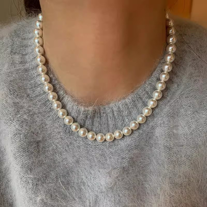 饰品施家白色小米珠锁骨链简约经典款颈链爆款磁吸扣珍珠项链女