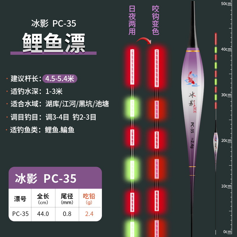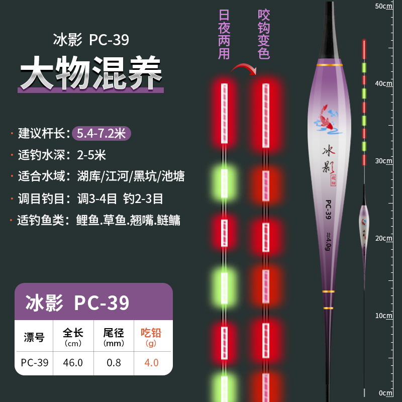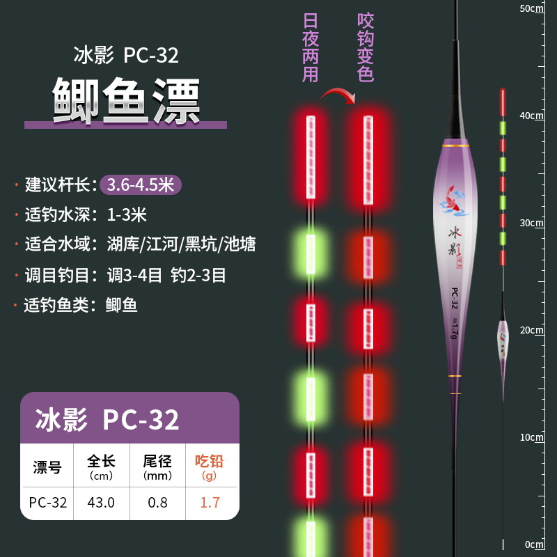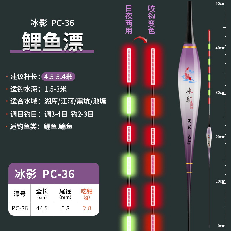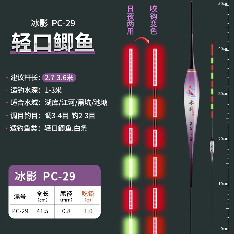 0.8mm极细尾咬钩变色夜光漂316高灵敏硬尾电子漂超细浮漂鲫鱼漂