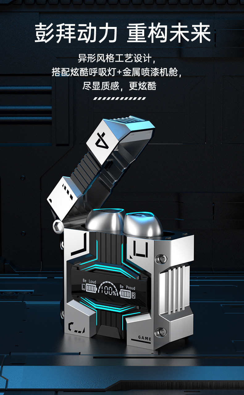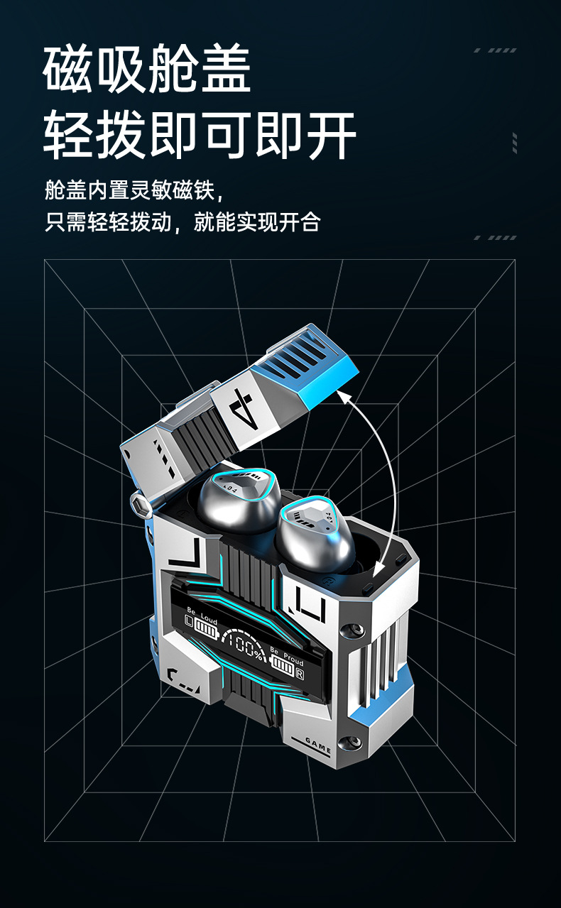 新款M25tws无线蓝牙耳机跨境私模M45金属太空舱双耳游戏无延迟