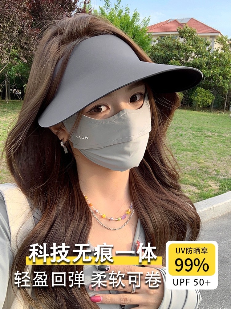 无痕一体防晒帽子女夏季遮阳帽防紫外线大檐骑行运动空顶太阳帽女