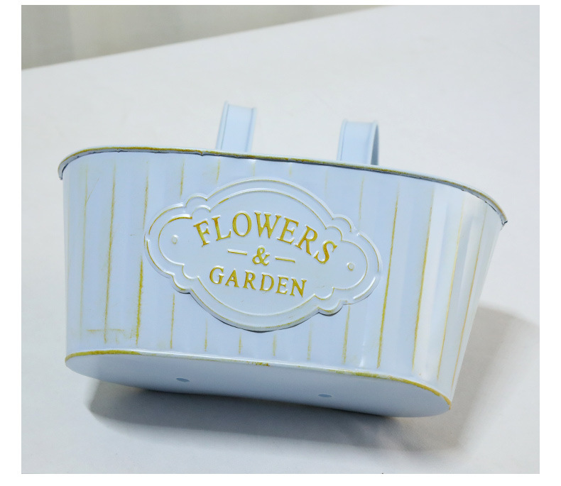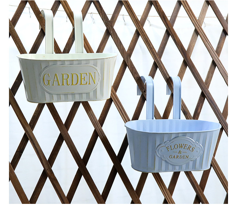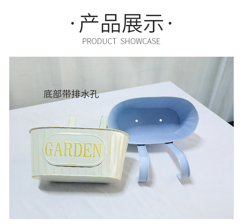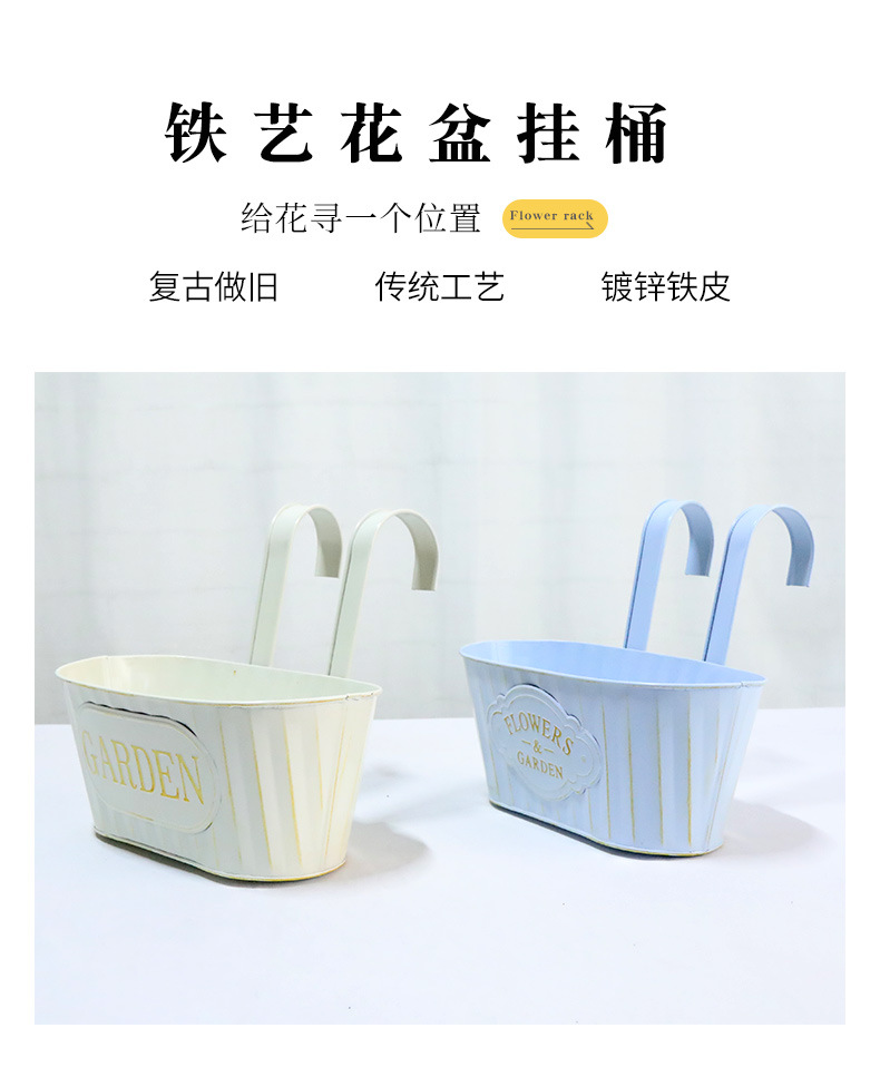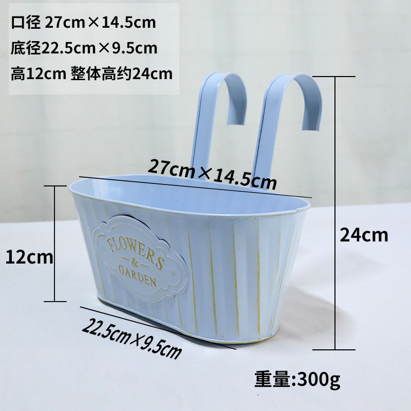 跨境 新款园艺椭圆挂桶花盆 双挂钩可拆卸 阳台悬挂吊桶 铁艺花盆