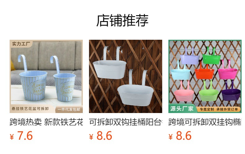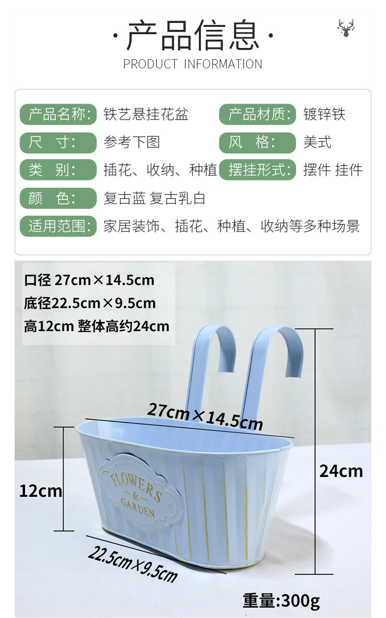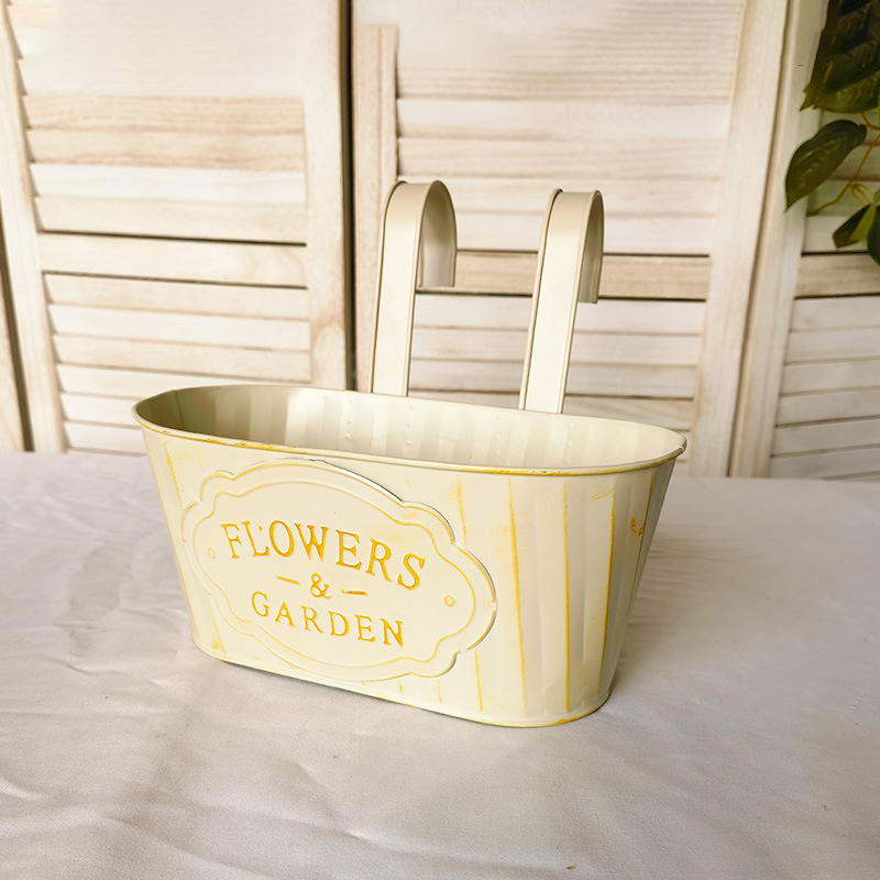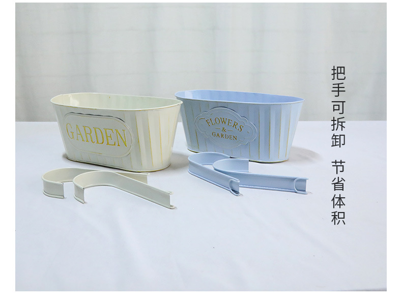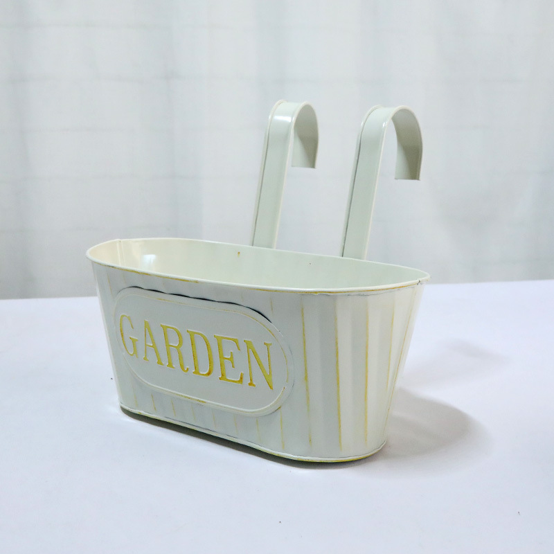 跨境 新款园艺椭圆挂桶花盆 双挂钩可拆卸 阳台悬挂吊桶 铁艺花盆
