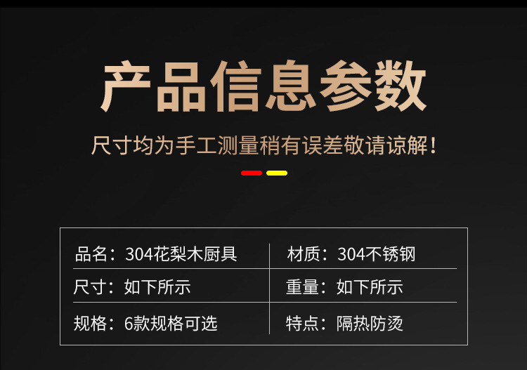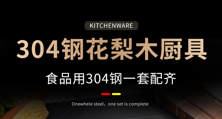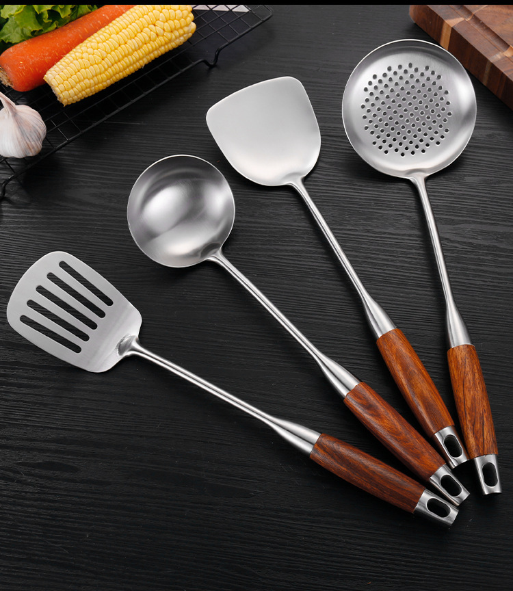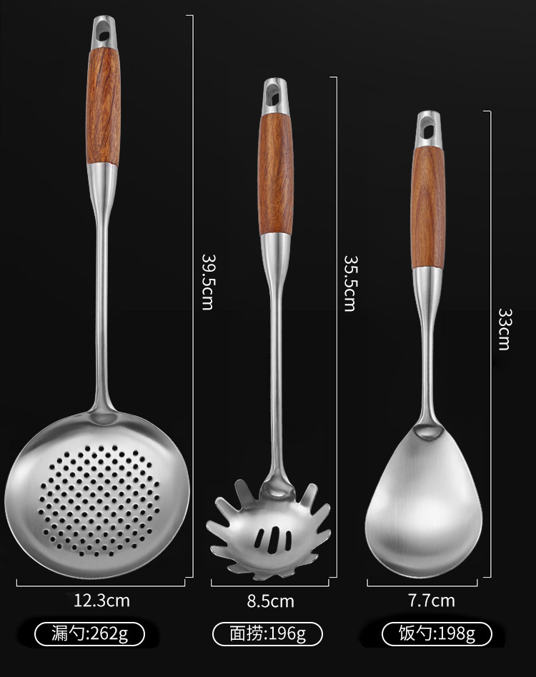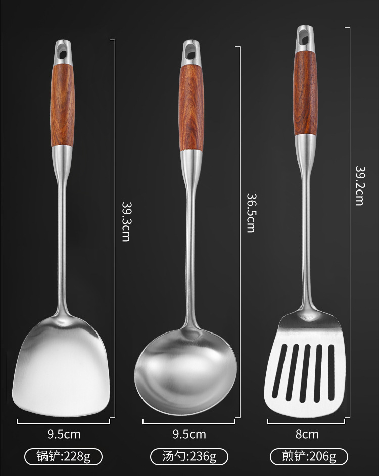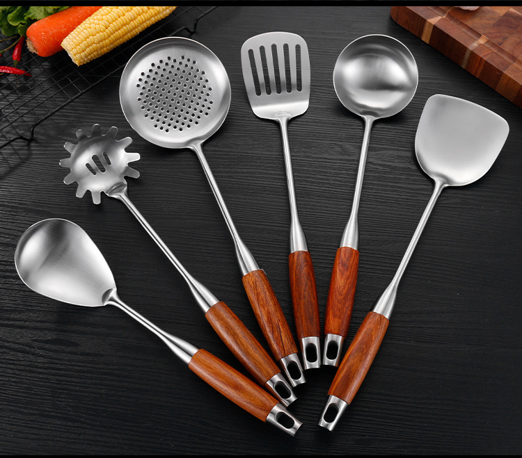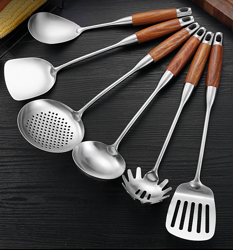 304不锈钢厨具花梨木柄锅铲炒菜汤勺煎铲漏勺厨房用品烹饪套装