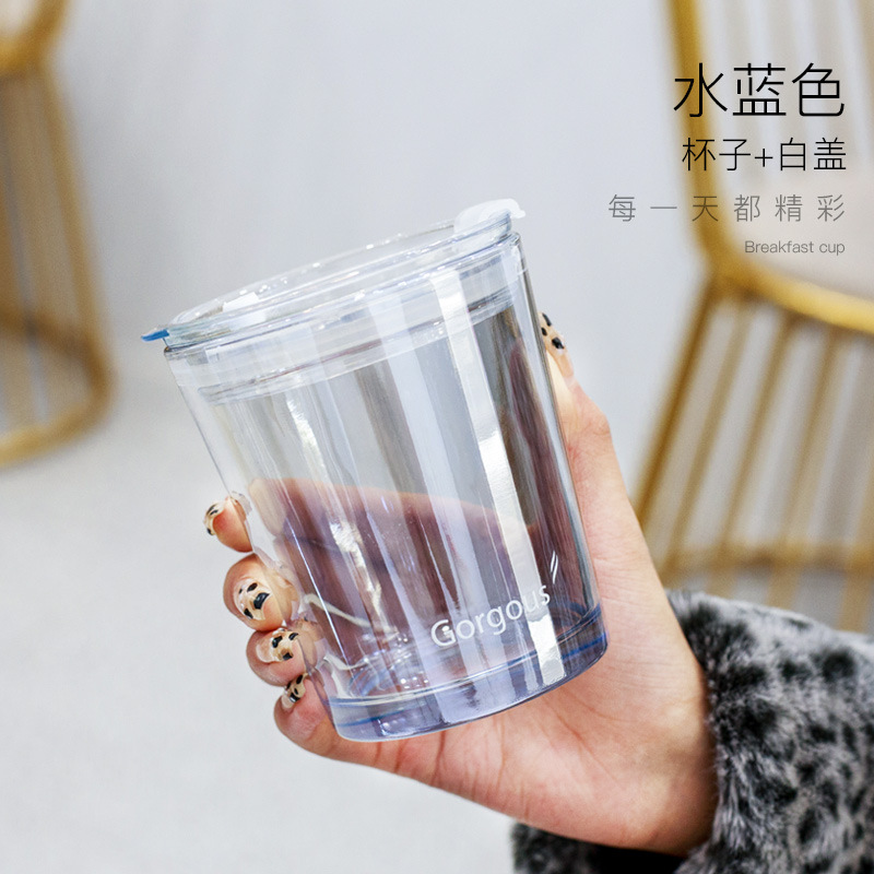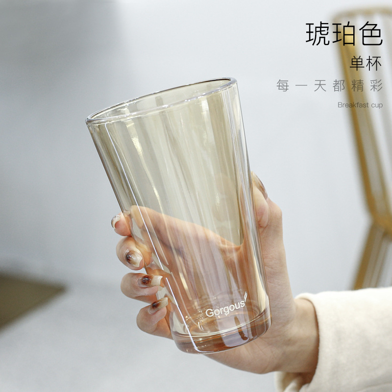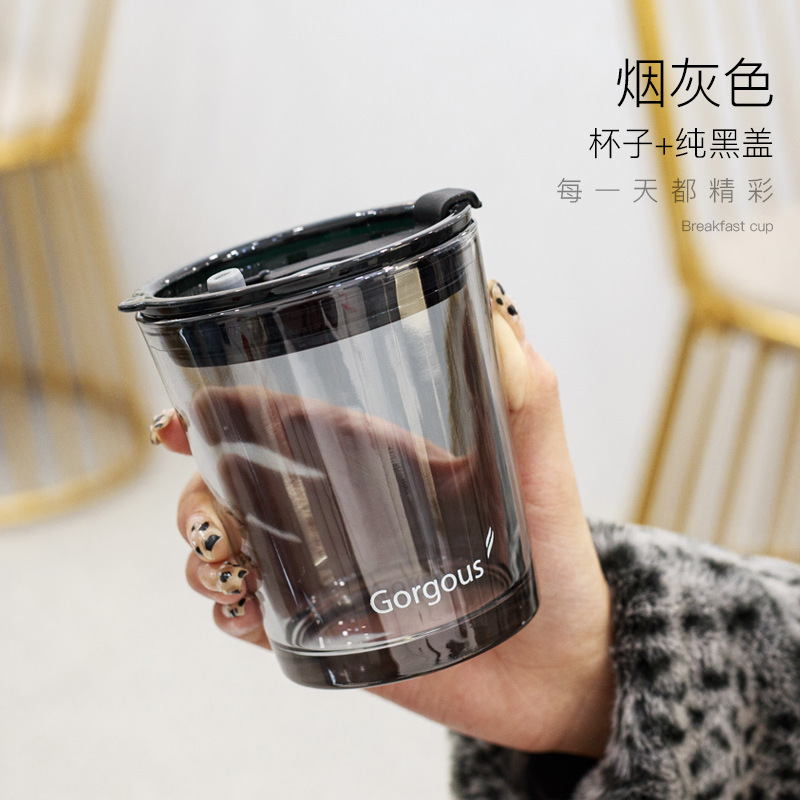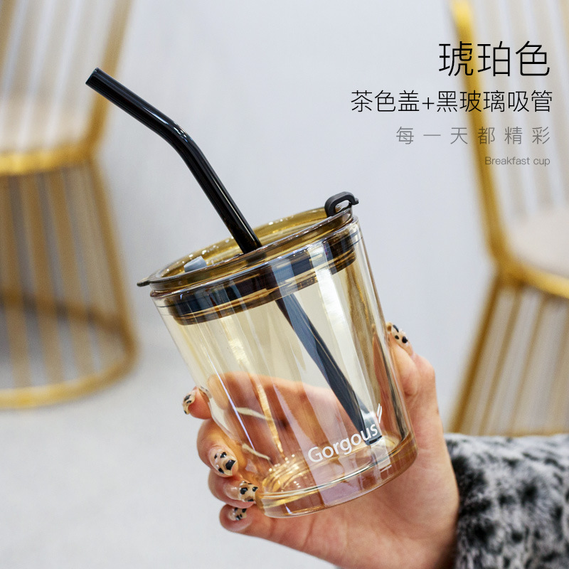 北极吸管光玻璃杯简约带盖双饮奶茶杯水杯网红爆款随手咖啡杯批发