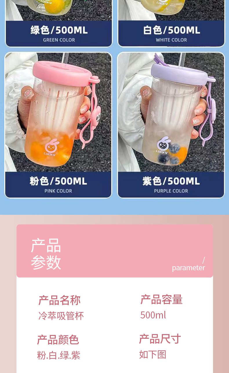 新款网红大眼仔女高颜值便携可爱双饮儿童吸管玻璃杯夏季情侣水杯