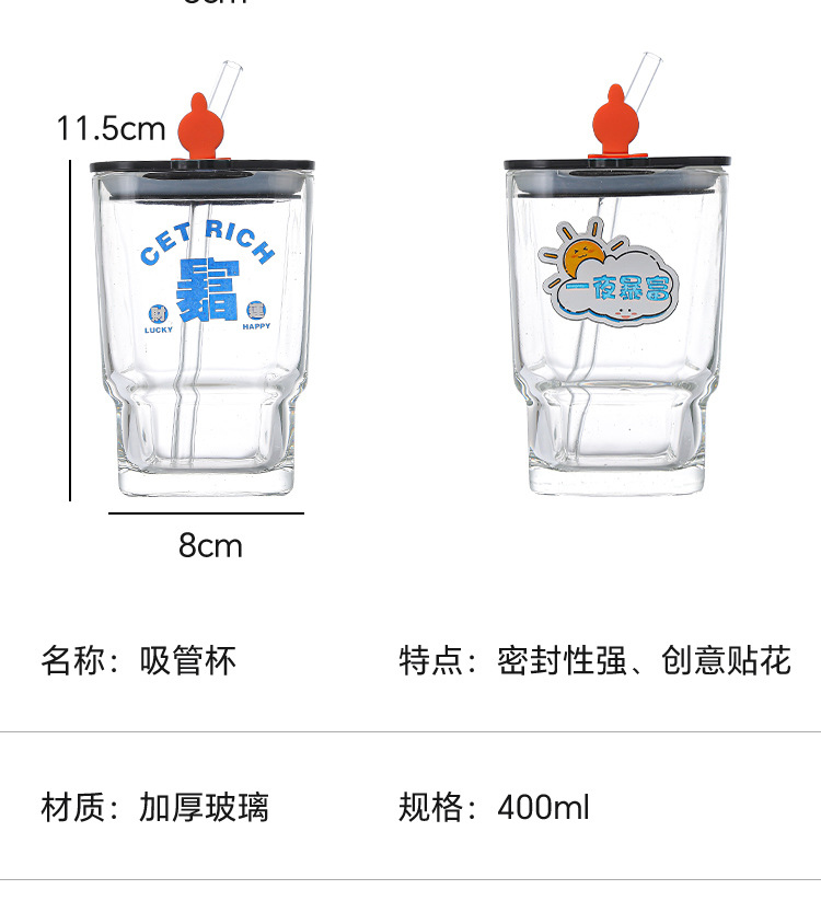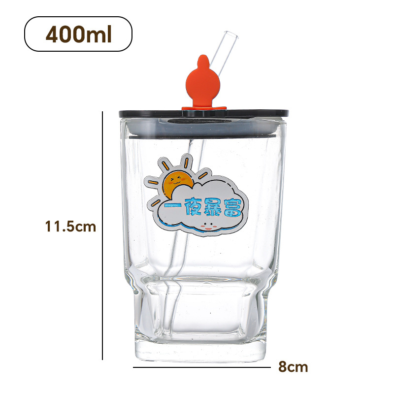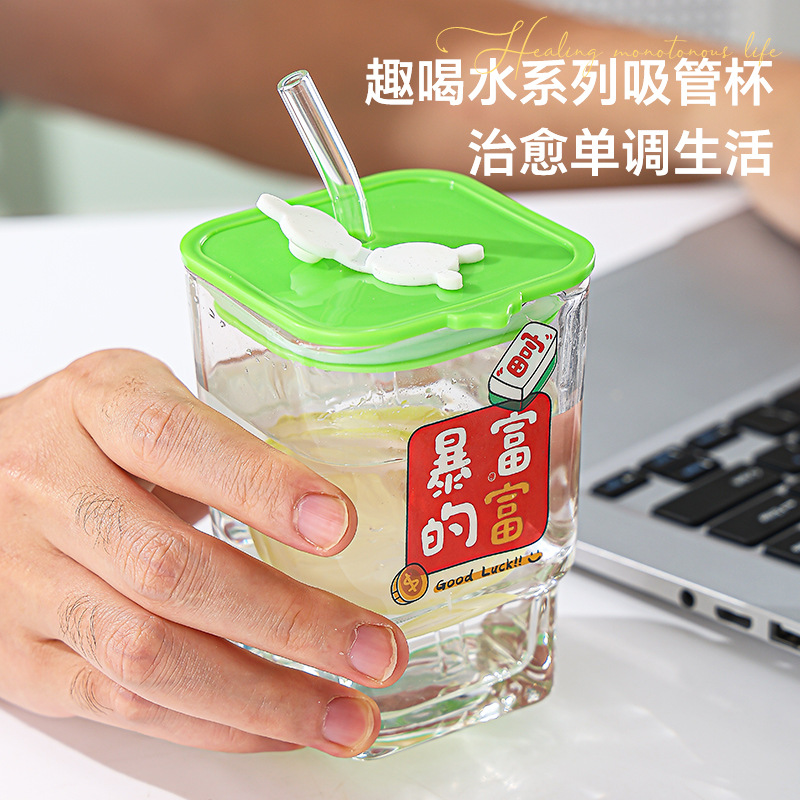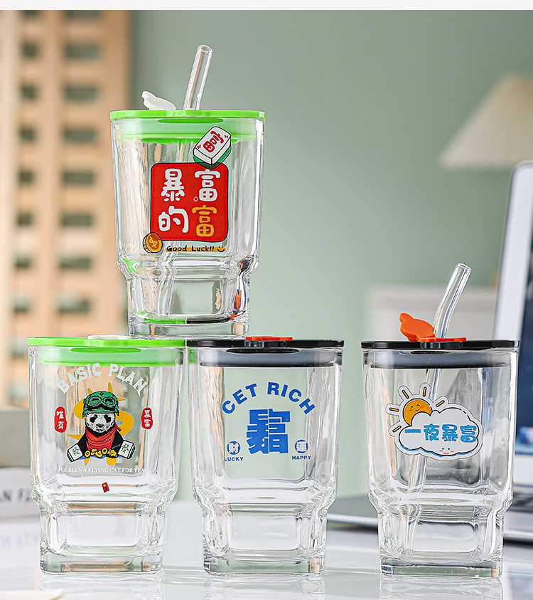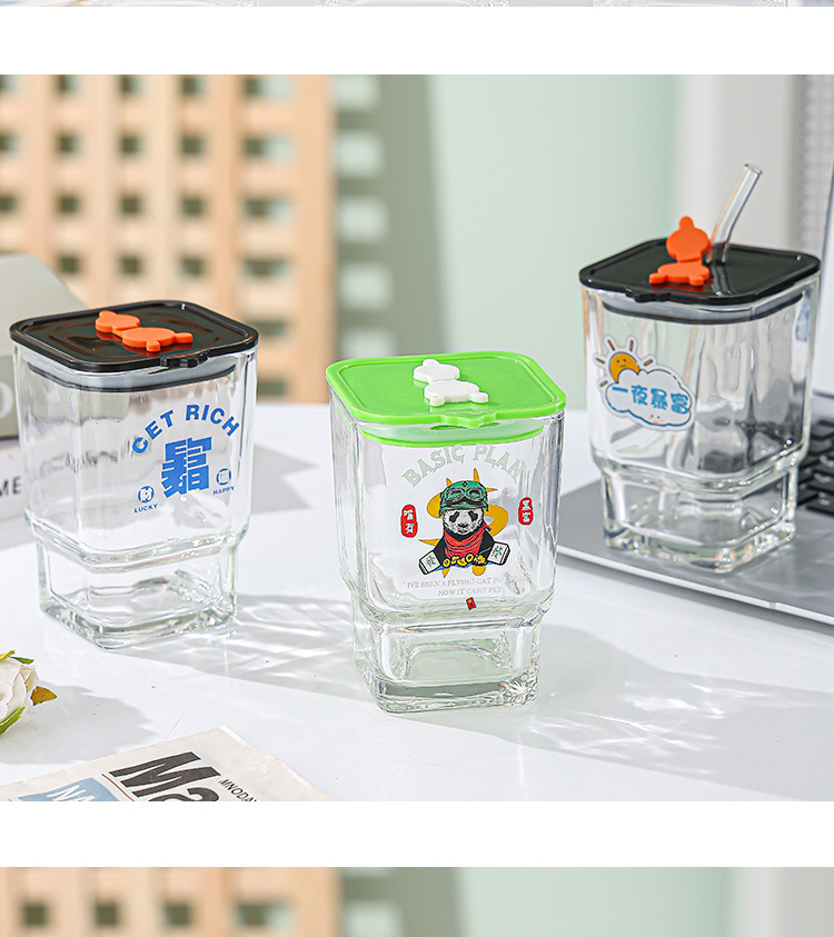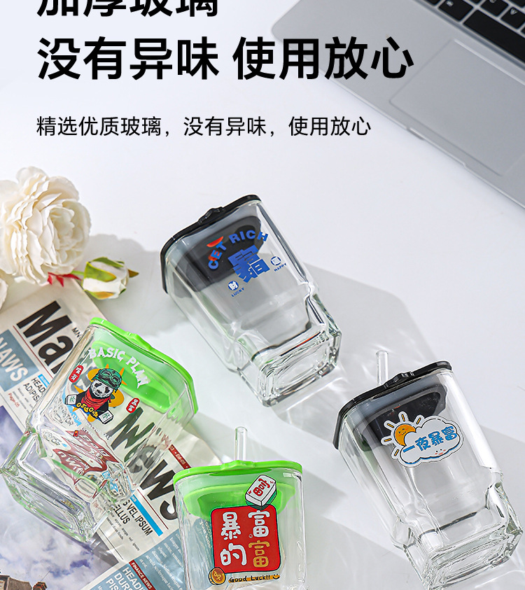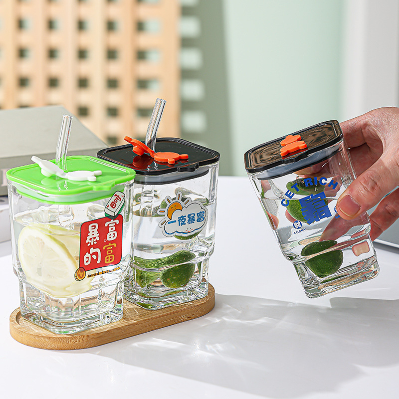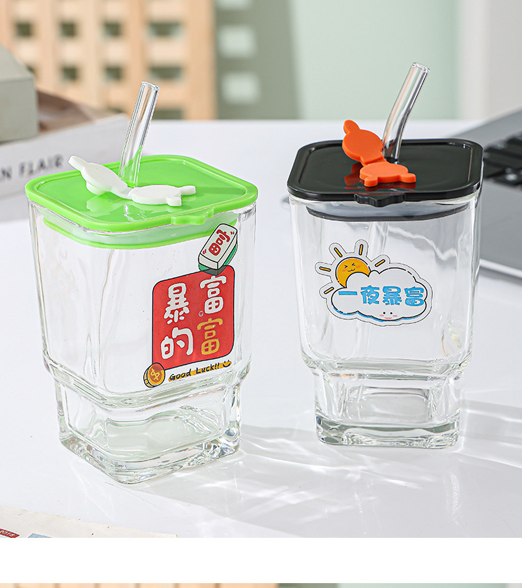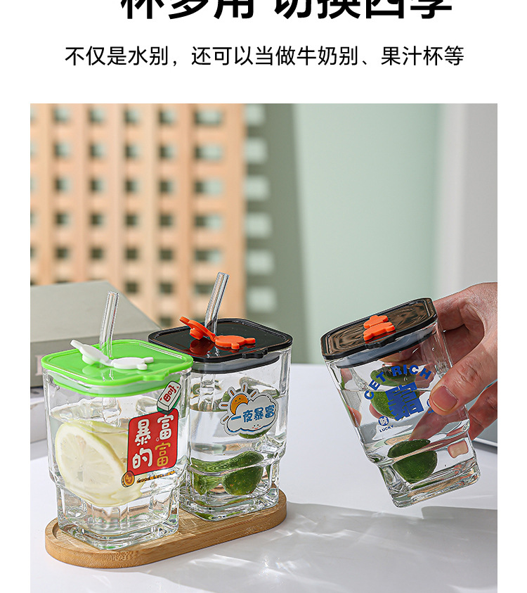 玻璃杯吸管带盖女生咖啡杯子水杯夏季可爱玻璃家用咖啡杯大容量
