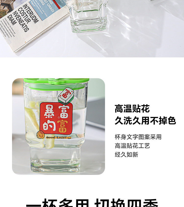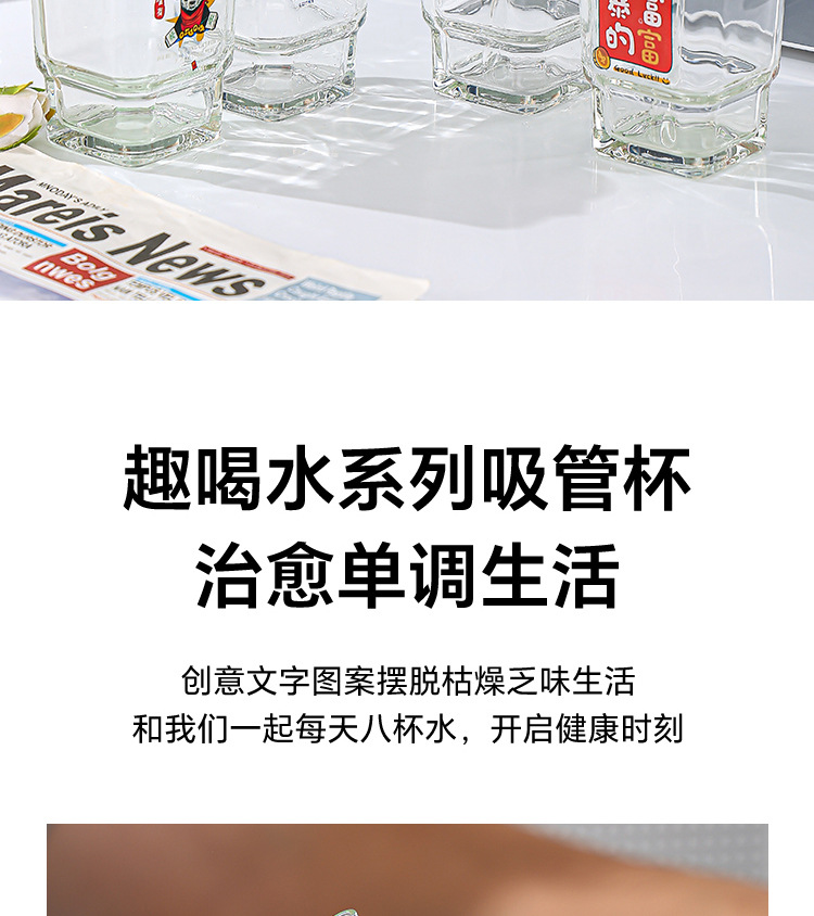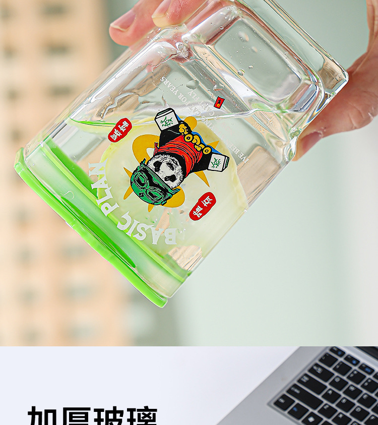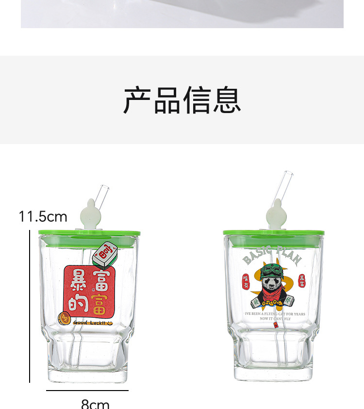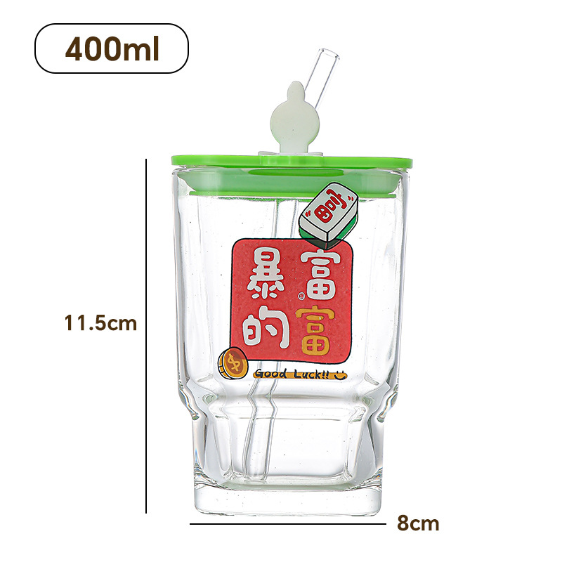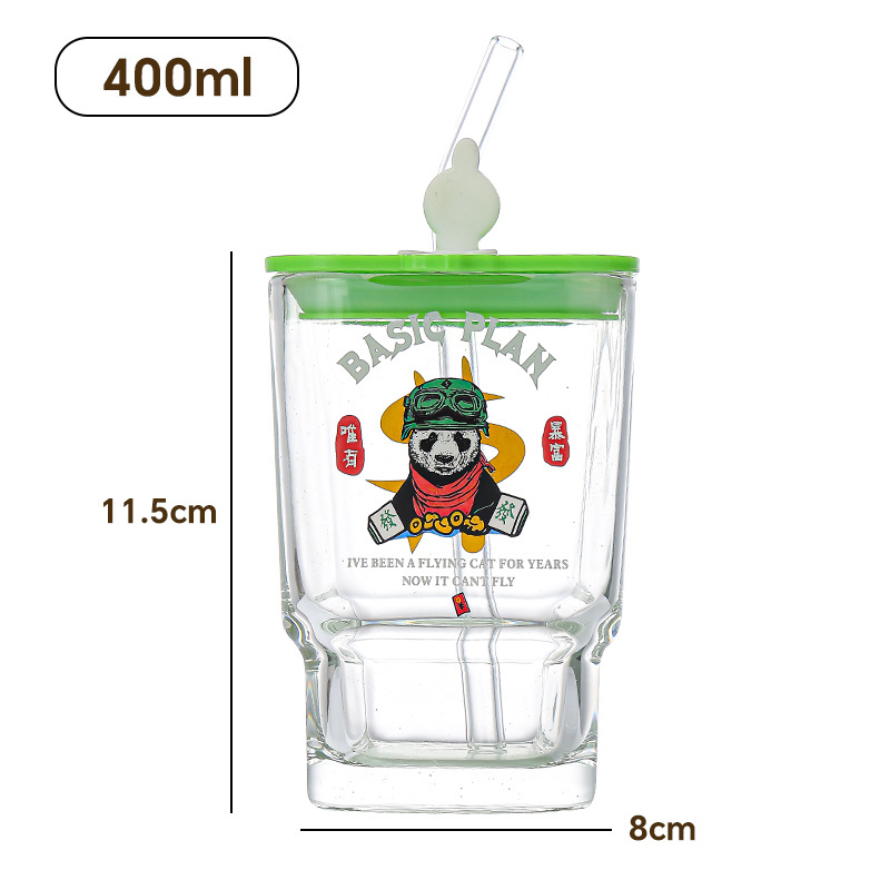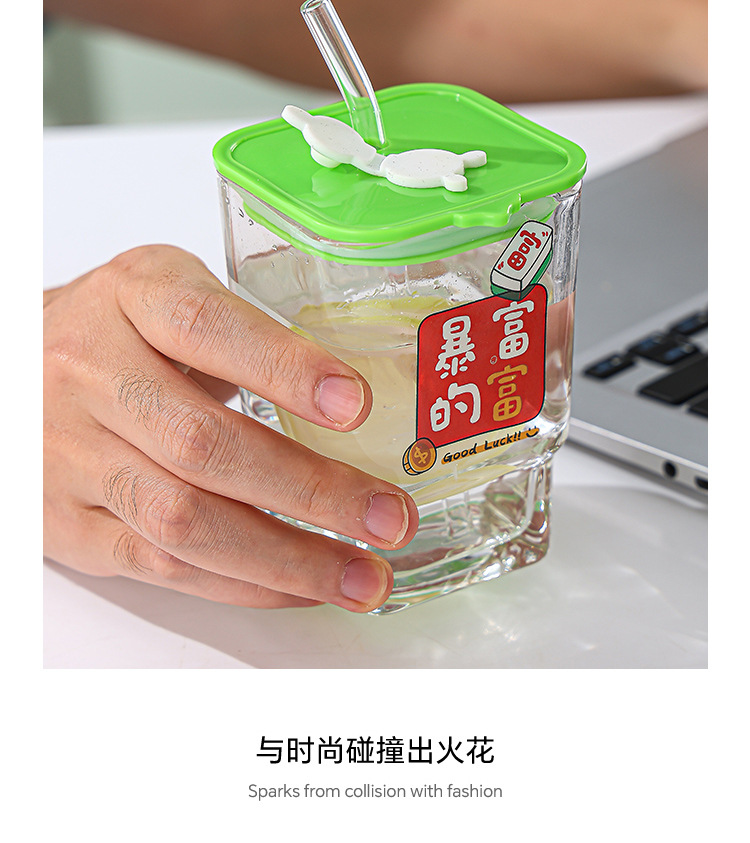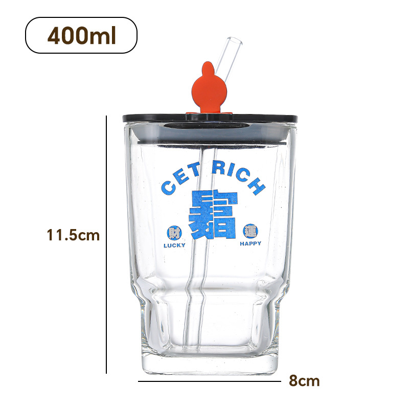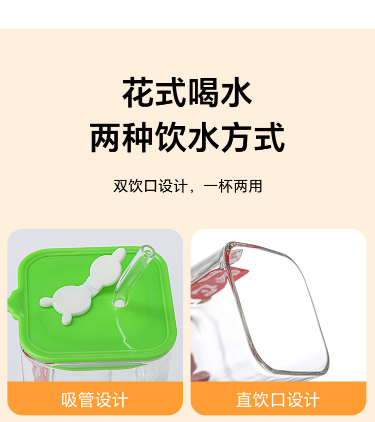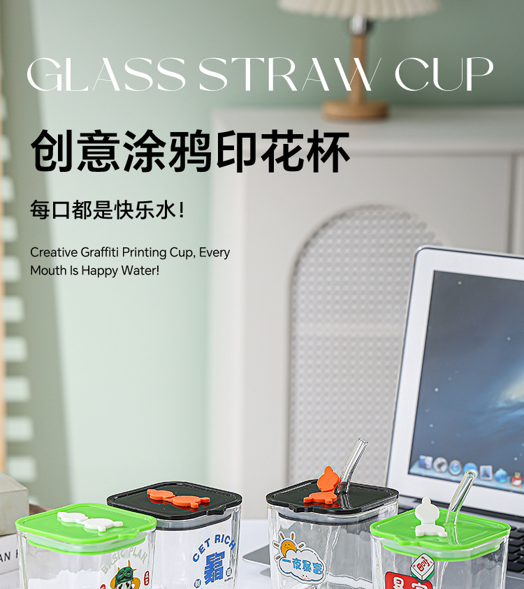 玻璃杯吸管带盖女生咖啡杯子水杯夏季可爱玻璃家用咖啡杯大容量
