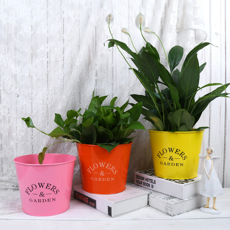 工厂源头彩色铁艺花盆 阳台装饰盆栽绿植盆栽铁皮花器向日葵花盆