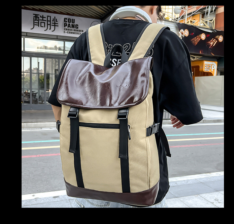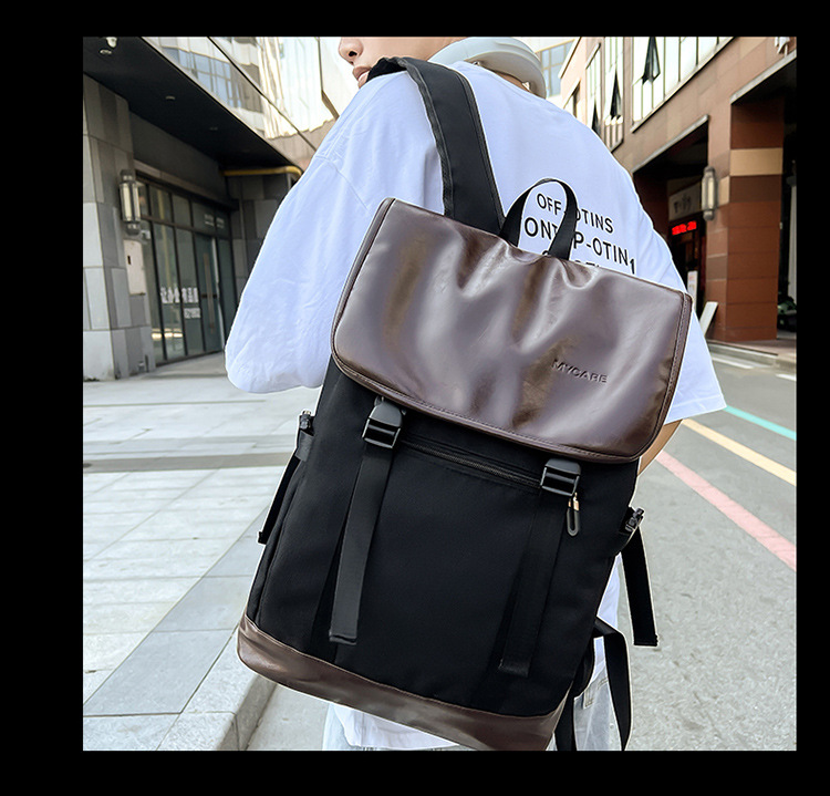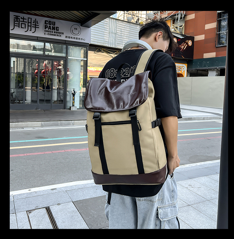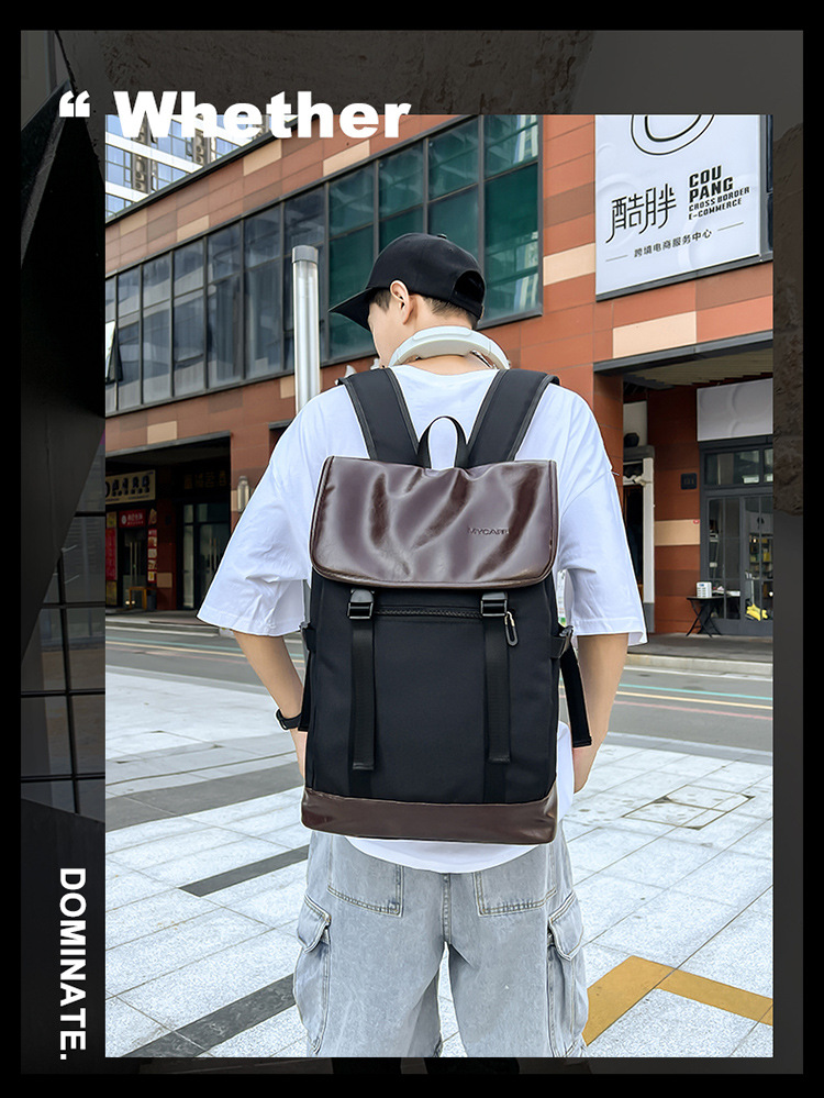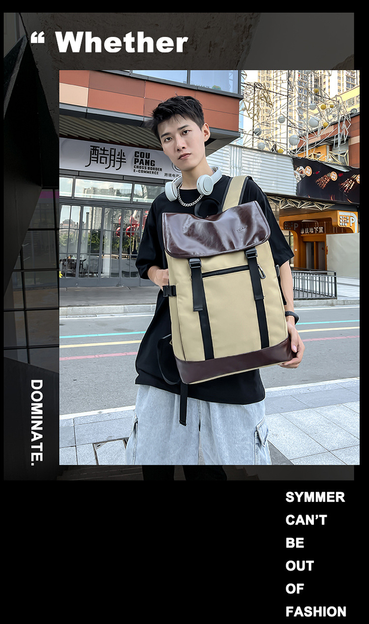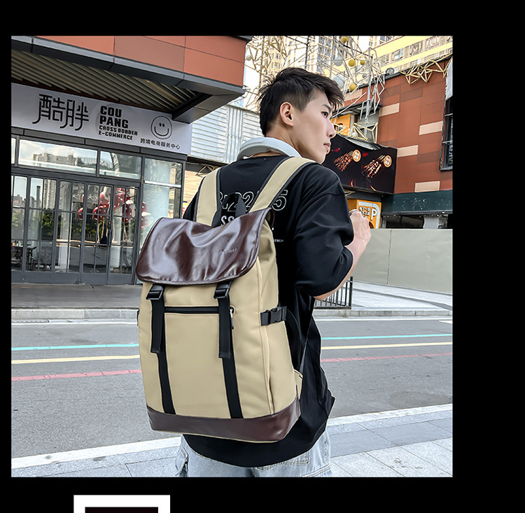 街头潮流时尚个性新款男士双肩包旅游休闲翻盖背包学生书包